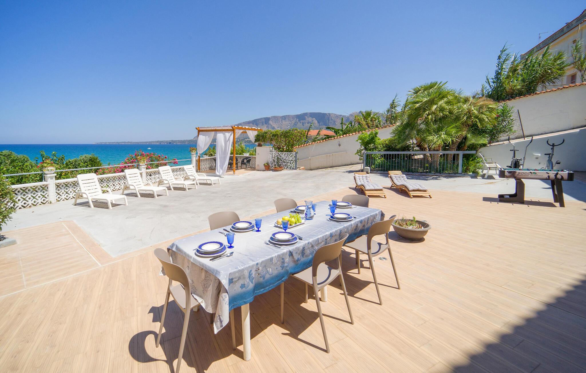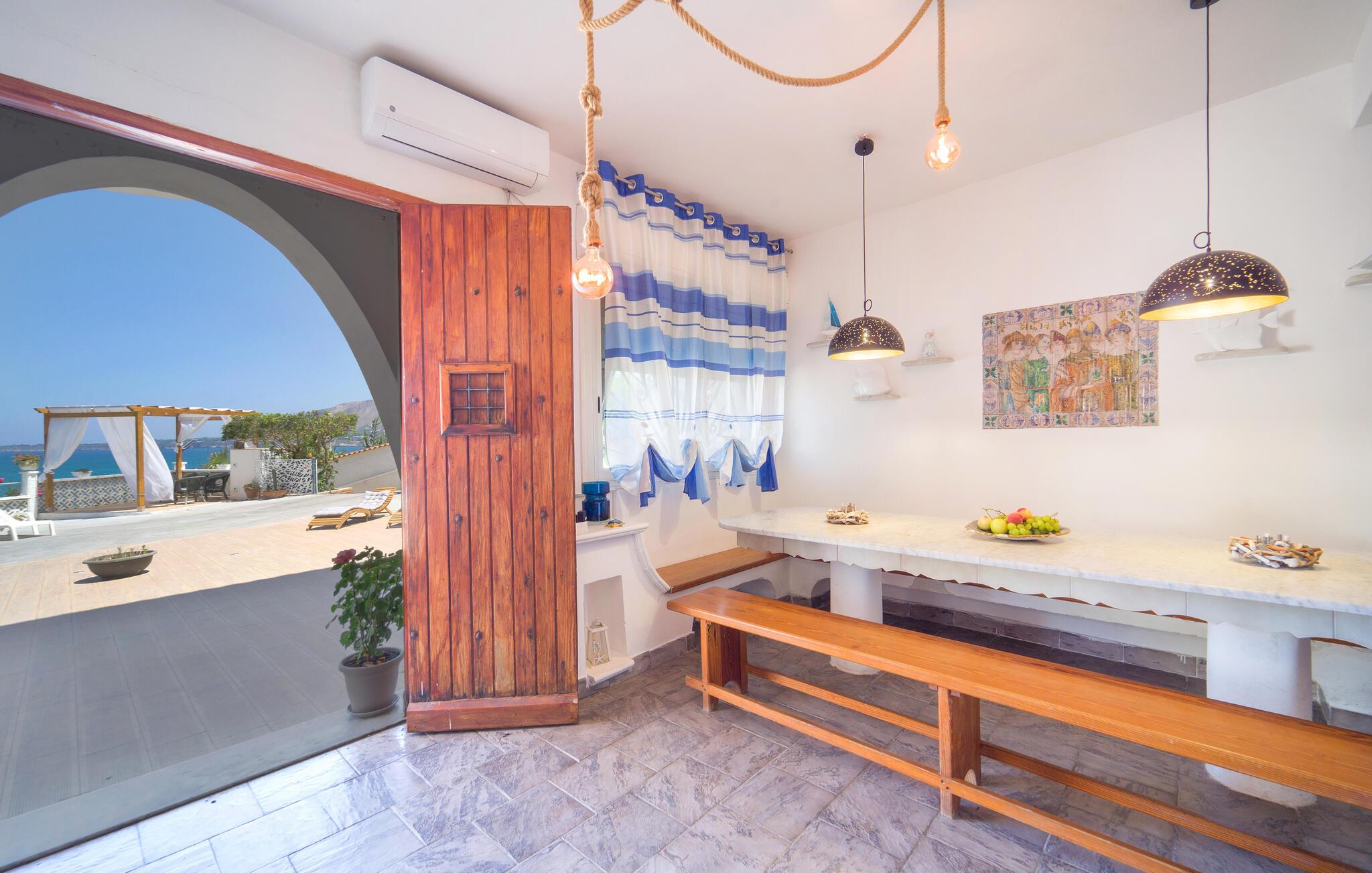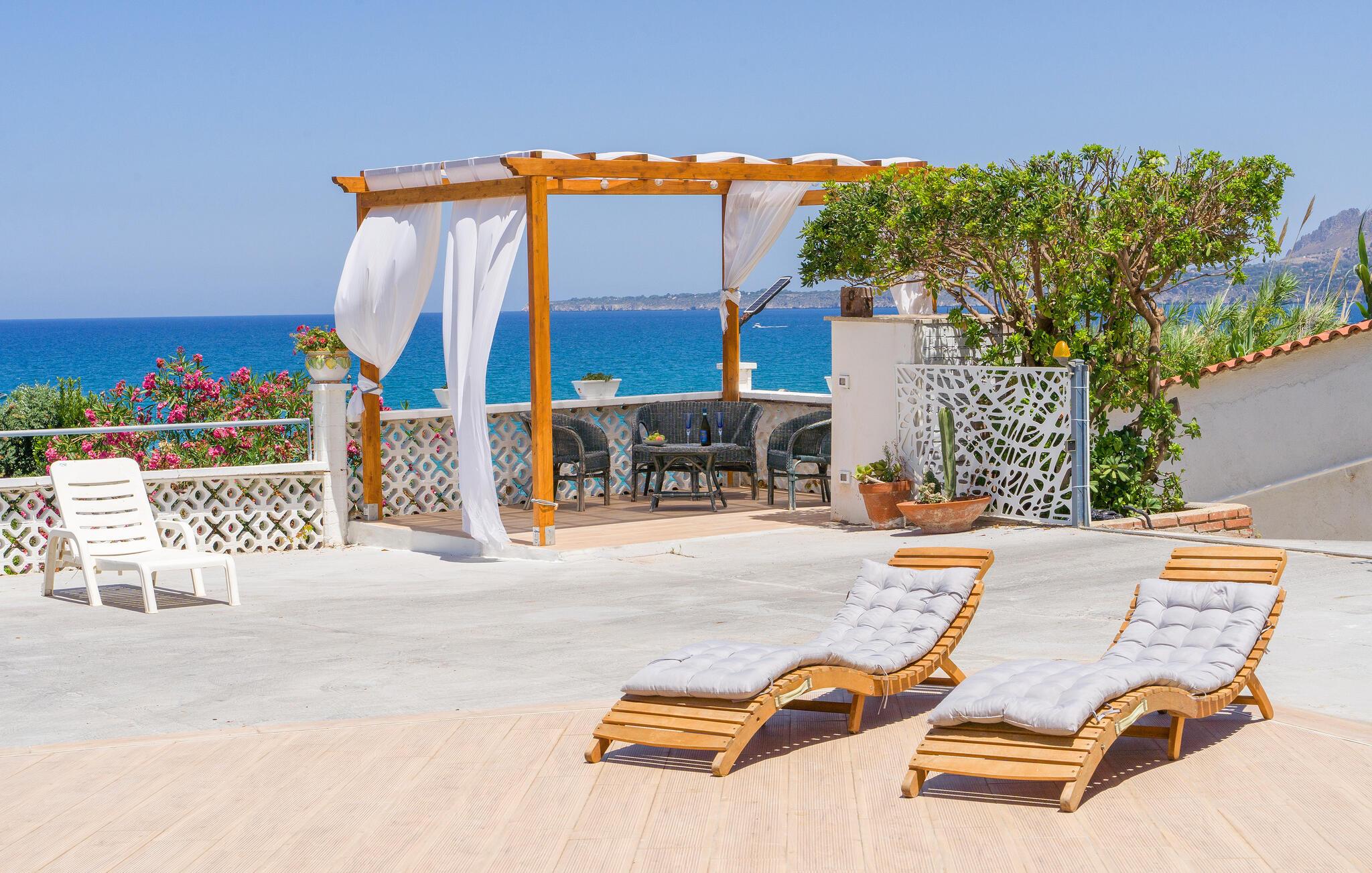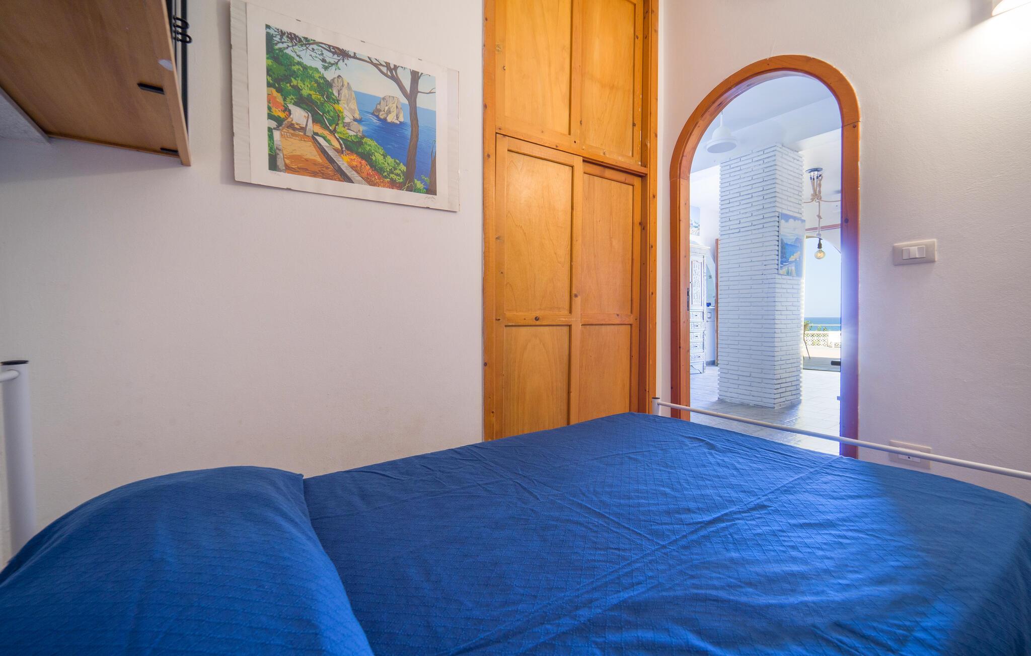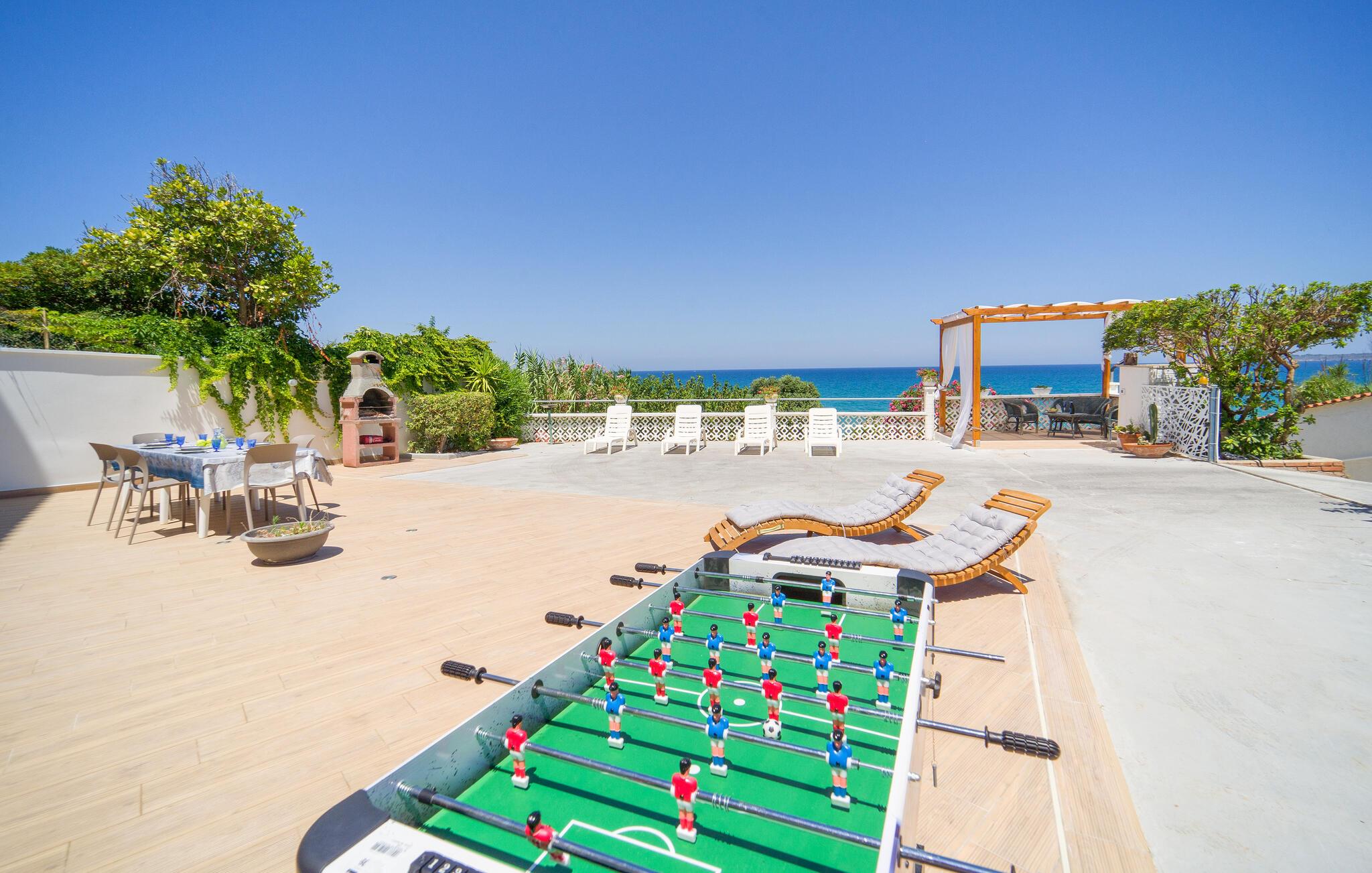 Tilbring en solrig ferie i denne rummelige ferielejlighed med havudsigt og direkte nærhed til stranden.