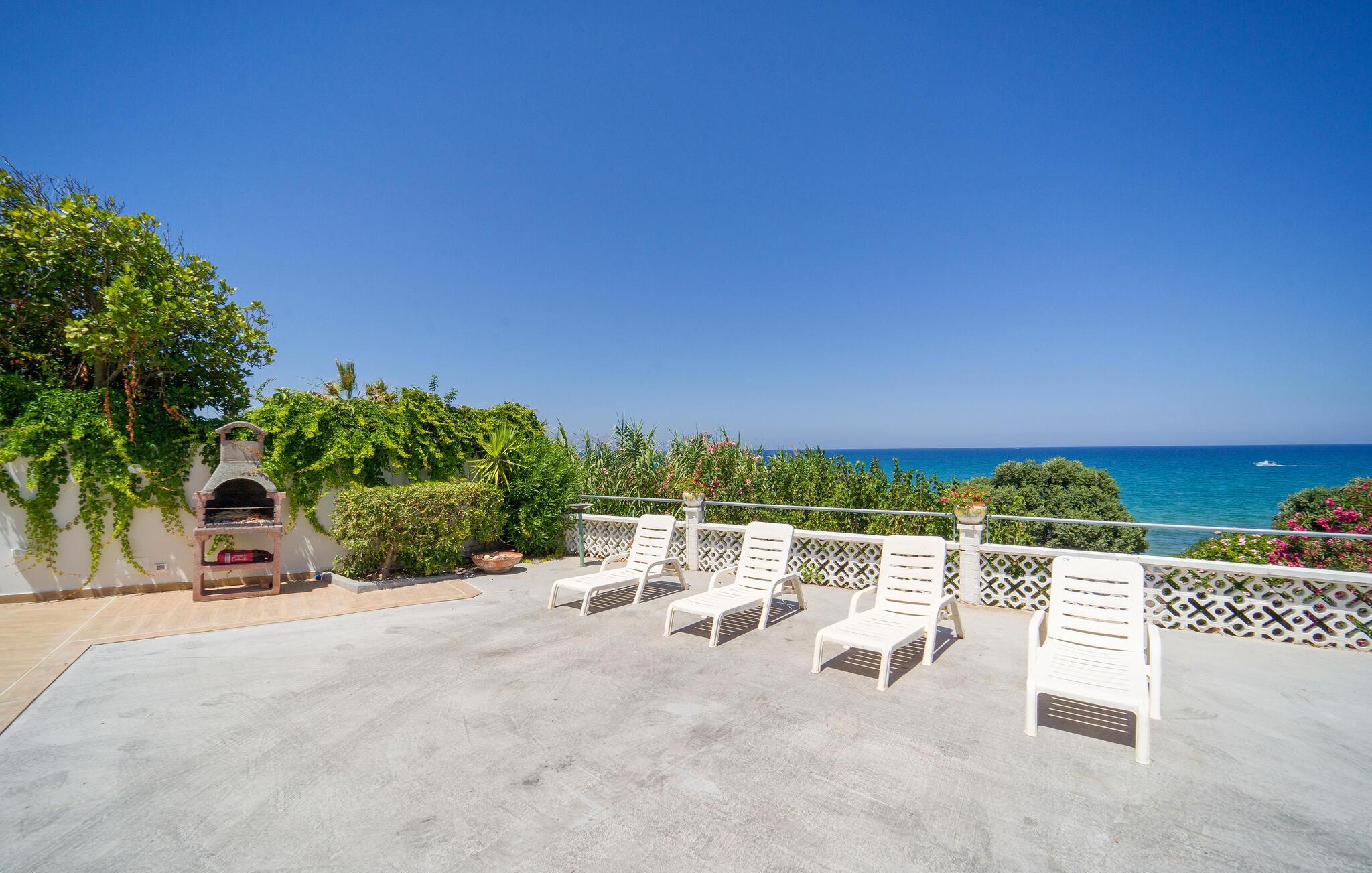 Den store terrasse giver jer en vidunderlig udsigt over det blå hav lige foran døren og er skabt til uforglemmelige stunder under åben himmel. Start dagen med en god morgenmad, slap af på liggestolen eller fordyb jer i ferielæsningen på gyngesofaen. Nyd stemningsfulde grillaftener med stearinlys og samtaler, der strækker sig langt ud på natten.