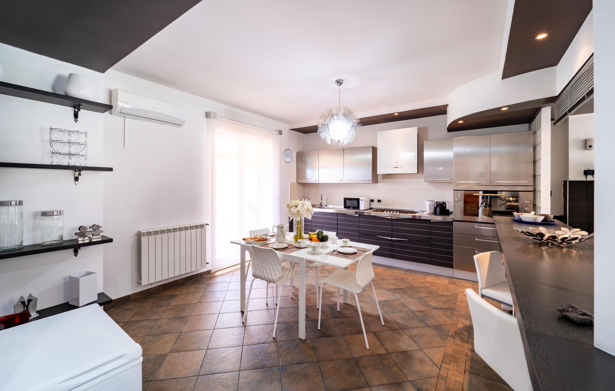 Nyd et luksusophold og den betagende udsigt over Etna i dette komfortable feriehus med pool.