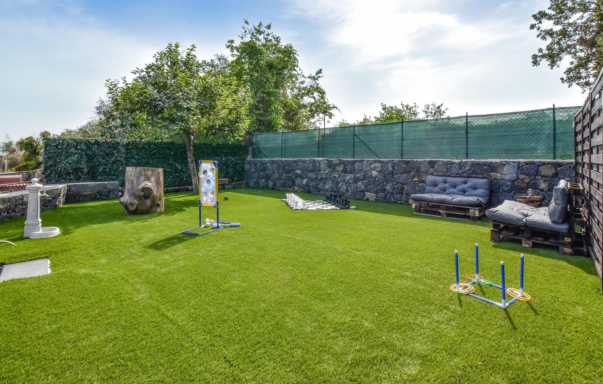 Dette luksuriøse feriehus i Trecastagni kombinerer moderne design med luksuriøs komfort og giver generøs plads til gæster i alle aldre. Materialerne af høj kvalitet og det stilfulde interiør skaber en elegant atmosfære, der straks byder jer velkommen. Interiøret ligger badet i lys og smagfuldt indrettet, mens de forskellige terrasser og haven i flere niveauer med panoramaudsigt over havet lægger op til en masse hyggestunder. Slap af ved poolen, nyd solen eller spil et spil skak i disse paradisiske omgivelser. Afslut aftenen med lækker grillmad og en bordtennisturnering.