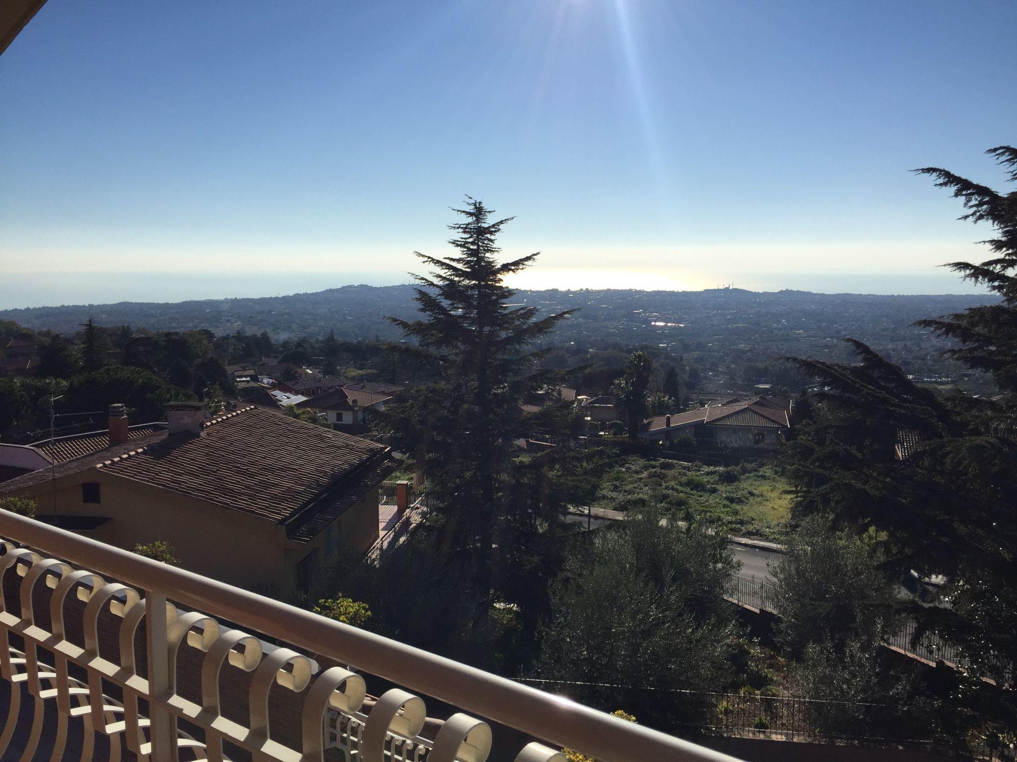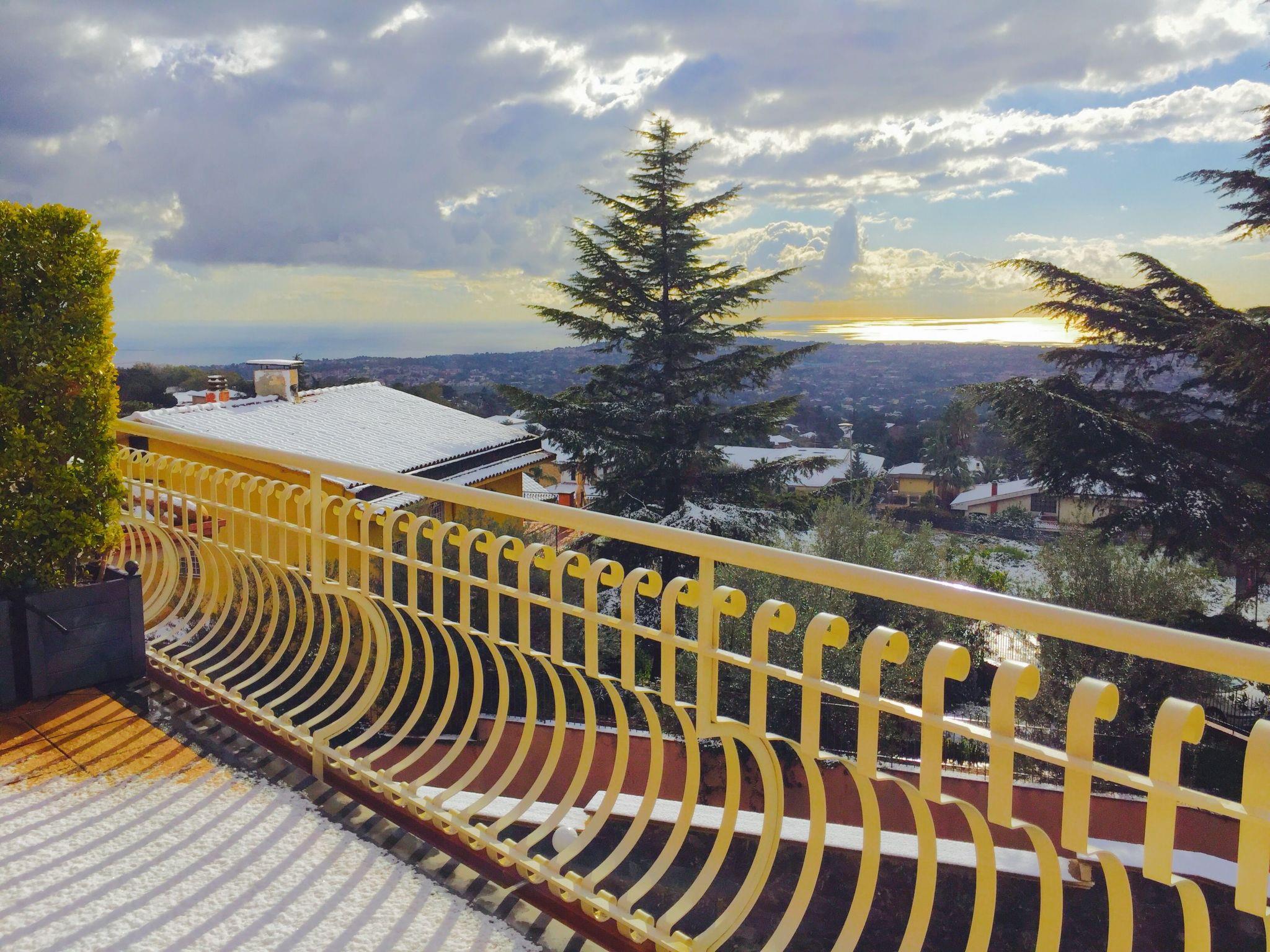 Terrace equipped with table, chairs and deckchairs. Panoramic view of the entire Ionian Coast.