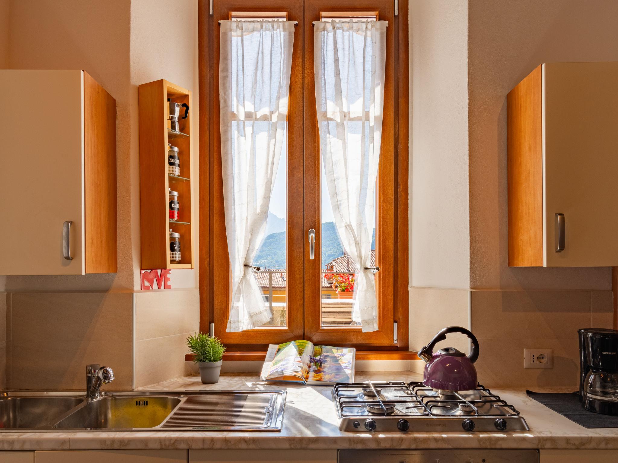 "Apartment Vista Brentano", 3-room apartment 80 m2 on 2 levels on 1st floor. Spacious and bright, very comfortable and modern furnishings: open large living/dining room with open-hearth fireplace (only for decoration), dining table and satellite TV (flat screen). Exit to the terrace. Open kitchen (oven, dishwasher, Gas stove, 4 gas rings, toaster, microwave, freezer, electric coffee machine). Exit to the terrace. Shower/bidet/WC. Upper floor: (spiral staircase), 1 double bedroom with satellite TV (flat screen). 1 room with 1 x 2 bunk beds. Shower/bidet/WC. Gas heating, air-conditioning. Heating available only from 15.10. to 15.04. Natural stone floors. Large terrace. Terrace furniture, sitting area. Marvellous panoramic view of the lake, the mountains and the resort. Facilities: washing machine. Internet (WiFi, free). Parking (roofed, fenced 1 car). Please note: not suitable for children under 4 years. Non-smokers only. Smoke alarm, fire extinguisher. IT013252C2GF8I63CA