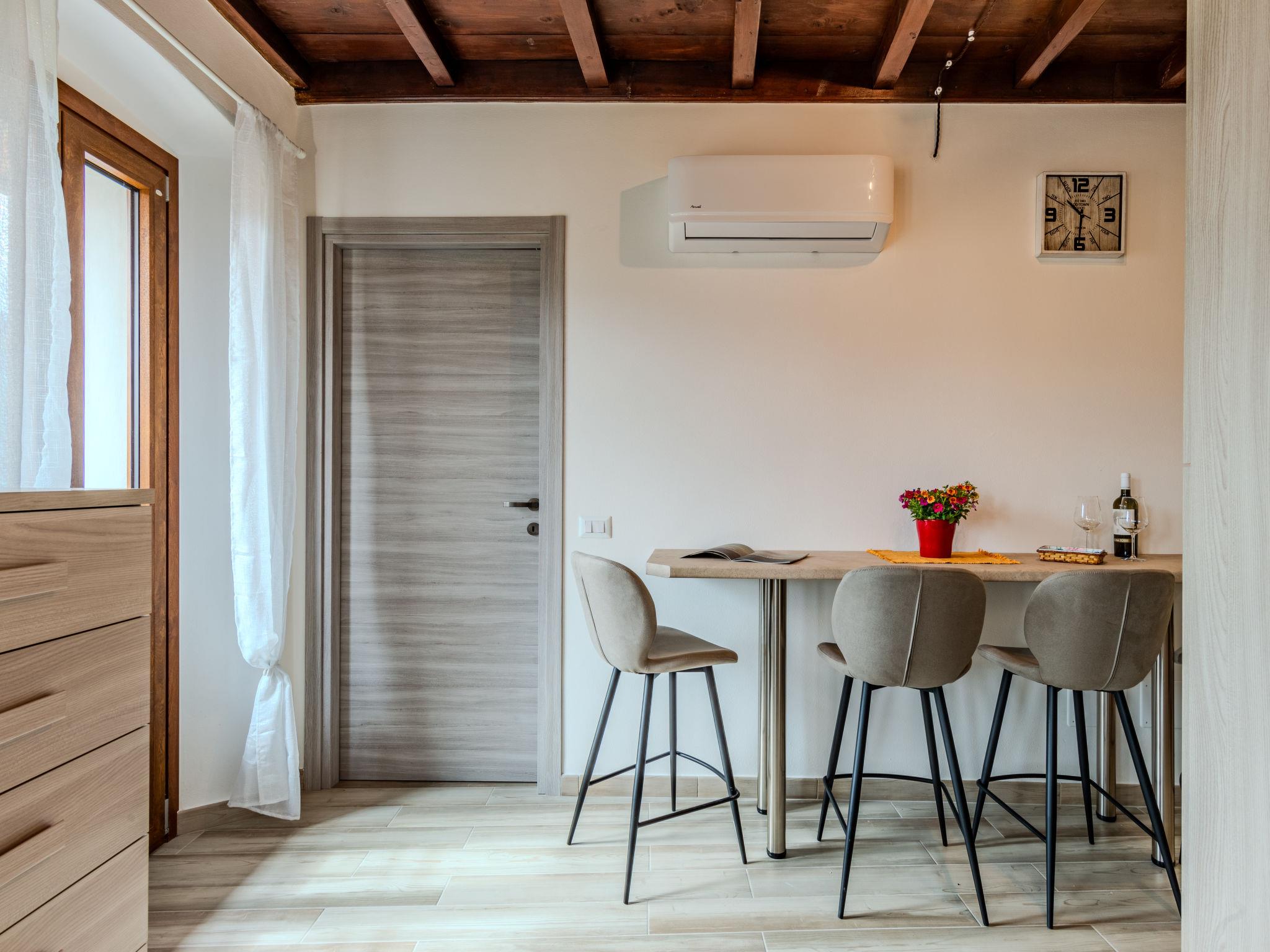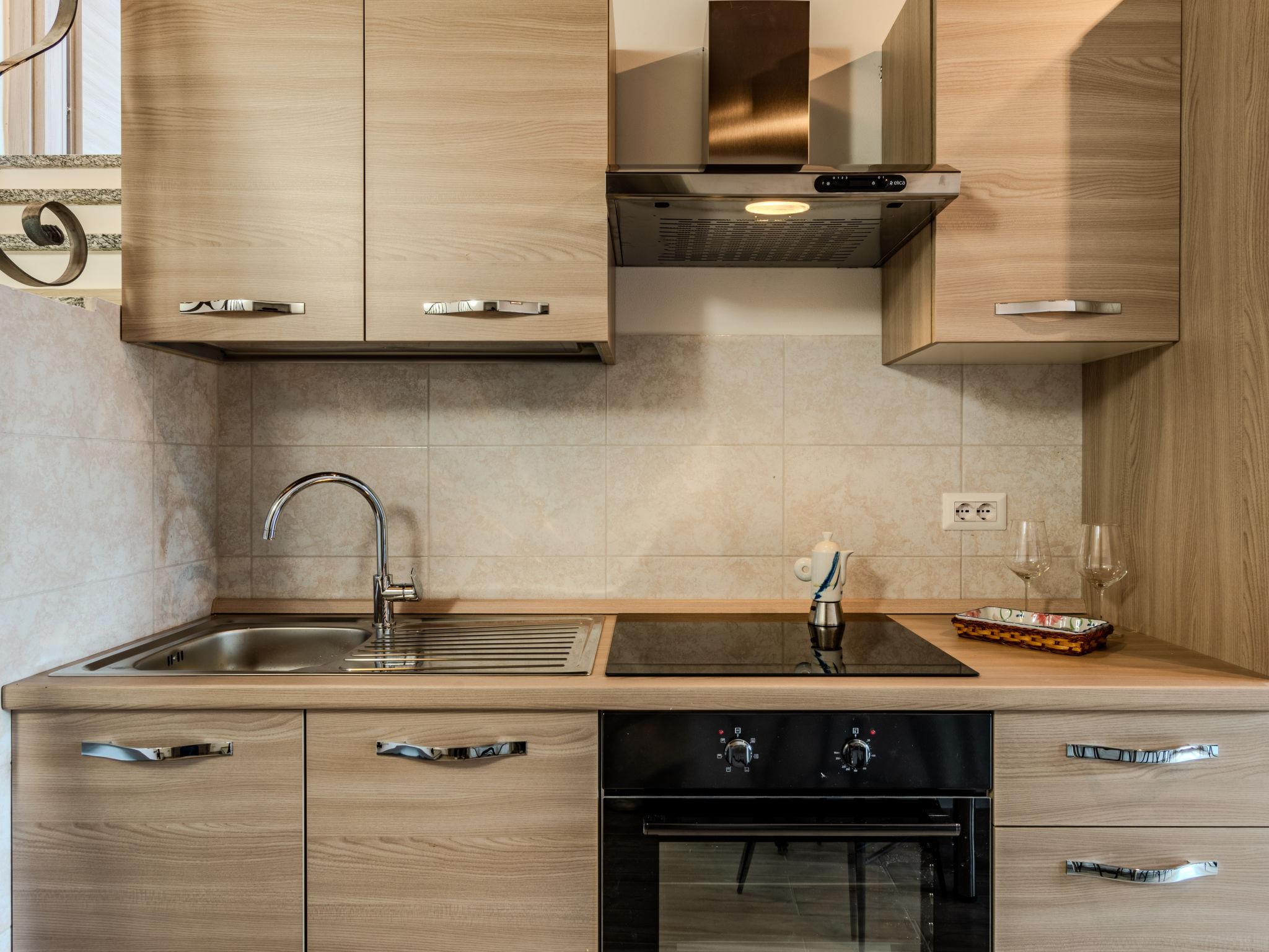 "Apartment Vista Paradiso", 3-room apartment 70 m2 on 3rd floor. Fully renovated in 2024, very modern and cosy furnishings: open living/dining room with panoramic window with dining table and TV (flat screen), air conditioning. 1 room with 1 double bed and TV (flat screen), air conditioning. Open kitchen (oven, dishwasher, 4 induction hot plates, toaster, kettle, freezer, electric coffee machine). Shower/bidet/WC. Air-conditioning, forced-air heating. Heating available only from 15.10. to 15.04. Upper floor: 1 room with sloping ceilings with 2 beds and TV (flat screen), air conditioning. Natural stone floors. Marvellous panoramic view of the lake, the mountains and the resort. Facilities: washing machine, hair dryer. Internet (WiFi, free). Parking (roofed, 1 car). Please note: suitable for families. Non-smokers only. Smoke alarm, fire extinguisher, no lift. IT013252C2JQVBC2B2