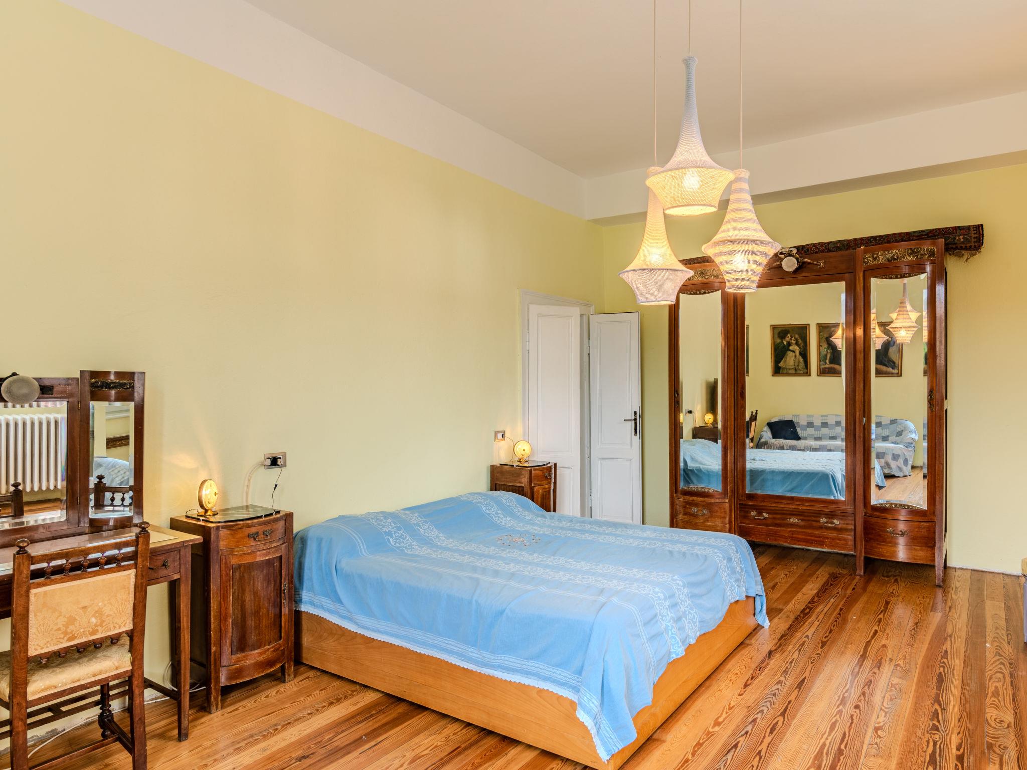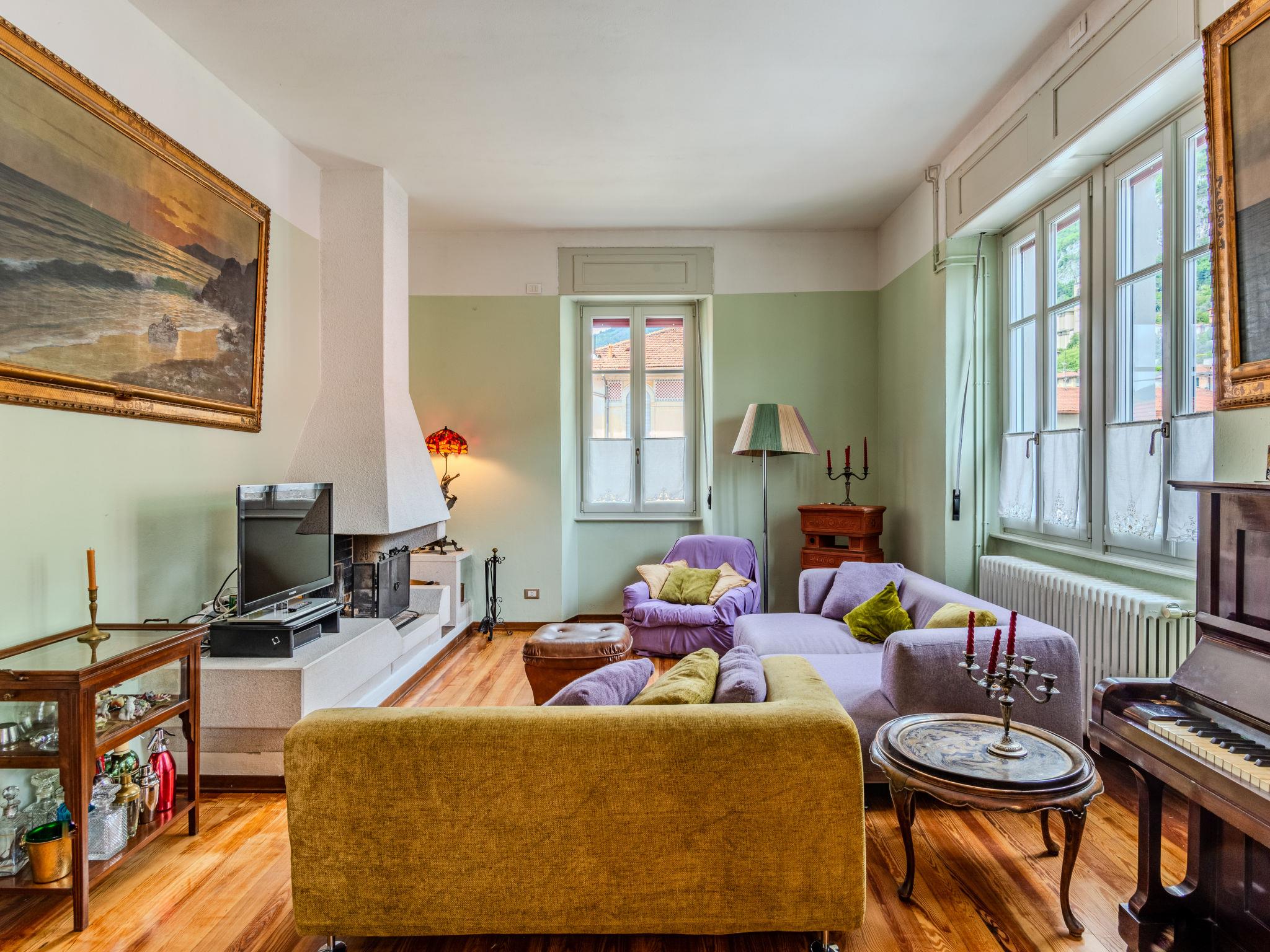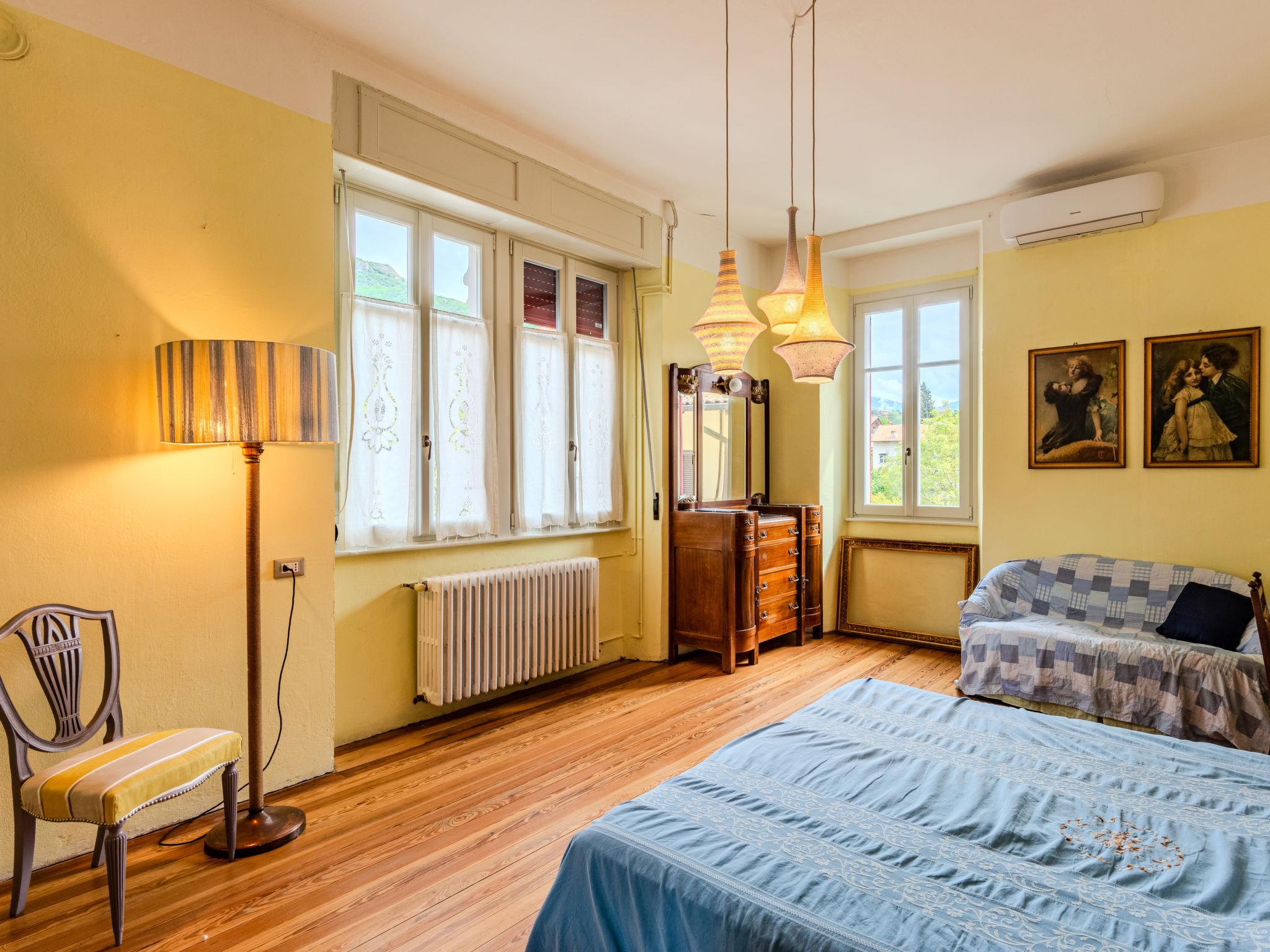 6-room apartment 250 m2 on 2 levels. Spacious, partly renovated in 2023, comfortable and romantic furnishings: on the lower ground floor: living/dining room with dining table. Exit to the garden, to the terrace. Open kitchen (dishwasher, microwave, freezer). Shower/bidet/WC. Upper floor: large living/dining room with open-hearth fireplace, dining table and TV (flat screen). Exit to the balcony. 2 double bedrooms, each room with 1 double bed (160 cm, length 190 cm), air conditioning. 1 double bedroom with 1 double bed (160 cm, length 190 cm). 1 double bedroom with 1 double bed (160 cm, length 190 cm), shower/bidet/WC. Kitchen (toaster, kettle, freezer, electric coffee machine, combination microwave). Shower/bidet/WC. Gas heating, forced-air heating. Heating available only from 15.10. to 15.04. Natural stone floors. Balcony, large garden. Terrace furniture, barbecue, sitting area. Marvellous panoramic view of the lake and the mountains. Facilities: hair dryer. Internet (WiFi, free). Parking (fenced 3 cars). Please note: non-smokers only. No internal connecting door between the floors. IT013252C2FL3WD8TC