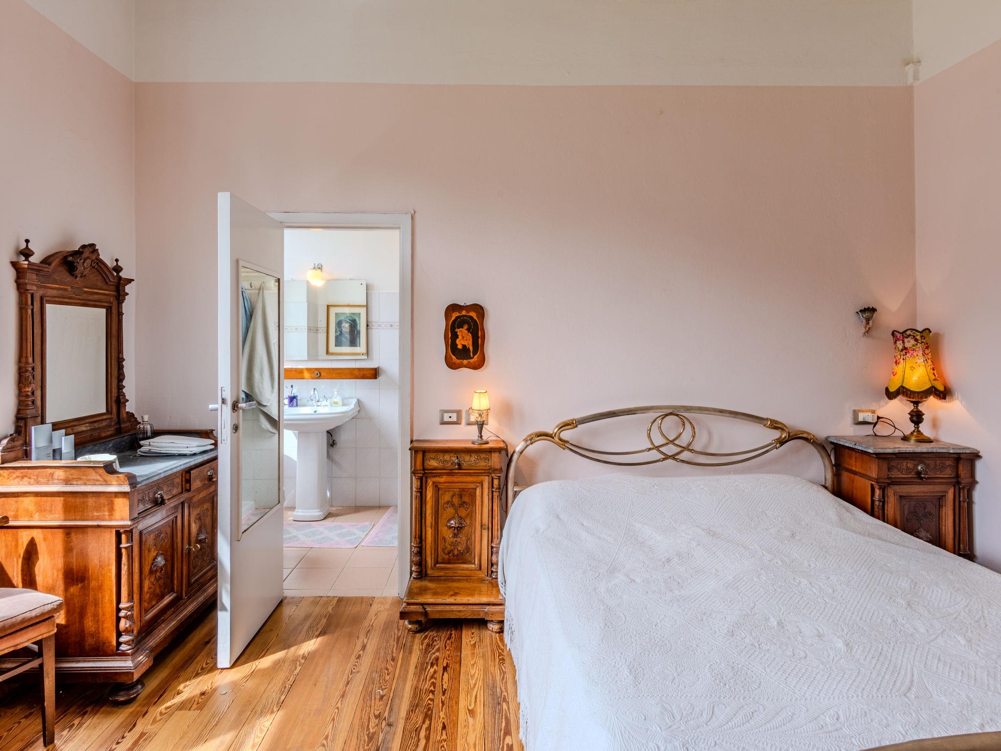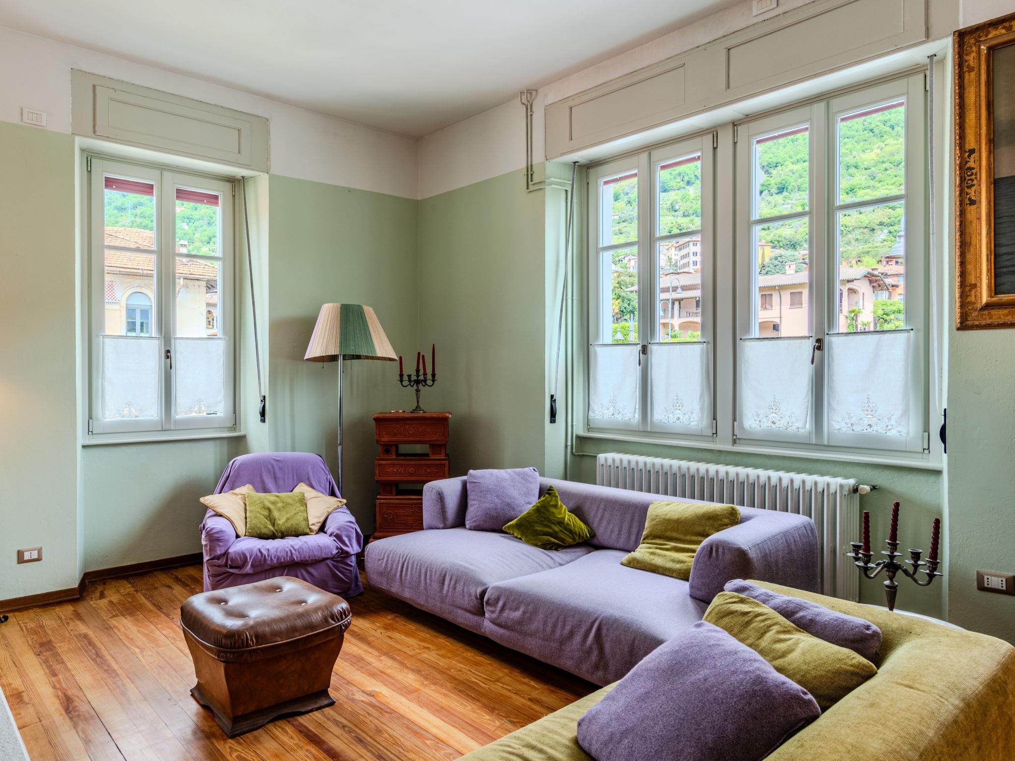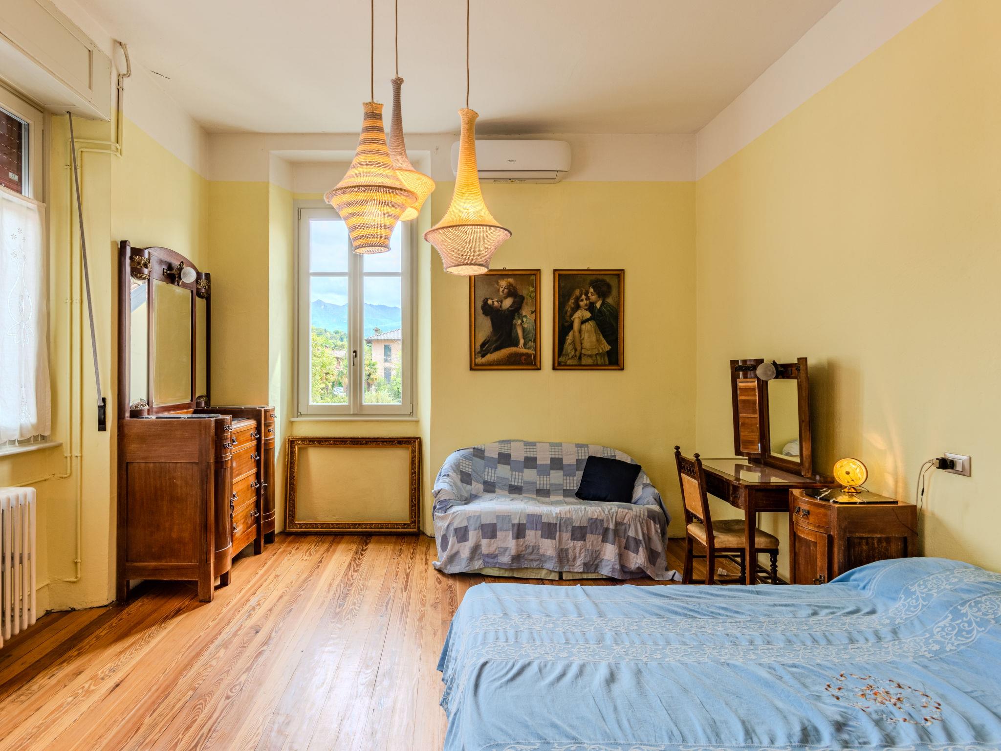 6-room apartment 250 m2 on 2 levels. Spacious, partly renovated in 2023, comfortable and romantic furnishings: on the lower ground floor: living/dining room with dining table. Exit to the garden, to the terrace. Open kitchen (dishwasher, microwave, freezer). Shower/bidet/WC. Upper floor: large living/dining room with open-hearth fireplace, dining table and TV (flat screen). Exit to the balcony. 2 double bedrooms, each room with 1 double bed (160 cm, length 190 cm), air conditioning. 1 double bedroom with 1 double bed (160 cm, length 190 cm). 1 double bedroom with 1 double bed (160 cm, length 190 cm), shower/bidet/WC. Kitchen (toaster, kettle, freezer, electric coffee machine, combination microwave). Shower/bidet/WC. Gas heating, forced-air heating. Heating available only from 15.10. to 15.04. Natural stone floors. Balcony, large garden. Terrace furniture, barbecue, sitting area. Marvellous panoramic view of the lake and the mountains. Facilities: hair dryer. Internet (WiFi, free). Parking (fenced 3 cars). Please note: non-smokers only. No internal connecting door between the floors. IT013252C2FL3WD8TC