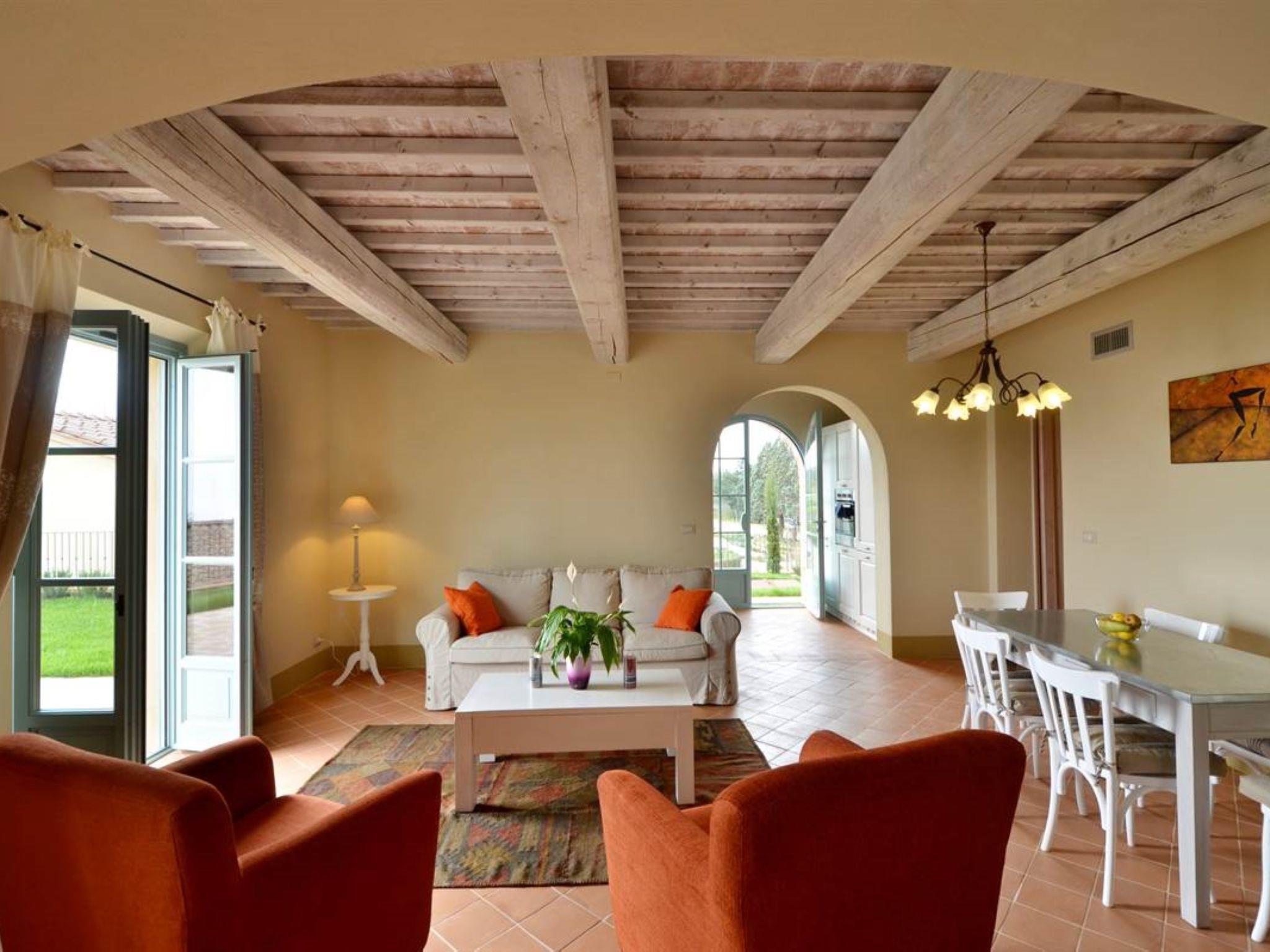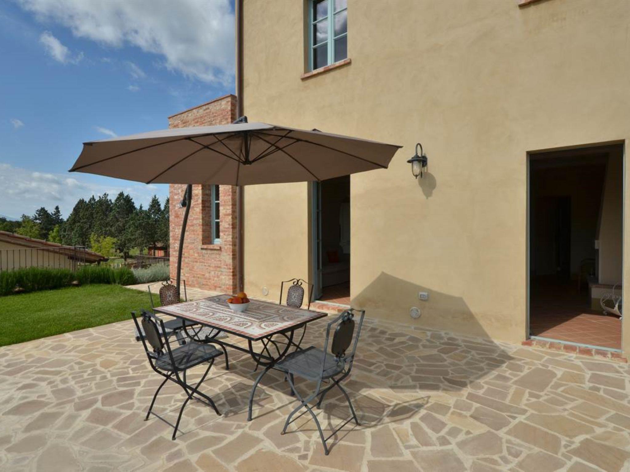 Very beautiful, comfortable residence "Cignella Resort", surrounded by trees, fields and vineyards. 13 apartments in the residence. 3 km from the centre of Trequanda, in a secluded, sunny, elevated position, 30 km from the lake, in the countryside. For shared use: property (fenced), large garden plants and trees, swimming pool fenced (10 x 12 m, seasonal availability: 01.May. - 15.Oct. pool opening hours: 08:00-19:00) with internal staircase. Children's pool, outdoor shower, patio, pergola, terrace, garden furniture, barbecue, pool maintenance by the owner/gardener. In the house: reception, breakfast room, lounge, massage (extra). Linen change weekly. Towel change weekly. Room cleaning on request (extra). Breakfast possible (extra). Airport transfer (extra). 1 km long bumpy motor access. Parking on the premises. Shop 3 km, grocery 3 km, supermarket 10 km, shopping centre 10 km, restaurant 3.5 km, bus stop 1.5 km, railway station "Foiano della Chiana" 22 km, thermal baths "Rapolano Terme" 30 km, bathing lake "Trasimeno" 30 km. Golf course (9 hole) 17 km. Nearby attractions: Pienza 13 km, Montepulciano 14 km, Montalcino 32 km, Cortona 39 km, Arezzo 48 km, Siena 49 km. Well-known lakes can easily be reached: Trasimeno 30 km, Chiusi 35 km. Please note: reception open 09:00-18:00 hrs. Suitable for families, baby equipment (included), childminding (extra). Suitable for events. On request: airport transfer to the holiday accommodation. Please note: Loading and unloading of baggage is possible at the holiday house. 24hr guard. Residence with electric gates. All houses/apartments are individually designed/furnished.