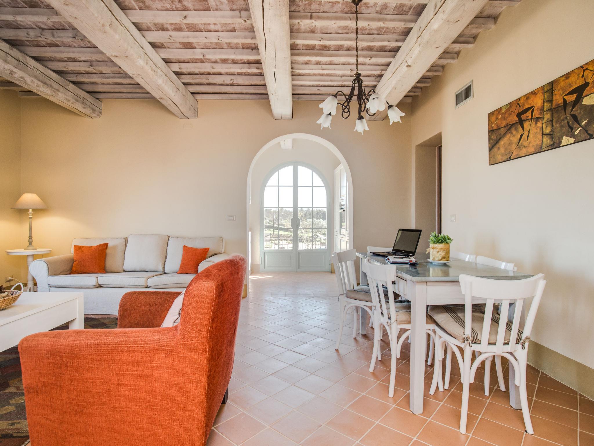 "Pino", 3-room apartment 90 m2, on the ground floor. Spacious and bright, very comfortable and stylish furnishings: large living/dining room with open-hearth fireplace, dining table and satellite TV (flat screen), DVD. Exit to the patio. Large, 1 double bedroom with shower/bidet/WC. Exit to the terrace. 1 double bedroom. Kitchen (oven, dishwasher, Gas stove, 4 gas rings, toaster, kettle, microwave, electric coffee machine). Exit to the terrace. Shower/bidet/WC. Air-conditioning, underfloor heating. Natural stone floors. Comfortable furnishings in the country house style. Large terrace, patio. Terrace furniture, barbecue, deck chairs. Very beautiful panoramic view of the countryside. Facilities: washing machine, iron, mosquito net, children's high chair, baby cot for up to 2 year olds, hair dryer. Internet (WiFi, free). Parking (2 cars). Please note: suitable for families. Non-smokers only. 1 pet/ dog allowed. Private entrance, smoke alarm, fire extinguisher. No mandatory extra charges to be paid on-site except for local tax. Bedlinen, towels, final cleaning and all energy costs are included. IT052036B4QXZVH2AP