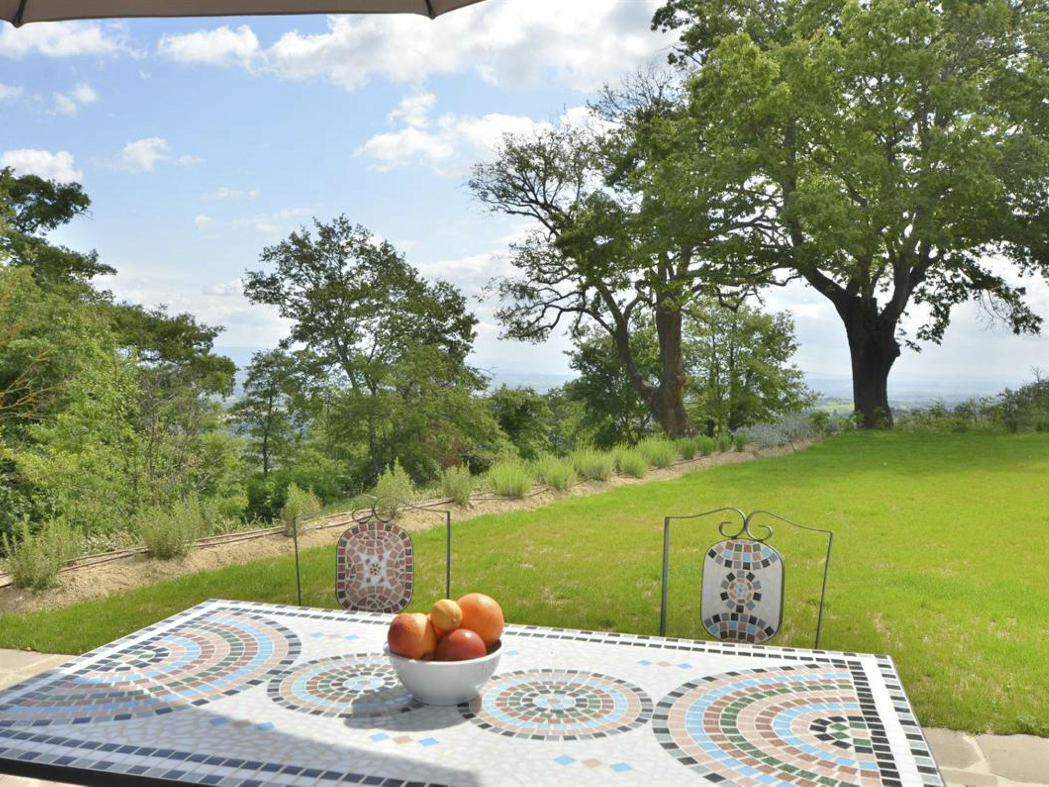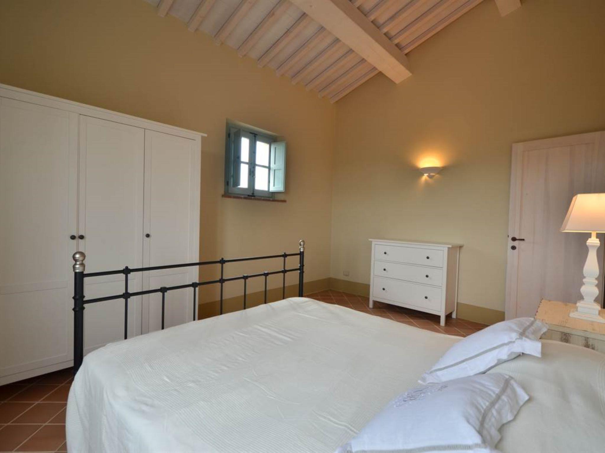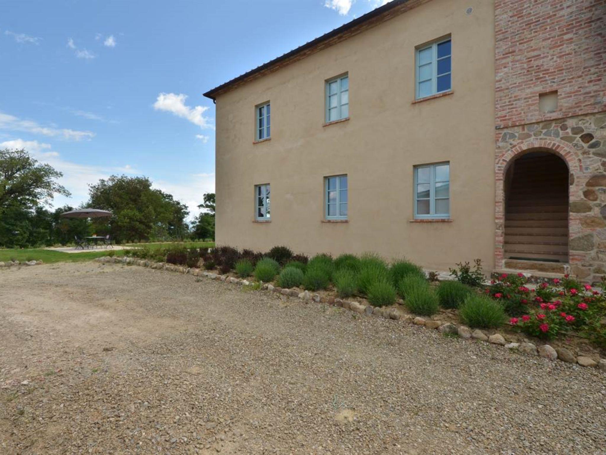 Very beautiful, comfortable residence "Cignella Resort", surrounded by trees, fields and vineyards. 13 apartments in the residence. 3 km from the centre of Trequanda, in a secluded, sunny, elevated position, 30 km from the lake, in the countryside. For shared use: property (fenced), large garden plants and trees, swimming pool fenced (10 x 12 m, seasonal availability: 01.May. - 15.Oct. pool opening hours: 08:00-19:00) with internal staircase. Children's pool, outdoor shower, patio, pergola, terrace, garden furniture, barbecue, pool maintenance by the owner/gardener. In the house: reception, breakfast room, lounge, massage (extra). Linen change weekly. Towel change weekly. Room cleaning on request (extra). Breakfast possible (extra). Airport transfer (extra). 1 km long bumpy motor access. Parking on the premises. Shop 3 km, grocery 3 km, supermarket 10 km, shopping centre 10 km, restaurant 3.5 km, bus stop 1.5 km, railway station "Foiano della Chiana" 22 km, thermal baths "Rapolano Terme" 30 km, bathing lake "Trasimeno" 30 km. Golf course (9 hole) 17 km. Nearby attractions: Pienza 13 km, Montepulciano 14 km, Montalcino 32 km, Cortona 39 km, Arezzo 48 km, Siena 49 km. Well-known lakes can easily be reached: Trasimeno 30 km, Chiusi 35 km. Please note: reception open 09:00-18:00 hrs. Suitable for families, baby equipment (included), childminding (extra). Suitable for events. On request: airport transfer to the holiday accommodation. Please note: Loading and unloading of baggage is possible at the holiday house. 24hr guard. Residence with electric gates. All houses/apartments are individually designed/furnished.