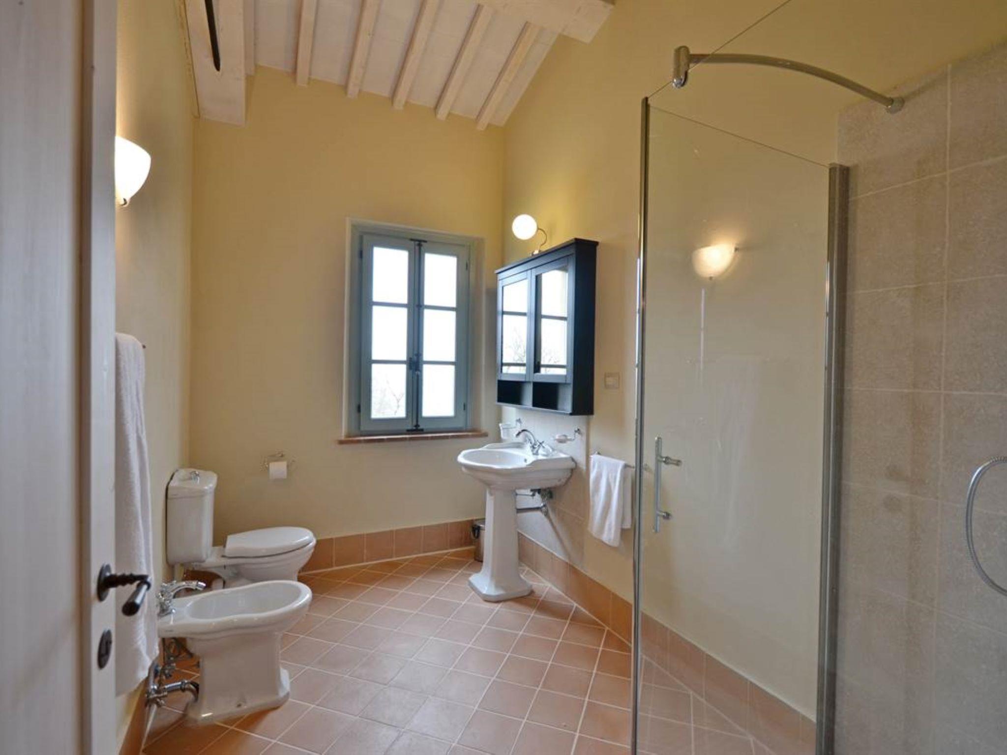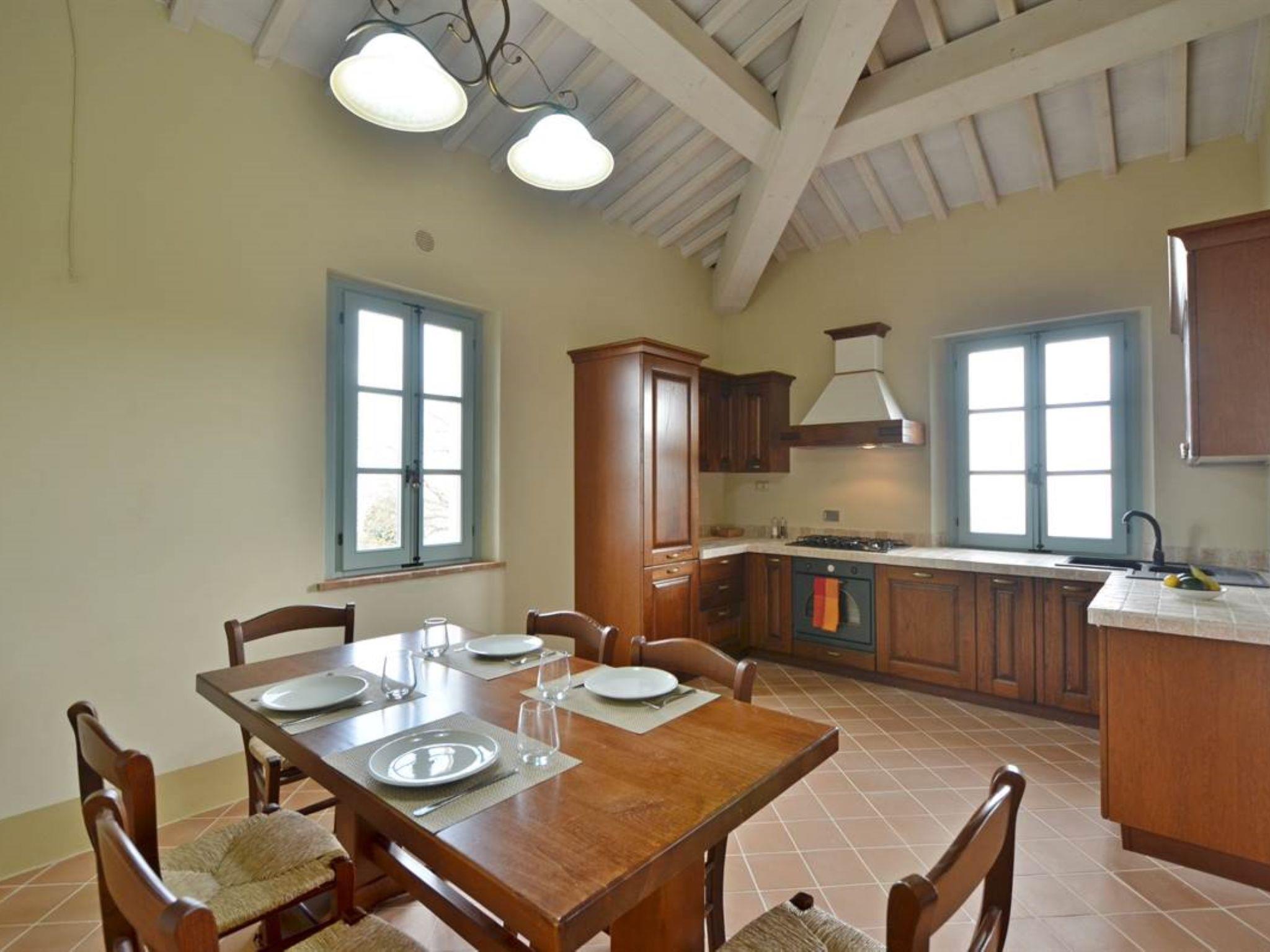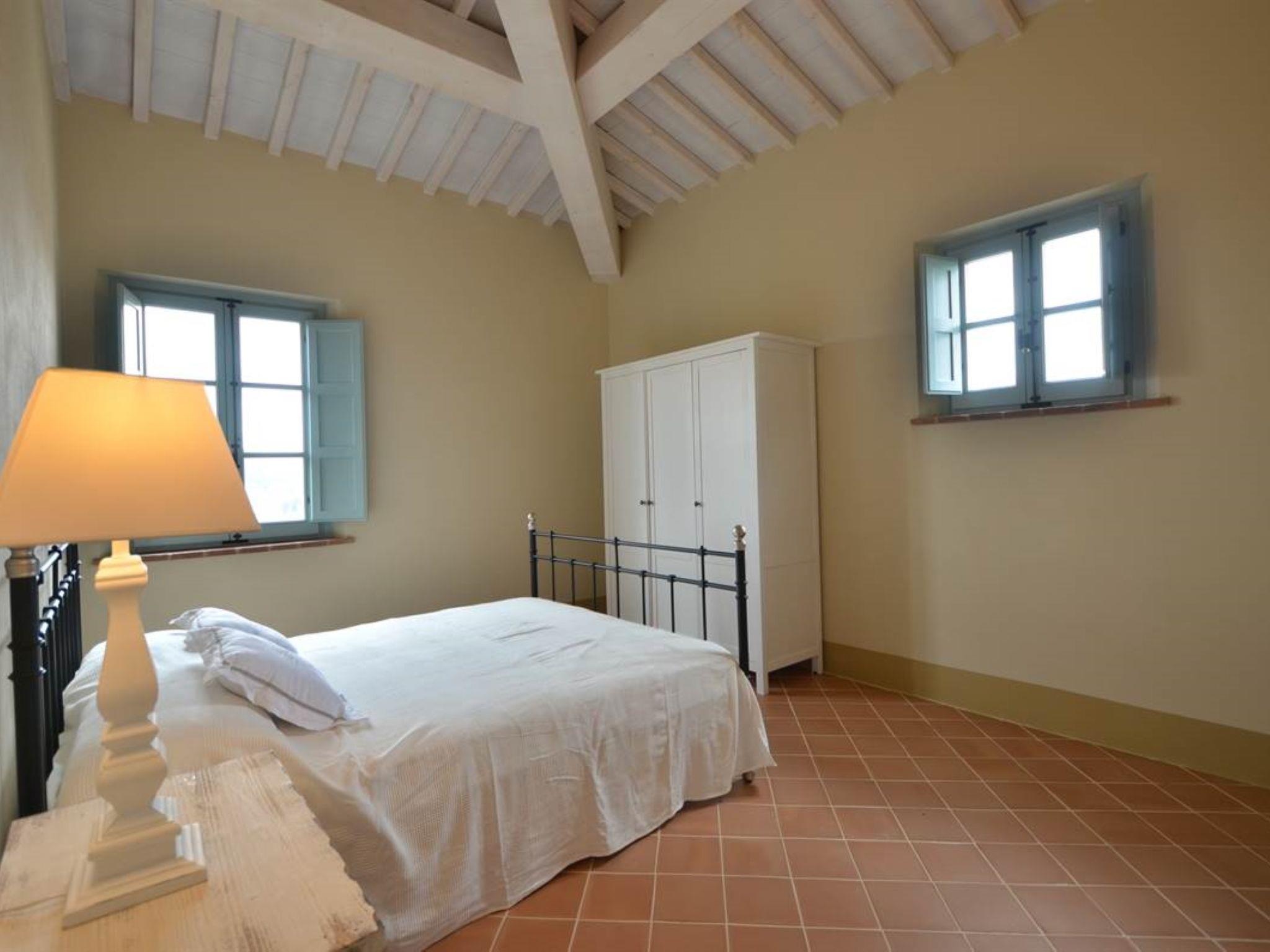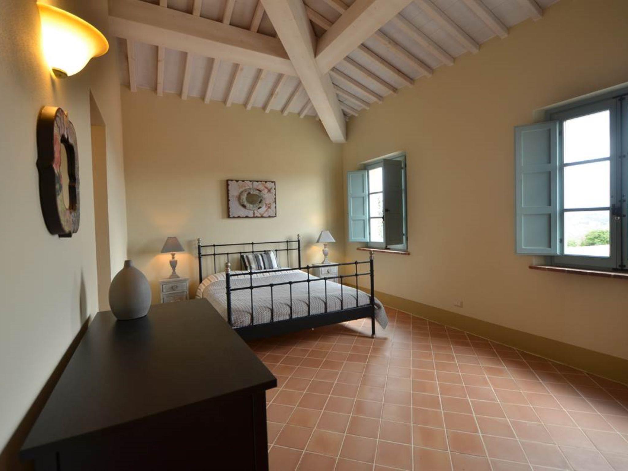 Very beautiful, comfortable residence "Cignella Resort", surrounded by trees, fields and vineyards. 13 apartments in the residence. 3 km from the centre of Trequanda, in a secluded, sunny, elevated position, 30 km from the lake, in the countryside. For shared use: property (fenced), large garden plants and trees, swimming pool fenced (10 x 12 m, seasonal availability: 01.May. - 15.Oct. pool opening hours: 08:00-19:00) with internal staircase. Children's pool, outdoor shower, patio, pergola, terrace, garden furniture, barbecue, pool maintenance by the owner/gardener. In the house: reception, breakfast room, lounge, massage (extra). Linen change weekly. Towel change weekly. Room cleaning on request (extra). Breakfast possible (extra). Airport transfer (extra). 1 km long bumpy motor access. Parking on the premises. Shop 3 km, grocery 3 km, supermarket 10 km, shopping centre 10 km, restaurant 3.5 km, bus stop 1.5 km, railway station "Foiano della Chiana" 22 km, thermal baths "Rapolano Terme" 30 km, bathing lake "Trasimeno" 30 km. Golf course (9 hole) 17 km. Nearby attractions: Pienza 13 km, Montepulciano 14 km, Montalcino 32 km, Cortona 39 km, Arezzo 48 km, Siena 49 km. Well-known lakes can easily be reached: Trasimeno 30 km, Chiusi 35 km. Please note: reception open 09:00-18:00 hrs. Suitable for families, baby equipment (included), childminding (extra). Suitable for events. On request: airport transfer to the holiday accommodation. Please note: Loading and unloading of baggage is possible at the holiday house. 24hr guard. Residence with electric gates. All houses/apartments are individually designed/furnished.