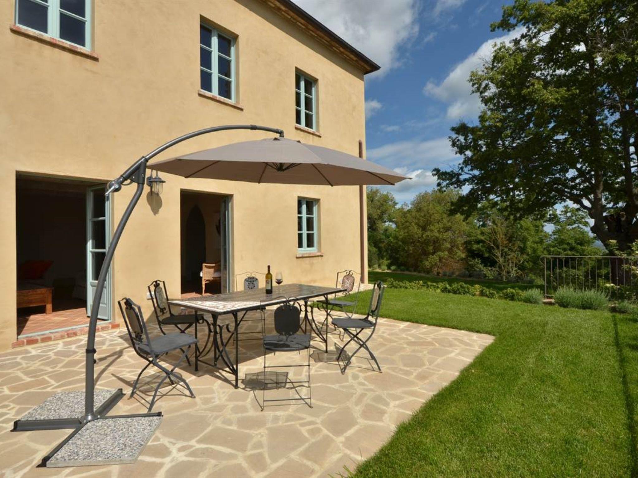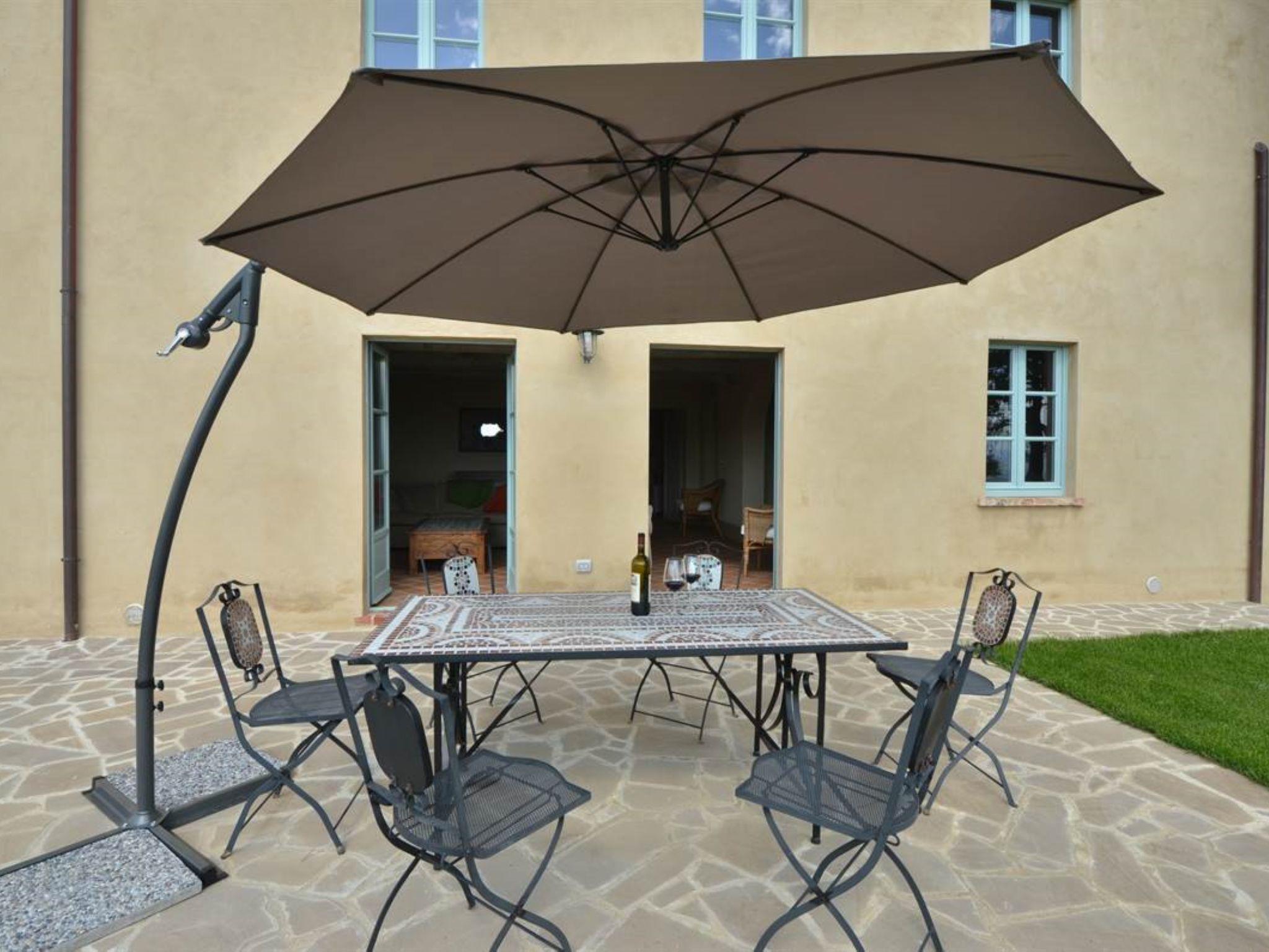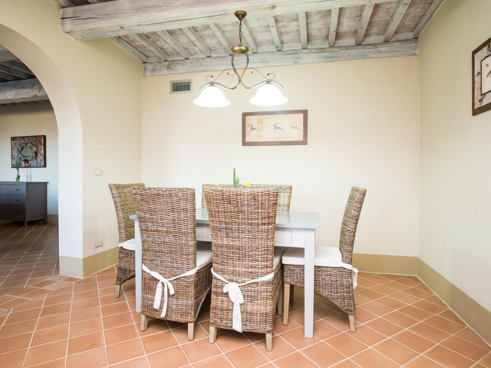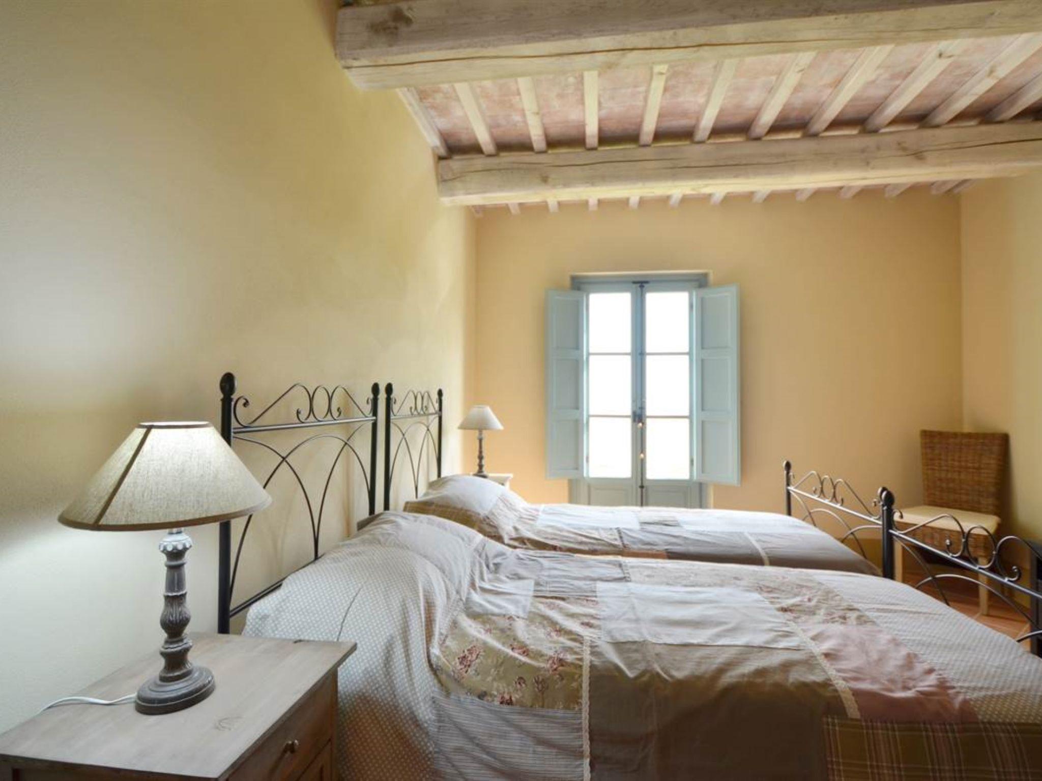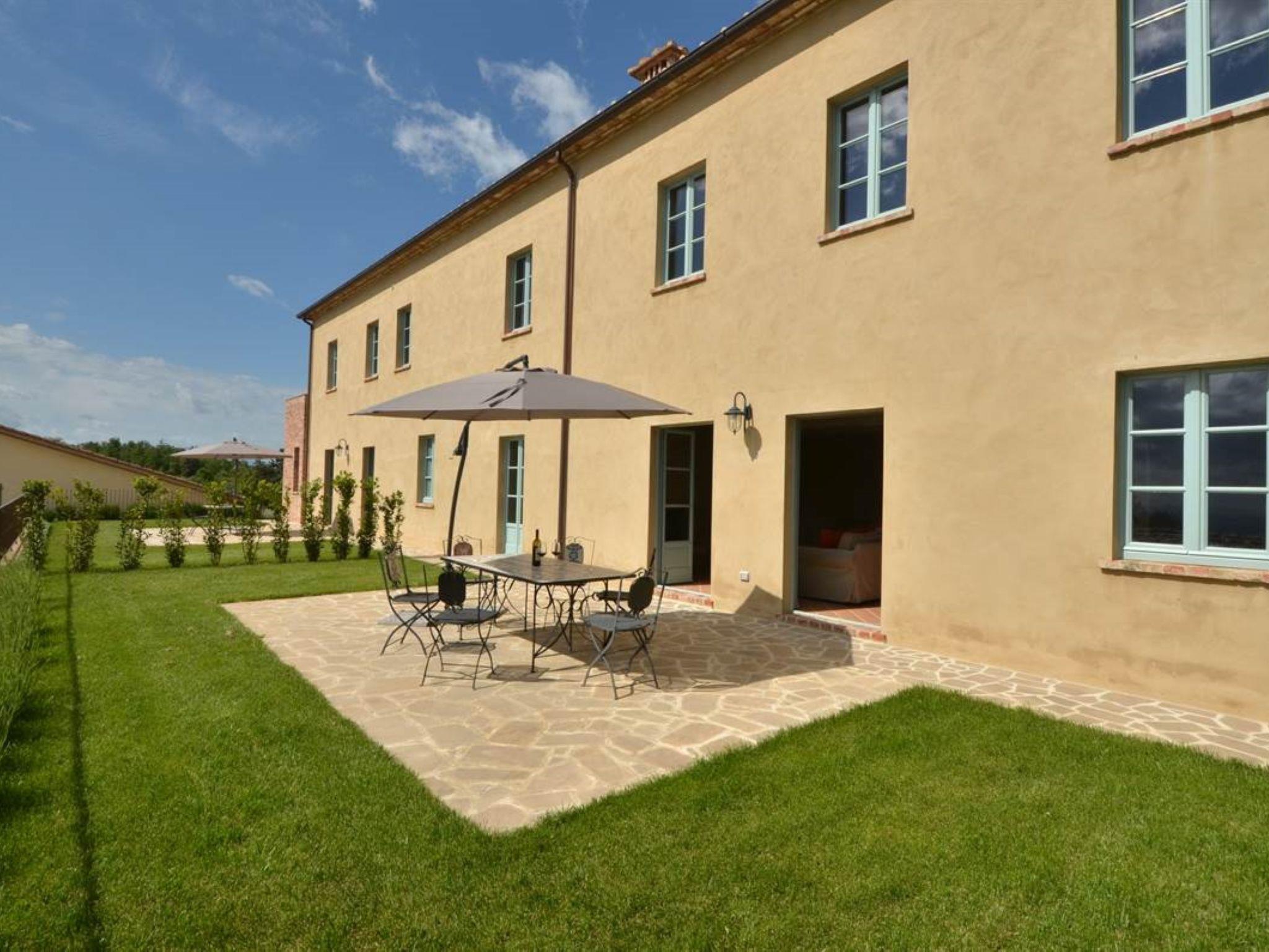 Very beautiful, comfortable residence "Cignella Resort", surrounded by trees, fields and vineyards. 13 apartments in the residence. 3 km from the centre of Trequanda, in a secluded, sunny, elevated position, 30 km from the lake, in the countryside. For shared use: property (fenced), large garden plants and trees, swimming pool fenced (10 x 12 m, seasonal availability: 01.May. - 15.Oct. pool opening hours: 08:00-19:00) with internal staircase. Children's pool, outdoor shower, patio, pergola, terrace, garden furniture, barbecue, pool maintenance by the owner/gardener. In the house: reception, breakfast room, lounge, massage (extra). Linen change weekly. Towel change weekly. Room cleaning on request (extra). Breakfast possible (extra). Airport transfer (extra). 1 km long bumpy motor access. Parking on the premises. Shop 3 km, grocery 3 km, supermarket 10 km, shopping centre 10 km, restaurant 3.5 km, bus stop 1.5 km, railway station "Foiano della Chiana" 22 km, thermal baths "Rapolano Terme" 30 km, bathing lake "Trasimeno" 30 km. Golf course (9 hole) 17 km. Nearby attractions: Pienza 13 km, Montepulciano 14 km, Montalcino 32 km, Cortona 39 km, Arezzo 48 km, Siena 49 km. Well-known lakes can easily be reached: Trasimeno 30 km, Chiusi 35 km. Please note: reception open 09:00-18:00 hrs. Suitable for families, baby equipment (included), childminding (extra). Suitable for events. On request: airport transfer to the holiday accommodation. Please note: Loading and unloading of baggage is possible at the holiday house. 24hr guard. Residence with electric gates. All houses/apartments are individually designed/furnished.