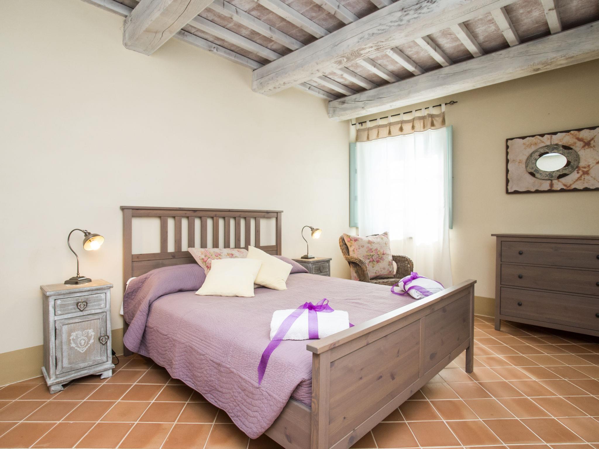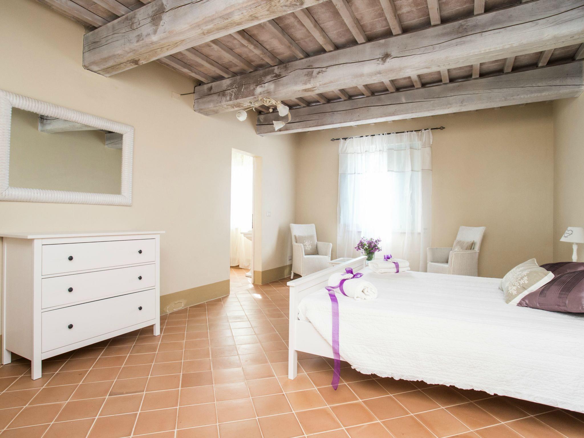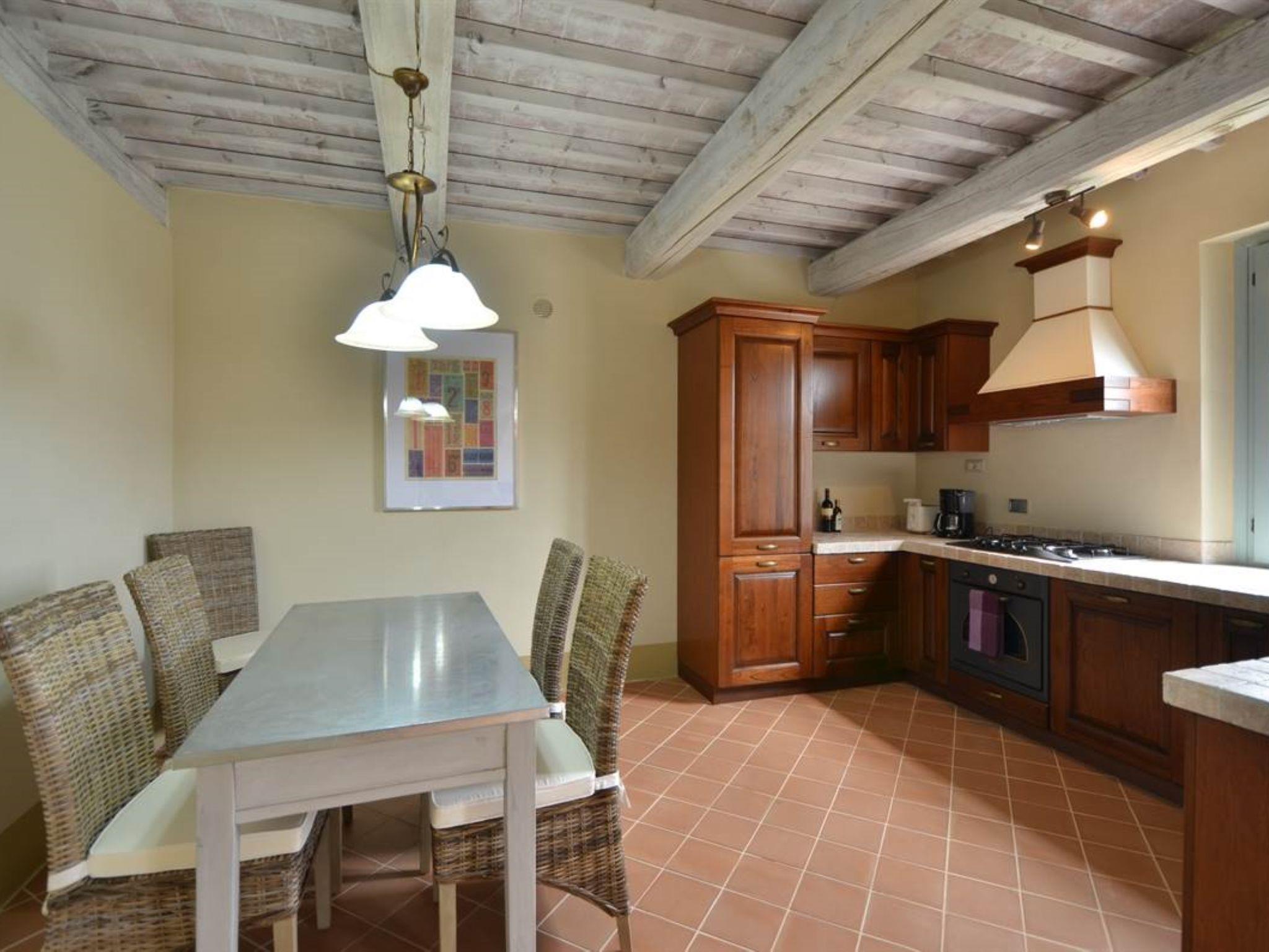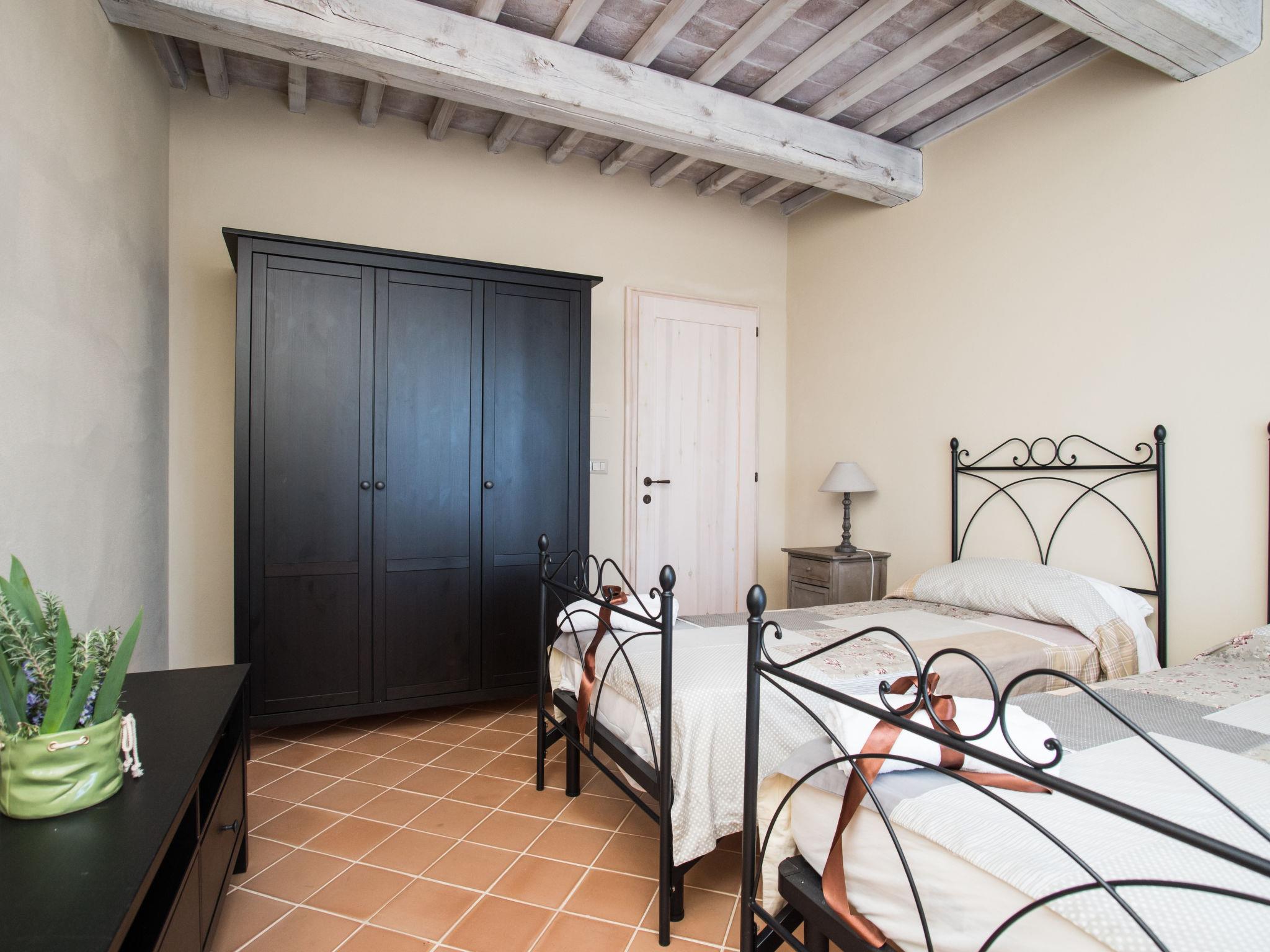 Very beautiful, comfortable residence "Cignella Resort", surrounded by trees, fields and vineyards. 13 apartments in the residence. 3 km from the centre of Trequanda, in a secluded, sunny, elevated position, 30 km from the lake, in the countryside. For shared use: property (fenced), large garden plants and trees, swimming pool fenced (10 x 12 m, seasonal availability: 01.May. - 15.Oct. pool opening hours: 08:00-19:00) with internal staircase. Children's pool, outdoor shower, patio, pergola, terrace, garden furniture, barbecue, pool maintenance by the owner/gardener. In the house: reception, breakfast room, lounge, massage (extra). Linen change weekly. Towel change weekly. Room cleaning on request (extra). Breakfast possible (extra). Airport transfer (extra). 1 km long bumpy motor access. Parking on the premises. Shop 3 km, grocery 3 km, supermarket 10 km, shopping centre 10 km, restaurant 3.5 km, bus stop 1.5 km, railway station "Foiano della Chiana" 22 km, thermal baths "Rapolano Terme" 30 km, bathing lake "Trasimeno" 30 km. Golf course (9 hole) 17 km. Nearby attractions: Pienza 13 km, Montepulciano 14 km, Montalcino 32 km, Cortona 39 km, Arezzo 48 km, Siena 49 km. Well-known lakes can easily be reached: Trasimeno 30 km, Chiusi 35 km. Please note: reception open 09:00-18:00 hrs. Suitable for families, baby equipment (included), childminding (extra). Suitable for events. On request: airport transfer to the holiday accommodation. Please note: Loading and unloading of baggage is possible at the holiday house. 24hr guard. Residence with electric gates. All houses/apartments are individually designed/furnished.
