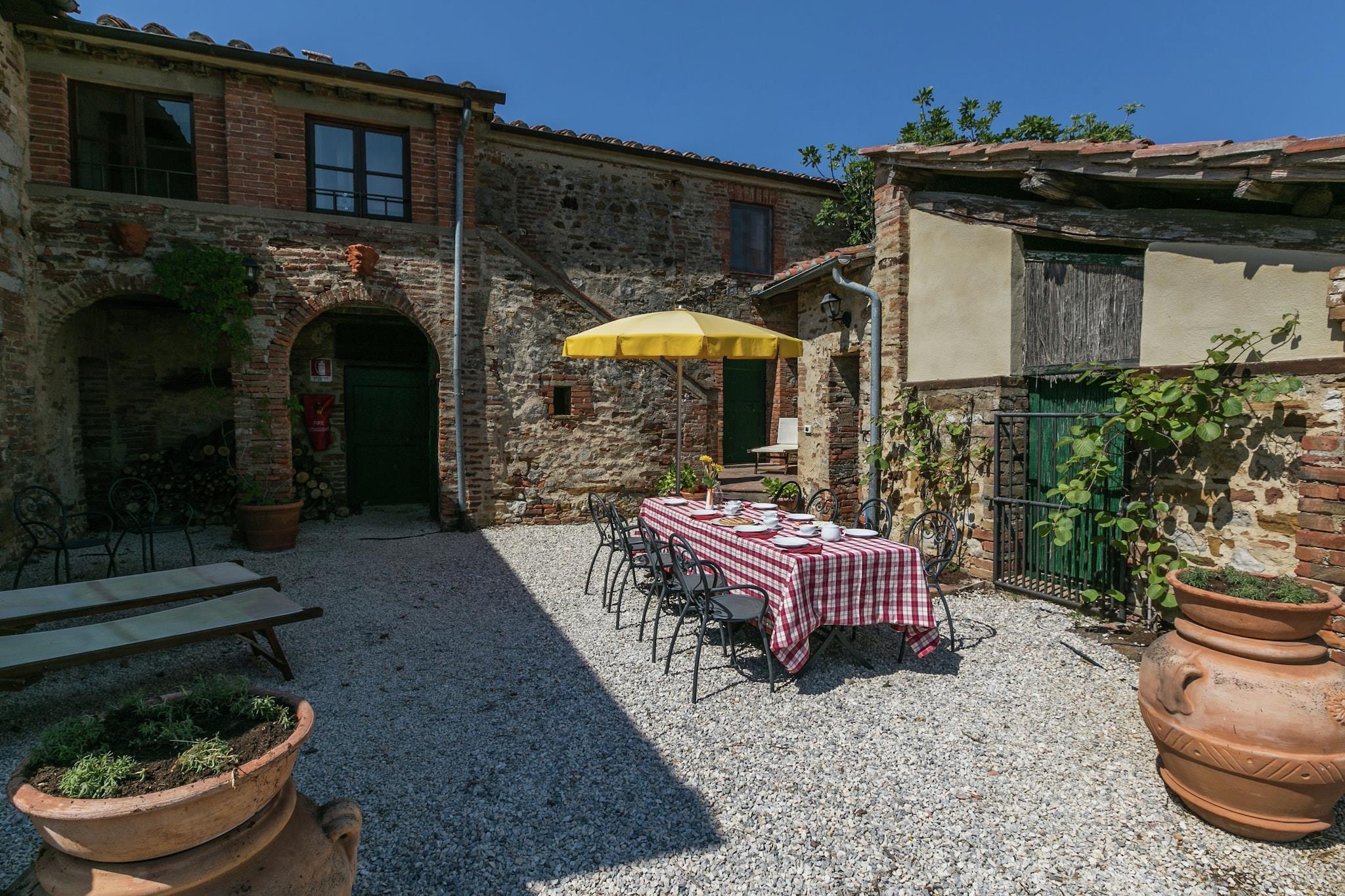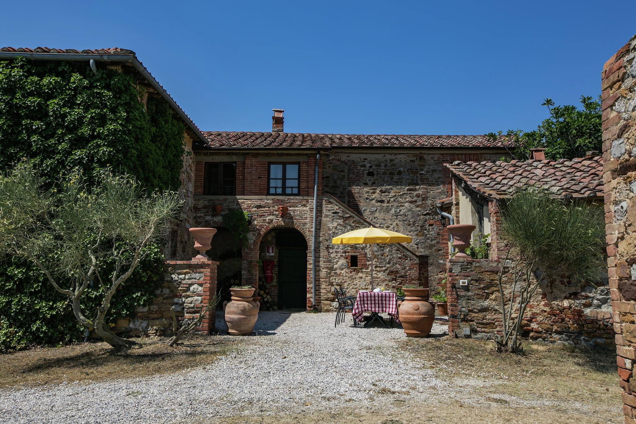 Villa Sangiovese består af 2 lejligheder på første sal i en rustico. Villaen ligger på en gård i det smukke og uspolerede toscanske landskab syd for Chianti, mellem Crete Senesi og Val d'Orcia. Villaens stueetage er ikke i brug. Det er et typisk rustikt stenhus. Villaen har en gårdhave, hvor du kan spise. En stentrappe fører til hallen, hvorfra man kommer ind i villaen. Møblerne er en kombination af gammelt og moderne. Der er 2 swimmingpools og en tennisbane på ejendommen. Poolerne ligger ca. 150 m fra villaen. I hovedvillaen er der et billardbord og bordtennis. Du kan også tage et afslappende rødvinsbad og få kropsbehandlinger. Der er flere vandrestier på ejendommen. I vinkælderen kan du deltage i en vinomvisning. Godset producerer flere typer vine af høj kvalitet, herunder Brunello di Montalcino og Chianti Superiore. Godsets Osteria serverer Brunello-vin sammen med Cinta Senese, hvide trøfler og andre regionale specialiteter. Ejendommen byder på mange aktiviteter og er også et fremragende udgangspunkt for at udforske de smukke omgivelser. Det er muligt at leje cykler med levering og afhentning til villaen. Inkluderet i prisen er: Tjenesteydelser og kalkning, brug af tennisbanen, brug af swimmingpools fra begyndelsen af juni til begyndelsen af oktober, guidet rundvisning på gården med de historiske rum i San Clemente-kapellet. Besøget i kældrene omfatter et rum, der fortæller om vinmarkerne, og en smagning af to vine fra Donatella Cinelli Colombinis kælder. Bemærk: Wi-Fi er kun tilgængeligt i billardrummet, i restauranten og i gårdhaven foran receptionen.