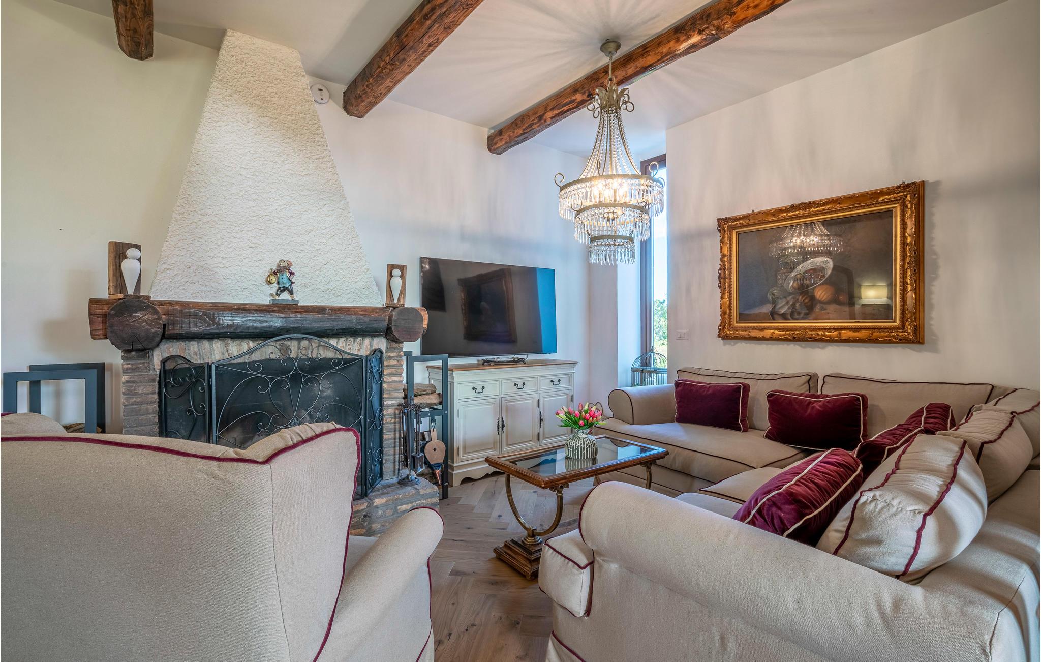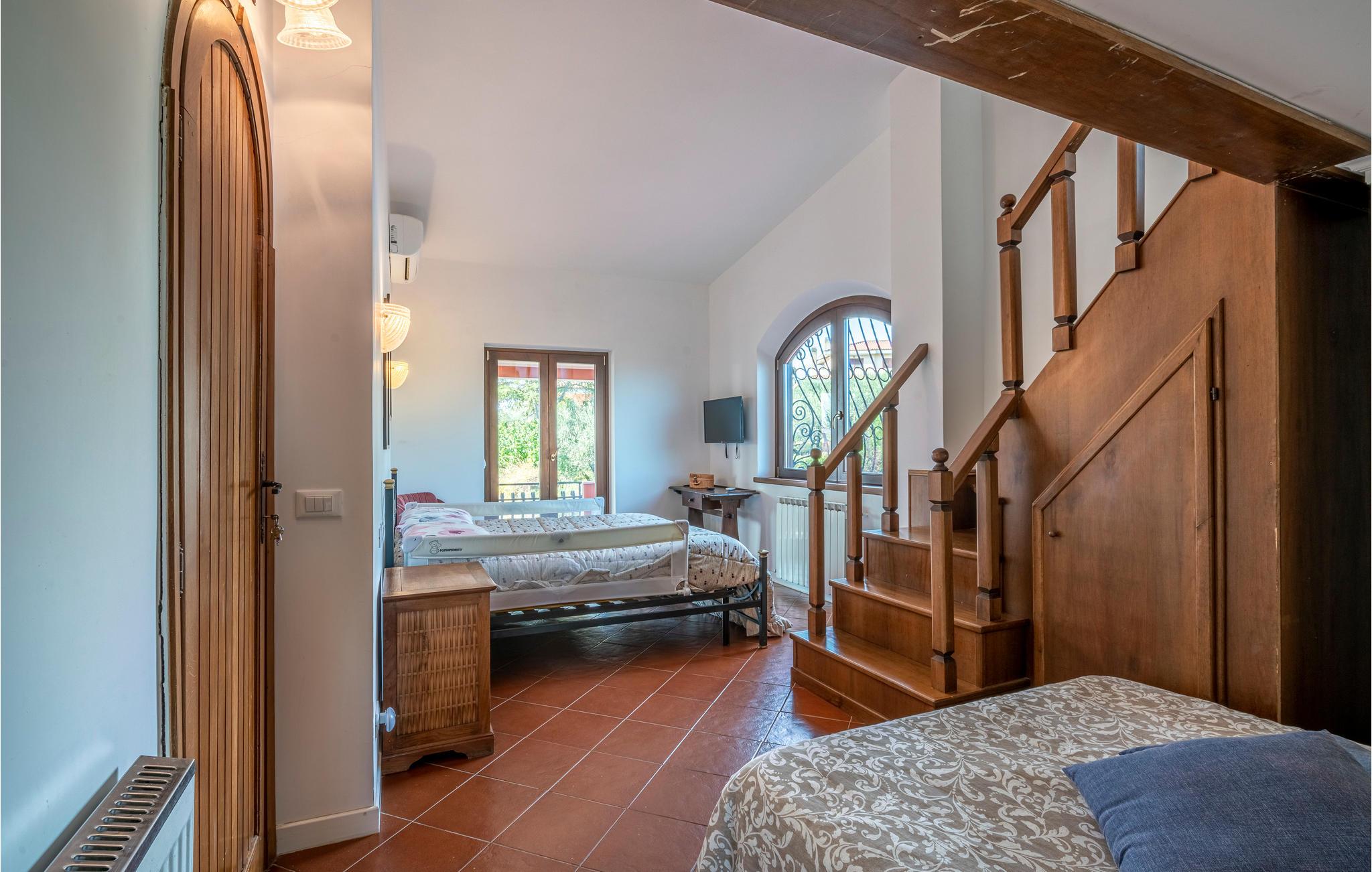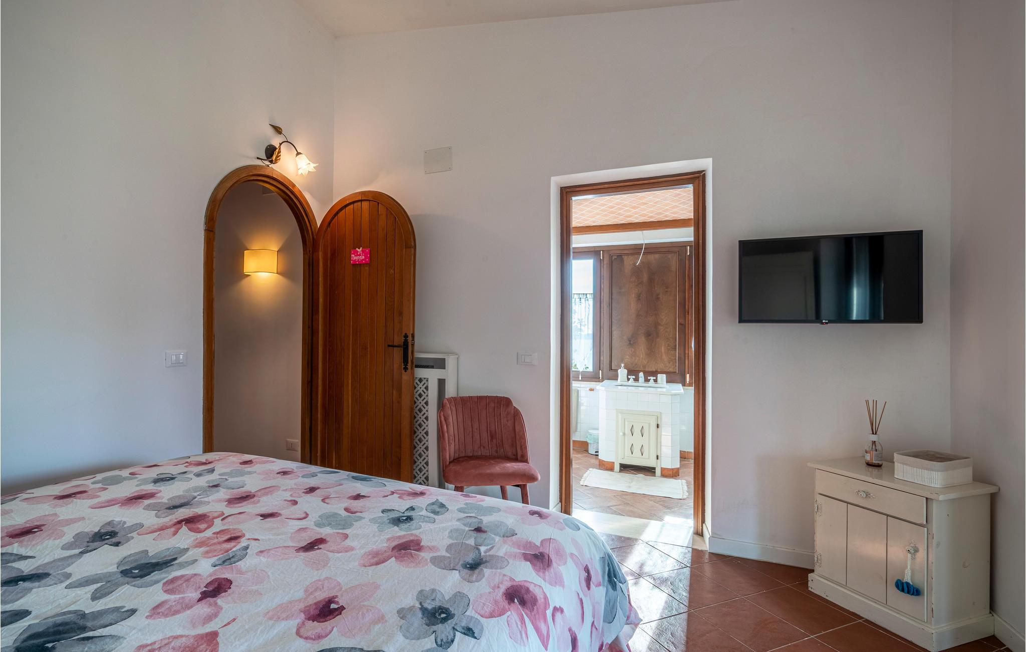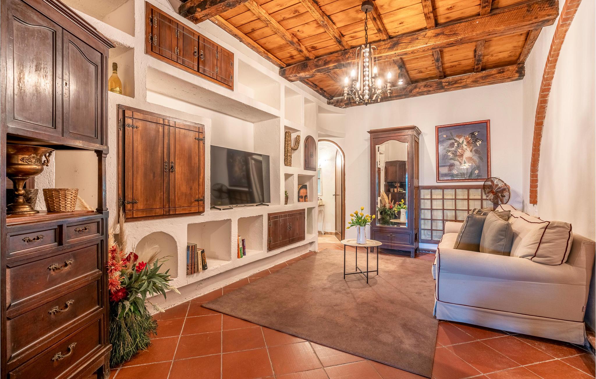Tilbring en vidunderlig ferie i denne smukke sommerresidens. Her kommer I ikke til at mangle noget. Nyd et skønt ophold i den autentiske, hvidkalkede villa med mange træelementer, som udstråler en behagelig atmosfære. Både inde og ude kan I opleve ren wellness. Slap af i skyggen på verandaen eller solbad i haven efter en forfriskende dukkert i poolen. Lad jer fortrylle af den betagende udsigt, mens børnene kan boltre sig ubekymrede på legeredskaberne. Udekøkkenet sikrer, at I kan tilberede en lækker grillmiddag udendørs, og i vinterhalvåret kan I sætte jer til rette foran kaminen, inden I lader jer falde tilbage i de indbydende senge og forsvinder ind i drømmenes land.
