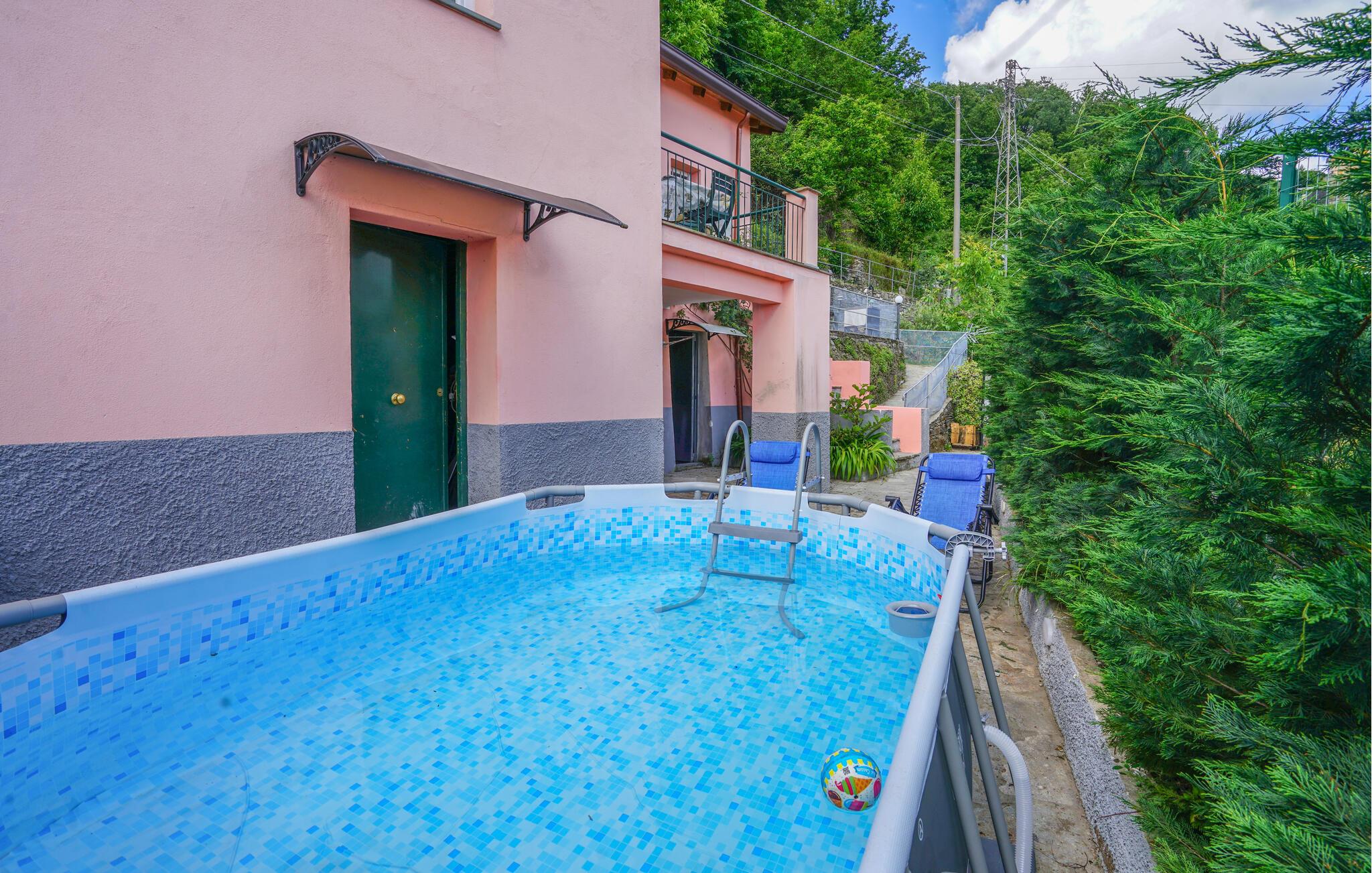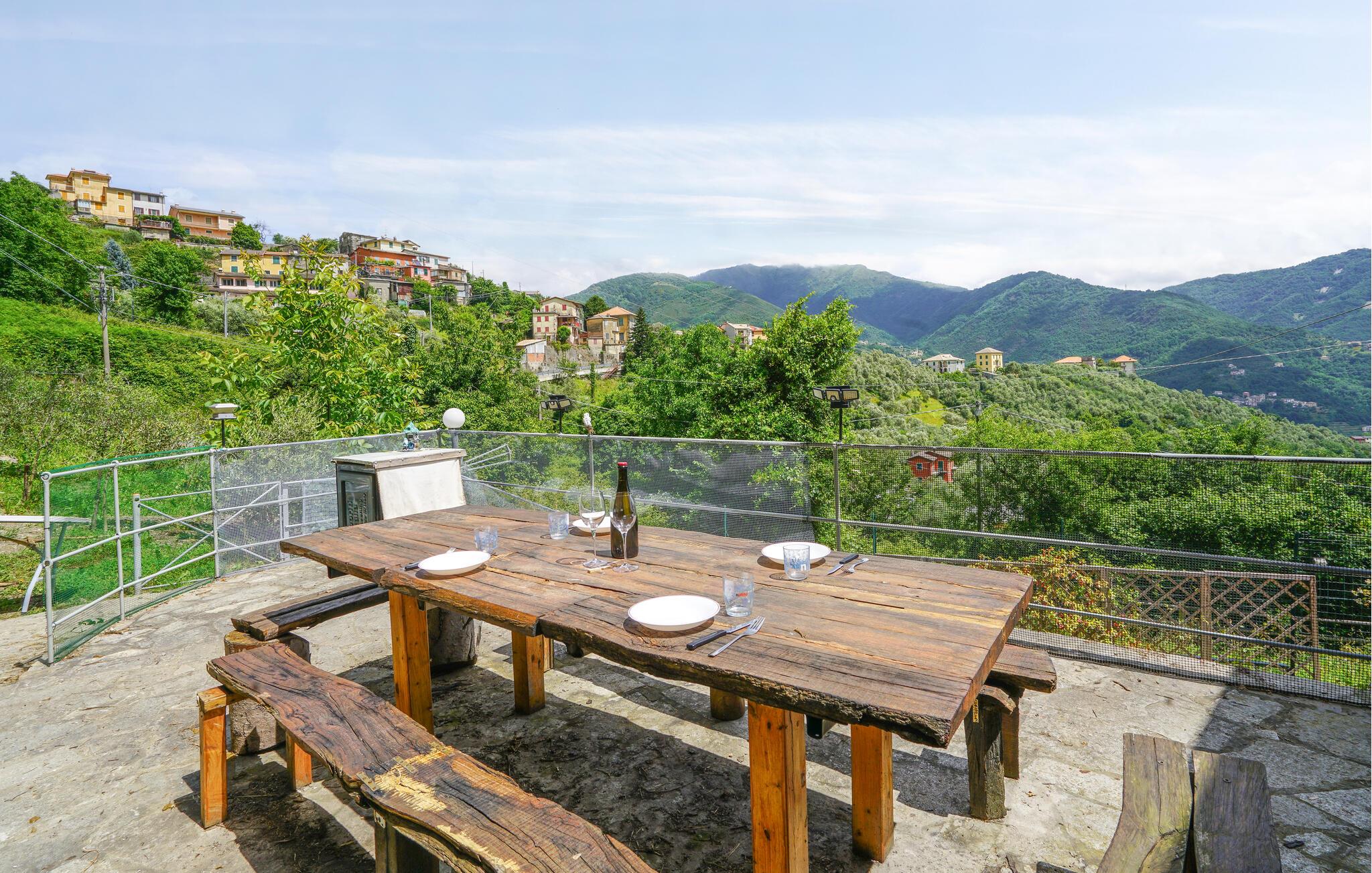 Velkommen til dette indbydende hus, hvor I vil tilbringe din ferie i en fantastisk panoramisk beliggenhed i det smukke liguriske landskab. Lyse, komfortabelt indrettede værelser med flotte trælofter danner rammen om samværet. Afslut skønne feriedage med en hyggelig filmaften på komfortable sofaer. Udenfor kan I nyde solen og den fantastiske udsigt og nyde en afslappet middag på terrassen en lang sommeraften.