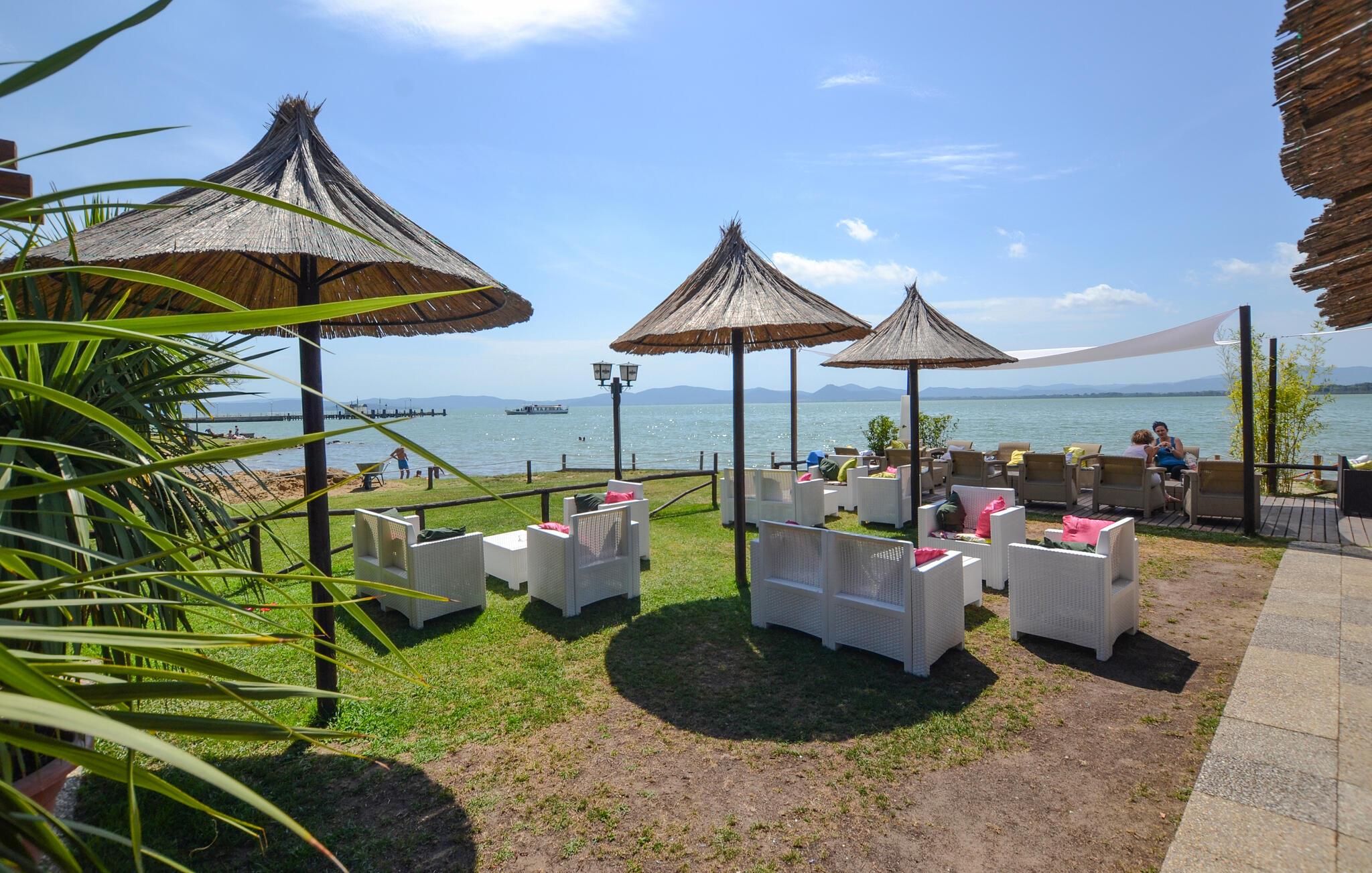 Begynd dagene med en afslappet svømmetur i den store, fælles pool, nyd solen på en liggestol og lad børnene få nye venner på legepladsen. Snup en dyst på bocciabanen eller ved bordtennisbordet og snak med andre gæster til hyggelige grillaftener.