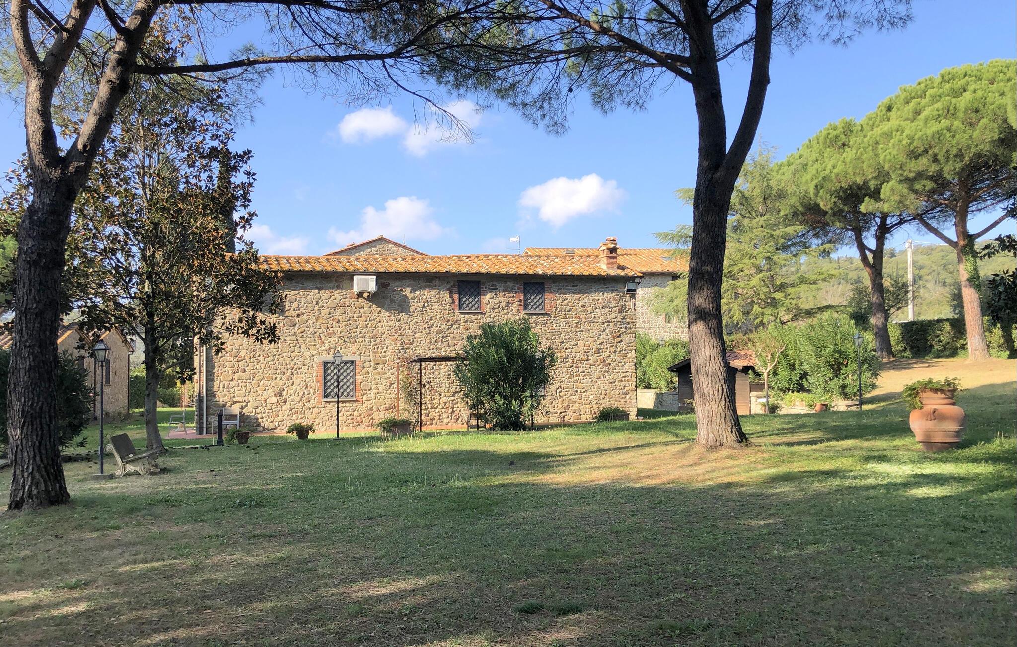 Nær attraktive destinationer tilbyder dette fortryllende feriehus med rustik charme en komfortabel base omgivet af duftende natur. Planlæg jeres udflugter, mens I nyder lækre pastaretter, afhold sjove spilleaftener eller fordyb jer i jeres ferielæsning efter en lang dag.