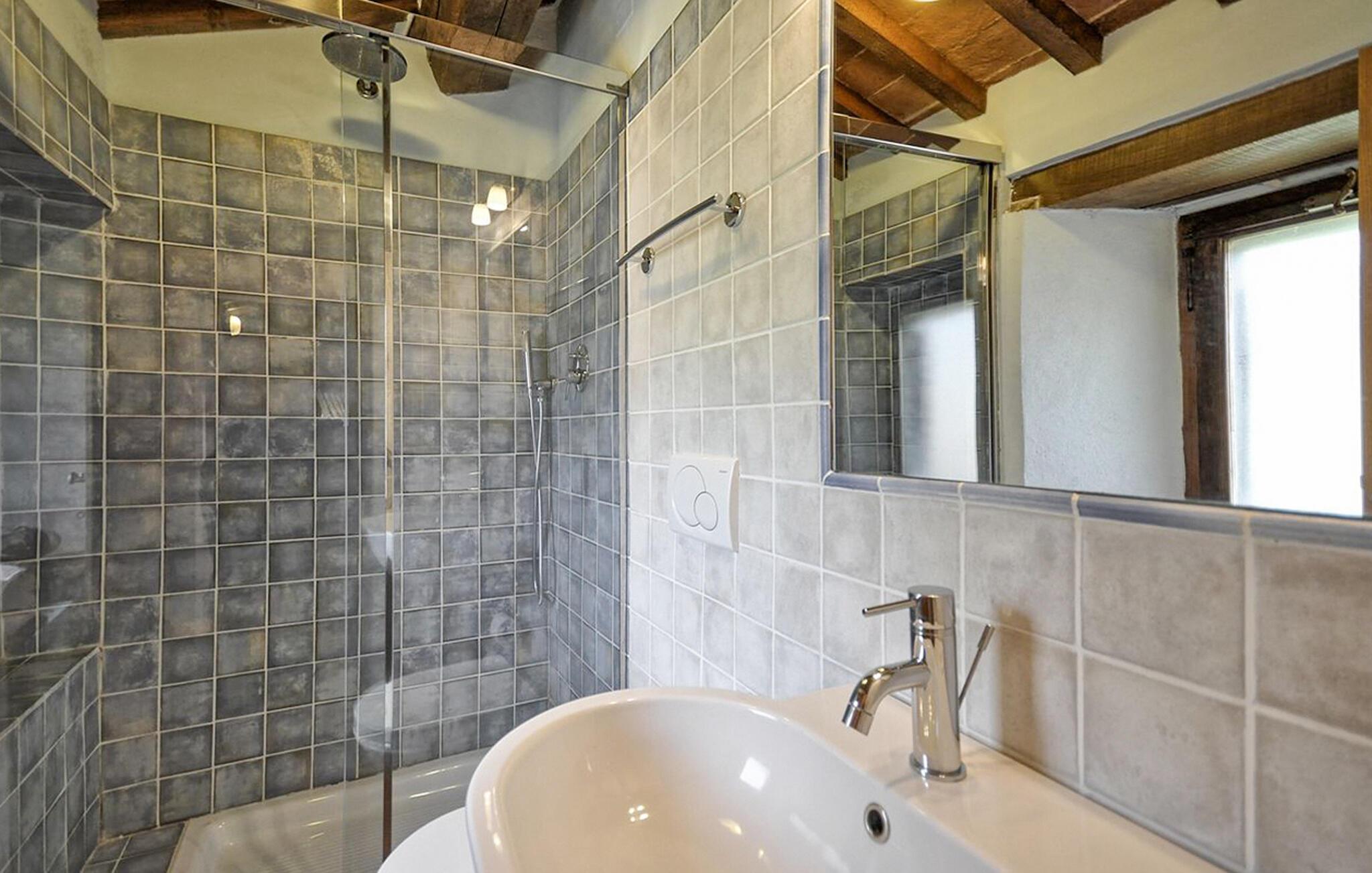 Beliggende nær attraktive destinationer tilbyder denne smukke ferielejlighed med rustik charme en komfortabel base omgivet af duftende natur. Planlæg jeres udflugter, mens I nyder lækre pastaretter, afhold sjove spilleaftener eller fordyb jer i jeres ferielæsning efter en lang dag.