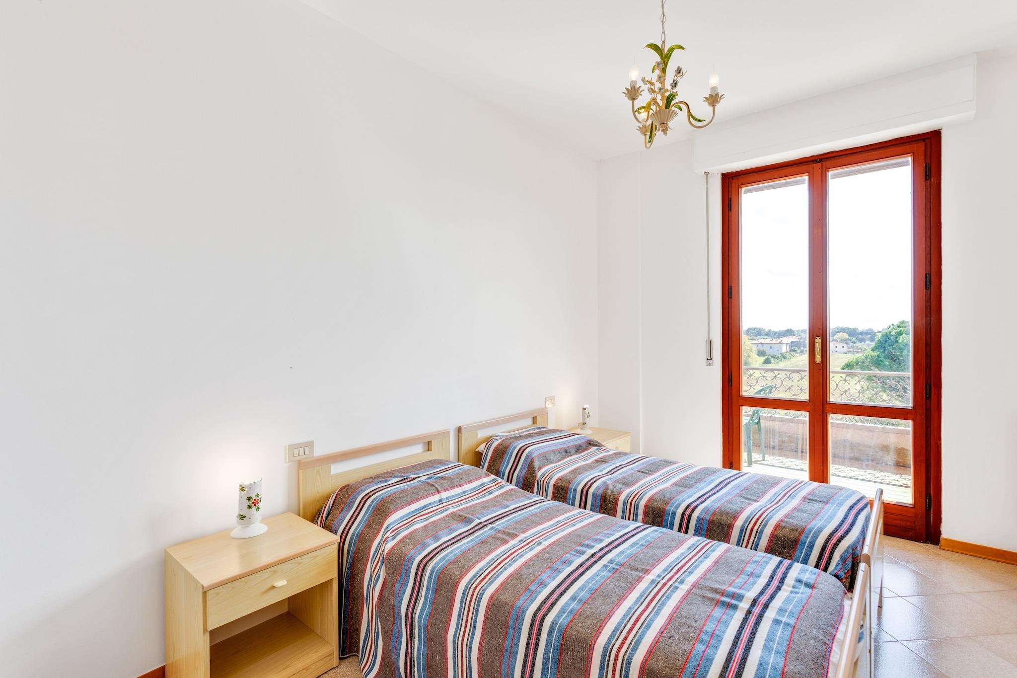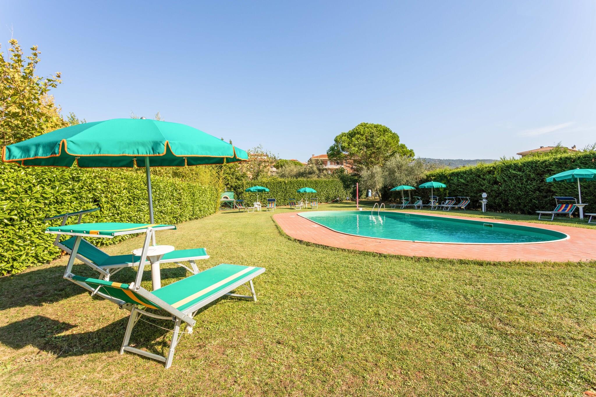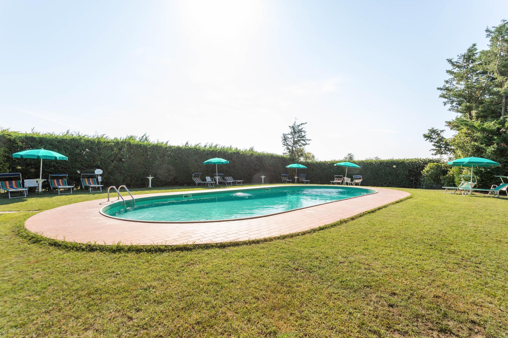 Denne charmerende lejlighed ligger i den maleriske landsby Tuoro sul Trasimeno og har plads til seks gæster. Den tilbyder en rolig blanding af komfort og eventyr. Kæledyrsvenlige lejligheder med gratis Wi-Fi sikrer et afslappende ophold. Kun en kilometer væk ligger den betagende Trasimeno-sø, hvor gæsterne kan slappe af på fredelige kyster og beundre fantastiske solnedgange. Historieelskere vil sætte pris på det nærliggende Museo di Annibale, der vækker slaget ved Trasimeno til live, samt den udendørs skulpturpark Campo del Sole. For et endnu dybere dyk ned i den lokale kulturarv venter den middelalderlige pragt på Guglielmi-slottet på Isola Maggiore. Villaen kan prale af et fuldt udstyret køkken med kogeplader, elkedel, kaffemaskine, ovn og køleskab med fryser. Den rummelige opholds- og spisestue har en dobbelt sovesofa, tv og spisebord. Det største soveværelse har en hyggelig dobbeltseng, mens det andet værelse har to komfortable enkeltsenge. Det veludstyrede badeværelse har bruser, håndvask, toilet og bidet. Yderligere faciliteter inkluderer et vaskerum med vaskemaskine, et fitnessområde med udstyr og et opholdsrum med bordtennis og bordfodbold. Udendørs kan gæsterne nyde en privat terrasse, en fælles have med møbler til afslapning og adgang til en sæsonåben pool (tilgængelig maj-september). Omgivet af Toscanas charme lover Tuoro sul Trasimeno en idyllisk blanding af naturlig skønhed og kulturel rigdom. Prøv udsøgt italiensk mad på nærliggende spisesteder som Cortona Bistrot, La Fett’Unta, Trattoria Toscana, La Loggetta, Il Cacciatore, Trattoria Dardano, Ambrosia og Tonino.
