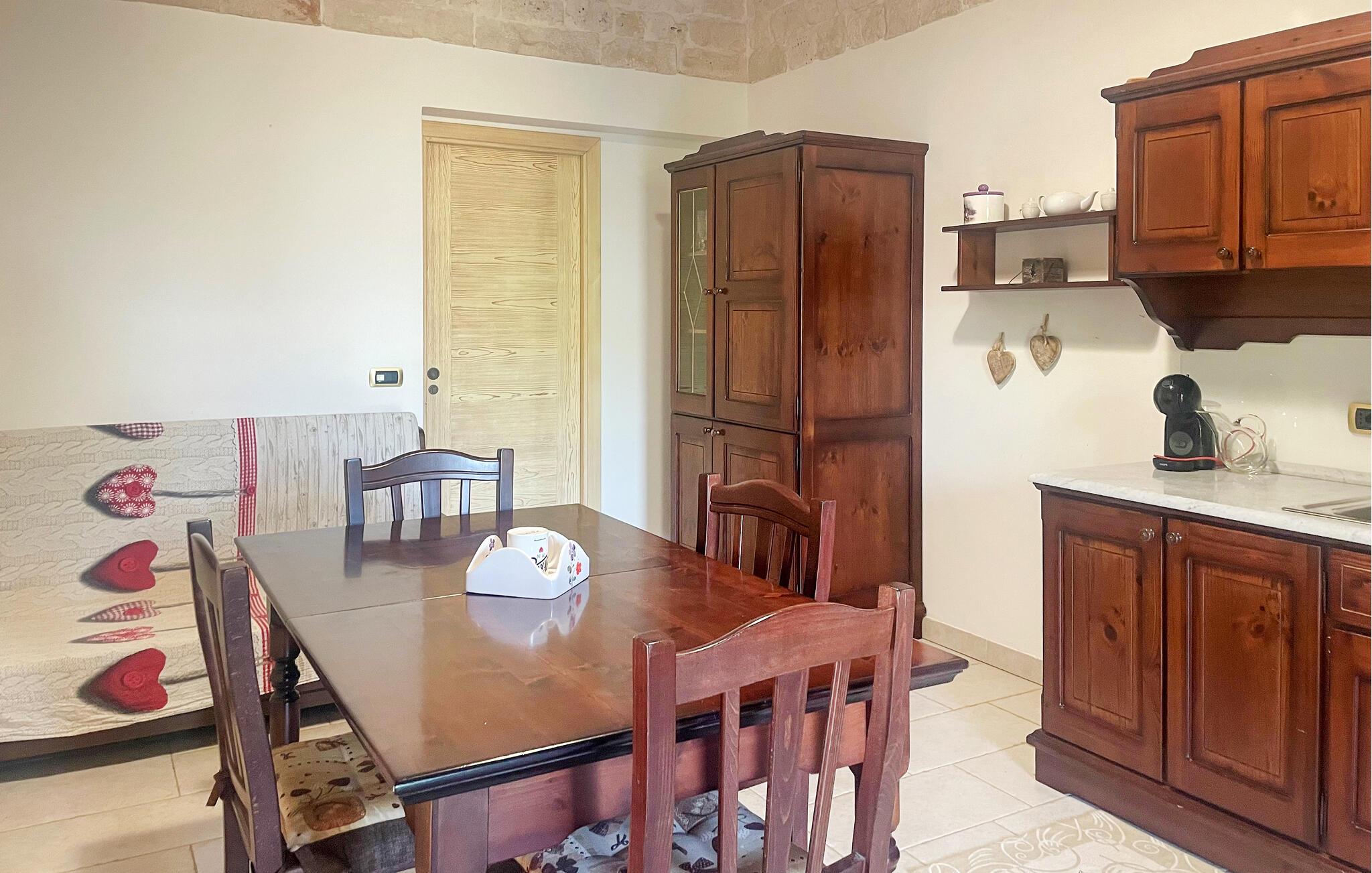 Nyd en pause med historisk charme i dette indbydende feriehus. Slap af i dette smukt beliggende stenhus i kystens bagland, hvor I kan tilbringe en afslappende tid med jeres familie i en hyggelig og autentisk atmosfære. Charmerende hvælvede lofter og synlige murværk vidner om husets lange historie og harmonerer med dets stilfulde møbler. Gå udenfor for at nyde solskinnet. Server lækre grillretter og tilbring uforglemmelige sommeraftener under stjernerne. Udforsk de omkringliggende vinmarker og olivenlunde på en guidet tur – og nyd derefter en smagning af regionale vine direkte på vingården. Tag en cykeltur gennem de bølgende bakker eller vandre langs idylliske stier med udsigt over Adriaterhavet. Kun få kilometer væk når I de berømte trulli i Alberobella, og de imponerende Castellana-huler inviterer jer også til en imponerende underjordisk udforskning.