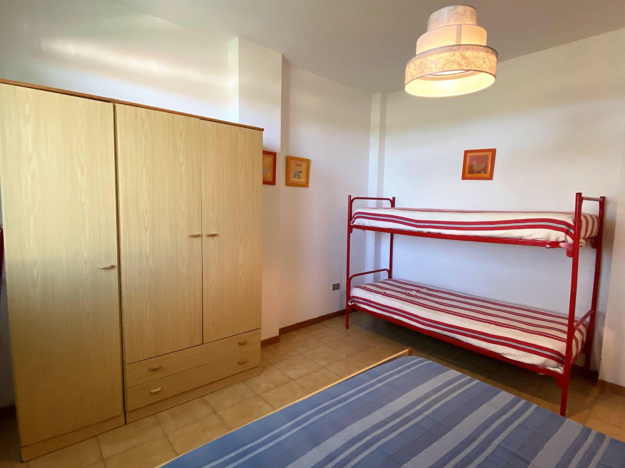 "Palazzeta II", 2-room apartment 40 m2 on 1st floor. Practical furnishings: living/sleeping room with 1 sofabed and dining table. 1 room with 1 x 1 bunk beds (80 cm), 1 double bed (80 cm). Kitchenette (4 gas rings). Shower/WC. Electric heating. Terrace. Terrace furniture. Facilities: baby cot. Parking (1 car). Maximum 1 pet/ dog allowed. IT049007C2UWWOND9T