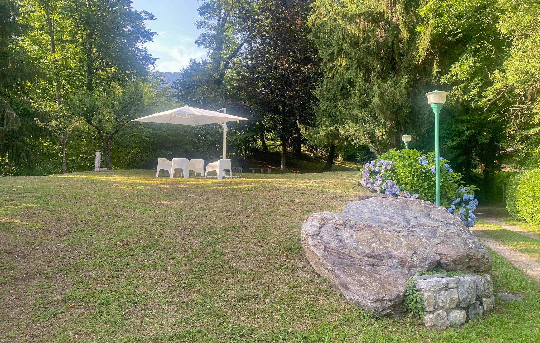 Start jeres morgen på den overdækkede terrasse, og lad blikket glide over de omkringliggende bjerge og skove. Den store have med komfortable siddepladser og grillfaciliteter indbyder til afslappede eftermiddage og hyggelige aftener udendørs. Slap af i haven og nyd den friske bjergluft.