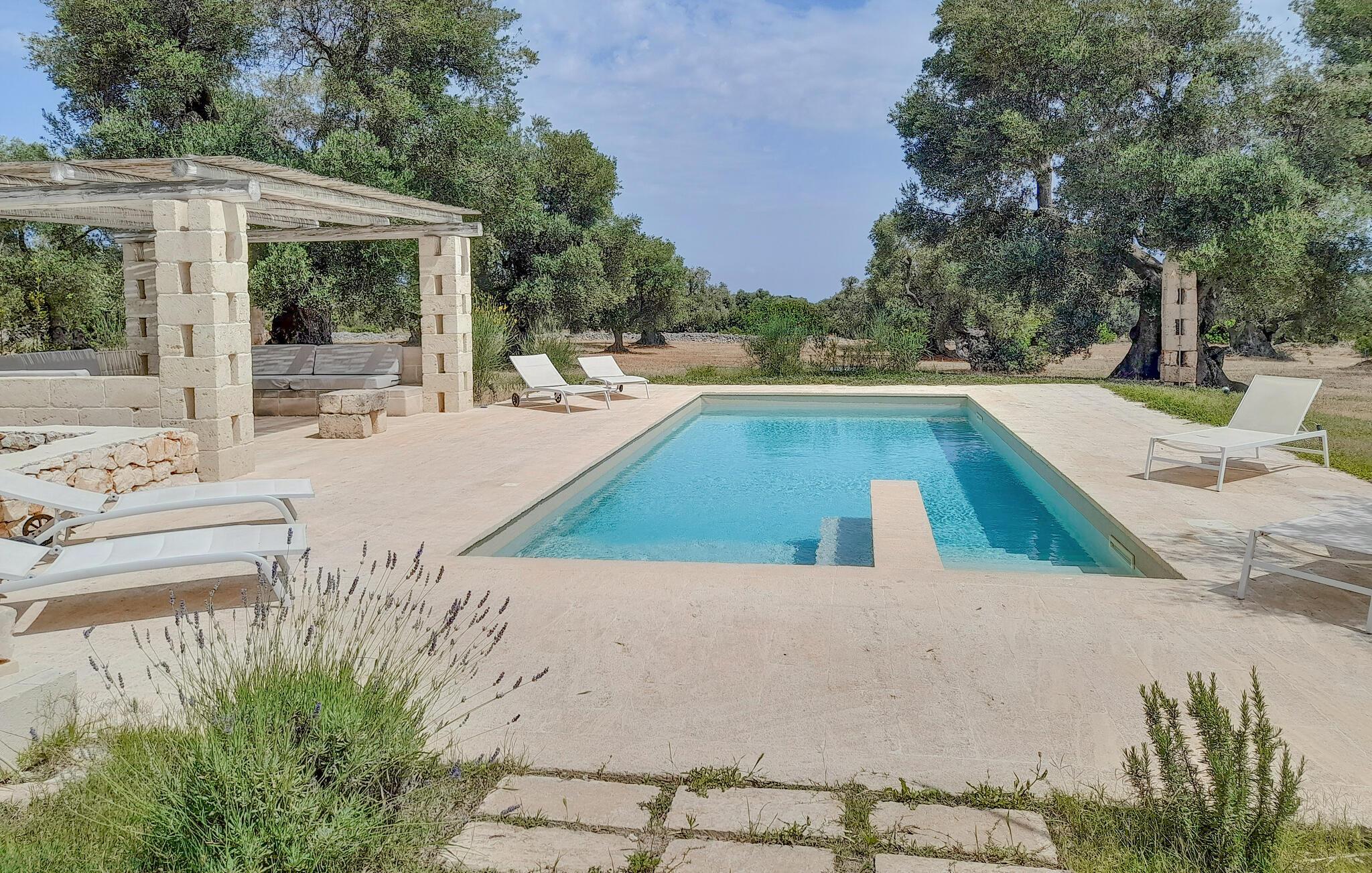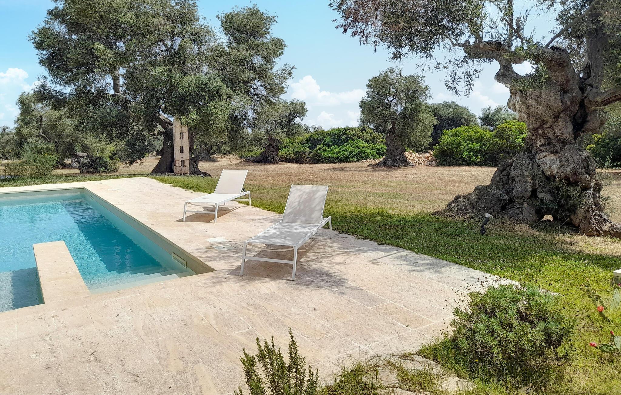 Begynd ferien med en forfriskende svømmetur i den rummelige pool, som er omgivet af gamle træer. Nyd freden og den smukke natur i omgivelserne, mens I slapper af på de komfortable liggestole. Og brug det overdækkede udendørs opholdsområde til at nyde en afslappet morgenmad eller læse en bog i solen. Her har I alle muligheder for at slappe helt af og koncentrere jer om at holde fri.