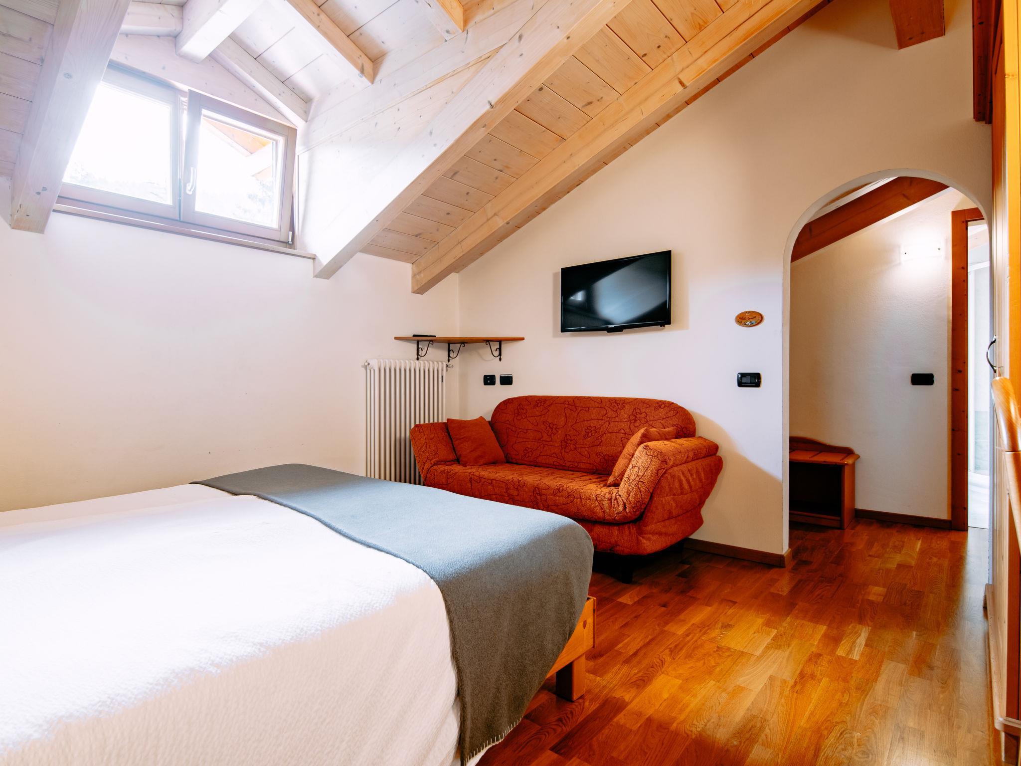 4-room apartment 75 m2 on 2nd floor. Bright, with sloping ceilings, comfortable and wooden furniture furnishings: living room with dining table and satellite TV. Exit to the balcony. 1 double bedroom with shower/bidet/WC. 1 double bedroom. Exit to the balcony. 1 small room with 2 beds. Open kitchen (oven, 4 gas rings, electric coffee machine). Shower/bidet/WC. Heating. Balcony. Balcony furniture. Beautiful panoramic view of the mountains and the valley. Facilities: children's high chair, baby cot for up to 2 year olds (extra). Internet (WiFi, free). Parking at the house. No mandatory extra charges to be paid on-site except for local tax. Bedlinen, final cleaning and all energy costs are included. IT022159B4M72JWE4P