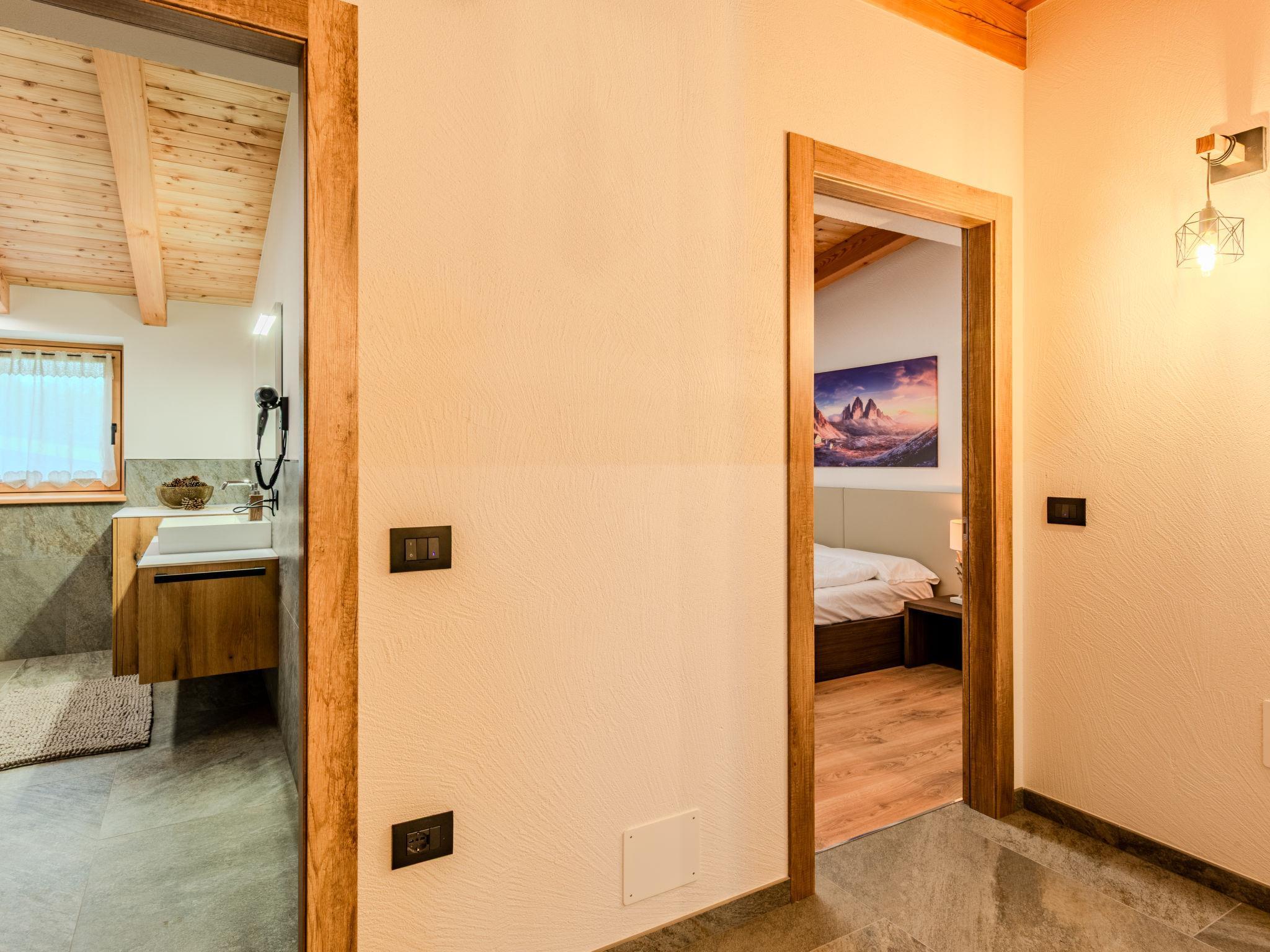 Livo: Villa "Casa del Larice", 2 storeys, detached, built in 2025, surrounded by meadows and fields. 2 apartments in the property. In the district of Preghena, in a sunny position on top of a hill, 20 m from the edge of the forest, 13 km from the lake, 20 km from the skiing area, in the countryside, south facing position. For shared use: natural state property (fenced), lawn for sunbathing 4'000 m2 (fenced). Patio (60 m2), barbecue house. In the house: WiFi, storage room for bicycles, storage room for skis. Linen change weekly (suppl. charge extra). Towel change weekly (suppl. charge extra). Room cleaning weekly on request (extra). Parking at the house on the premises. 2 minute walk to the centre, bus stop 100 m, lake di Santa Giustina 13 km. Walking paths from the house 50 m, gondola lift 15 km, skisport facilities 15 km, ski rental 15 km, children's ski school 15 km. Nearby attractions: Castel Thun 25 km, Laghetti dei Masi di Ruffré 26 km, Val di Sole 10 km, Passo del Tonale 43 km. Well-known ski regions can easily be reached: Folgarida Marilleva Campiglio 28 km, Predaia scii Coredo 25 km. Well-known lakes can easily be reached: Lago di Santa Giustina 13 km, Lago di Tovel 23 km. Hiking paths: Canyon Rio Sass 19 km, Cascata di tret 25 km, Passo della Mendola 28 km. Please note: motorway 35 km from the property. Railway line closeby 23 km from the property.