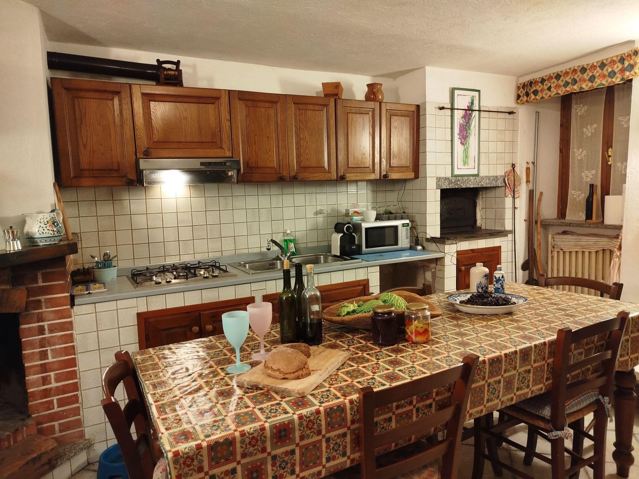 Misun D'Erio is a cosy semi-detached house on two floors, located in San Damiano Macra, in the Maira Valley, province of Cuneo. The accommodation comprises a ground floor with a large, bright living room with a balcony overlooking the valley and a wood-burning fireplace. Also on the ground floor is a large masonry kitchen with wood-burning oven and dining area. The room is characterised by rustic furnishings and colours, typical of the mountain style. On the same floor there is also a double bedroom and a service bathroom with laundry area. On the upper floor there are two double bedrooms, a bathroom with shower and bidet and a large terrace with vine pergola, perfect for enjoying moments of relaxation and conviviality in the midst of greenery and silence.