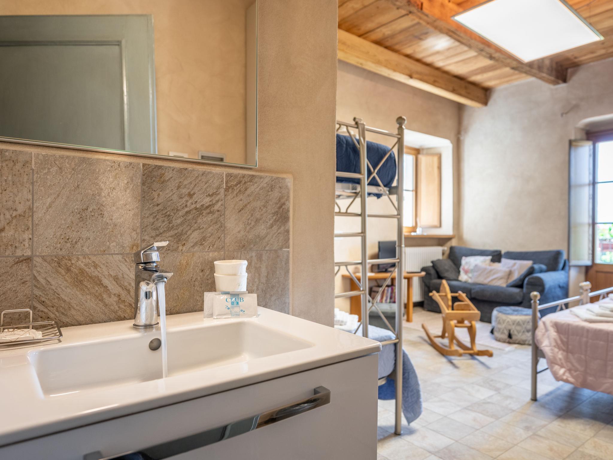 "L'appartamento del Monastero", 2-room apartment 66 m2 on 1st floor. Renovated, comfortable and modern furnishings: 1 room with 1 bunk beds, 1 double bed, hand-basin and TV. Exit to the balcony. 1 room with 1 double bed and hand-basin. Exit to the balcony, to the veranda. Kitchen (4 hot plates, kettle, microwave) with dining table. Exit to the veranda. Shower/WC. Balcony 5 m2, terrace 7 m2, roofed. Terrace furniture. Facilities: washing machine, iron, hair dryer. Internet (WiFi, free). Maximum 1 pet/ dog allowed. IT004082B6FL82DVLC