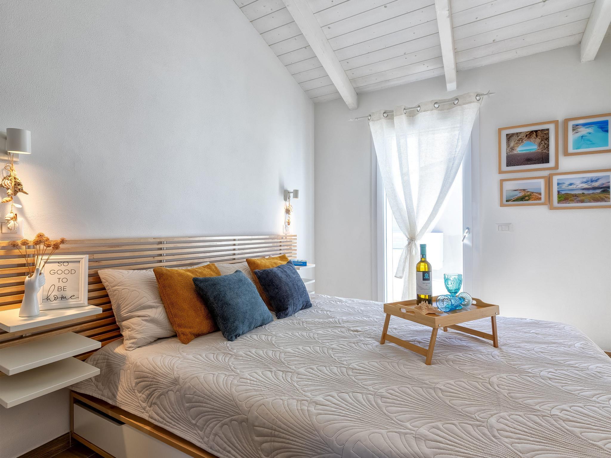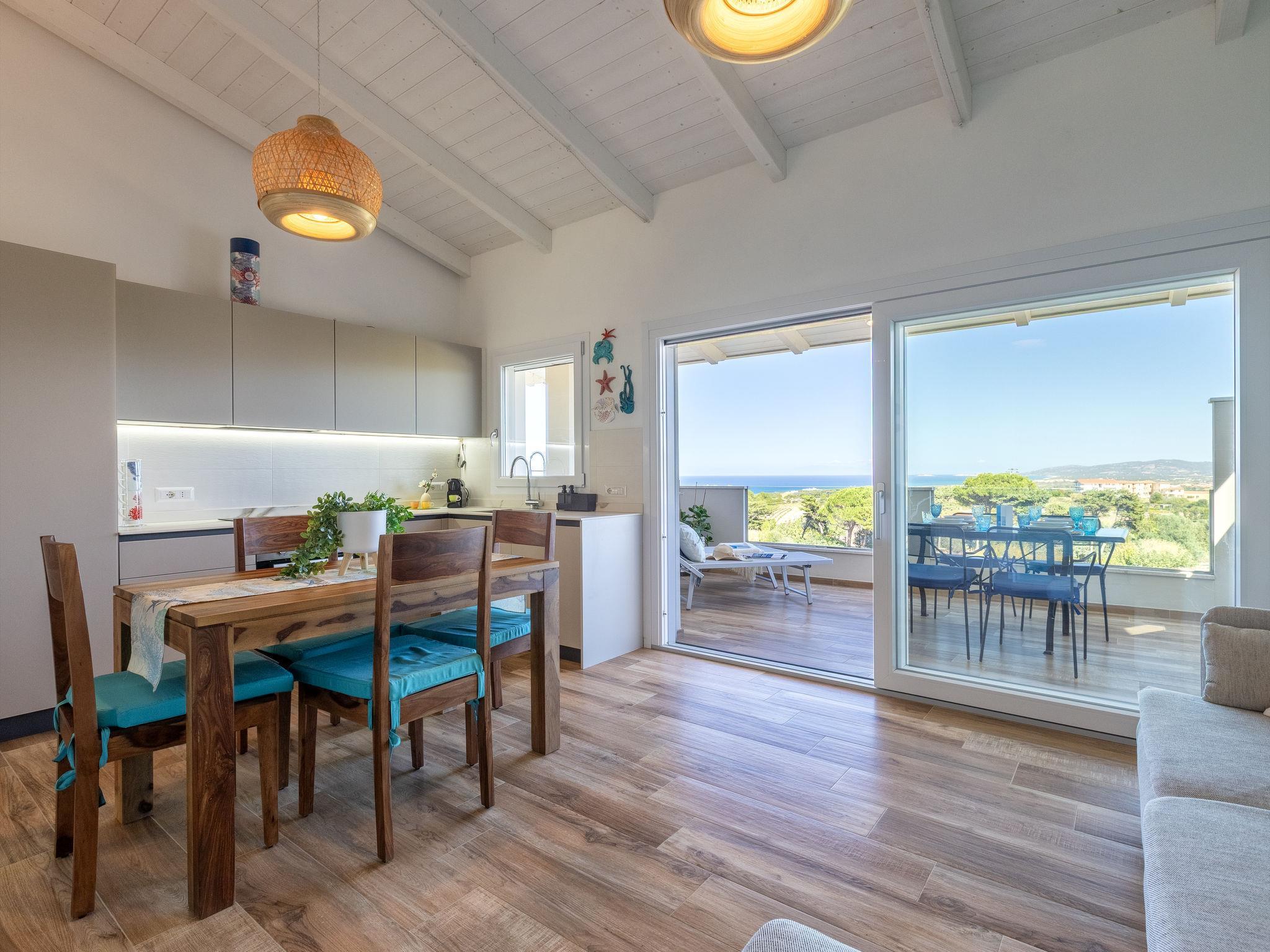 "Attico Sunset Breeze", 3-room apartment 65 m2 on 2nd floor. Comfortable and cosy furnishings: living/dining room with TV (flat screen). Exit to the terrace. 1 double bedroom with shower/bidet/WC and TV (flat screen). 1 double bedroom. Open kitchen (dishwasher, 4 induction hot plates, toaster, kettle, electric coffee machine). Shower/bidet/WC. Air-conditioning, forced-air heating. Large terrace roofed. Sitting area. Very beautiful panoramic view of the sea and the swimming pool. Facilities: washing machine, iron, mosquito net, hair dryer. Parking space n 11. IT090079C2000T9803