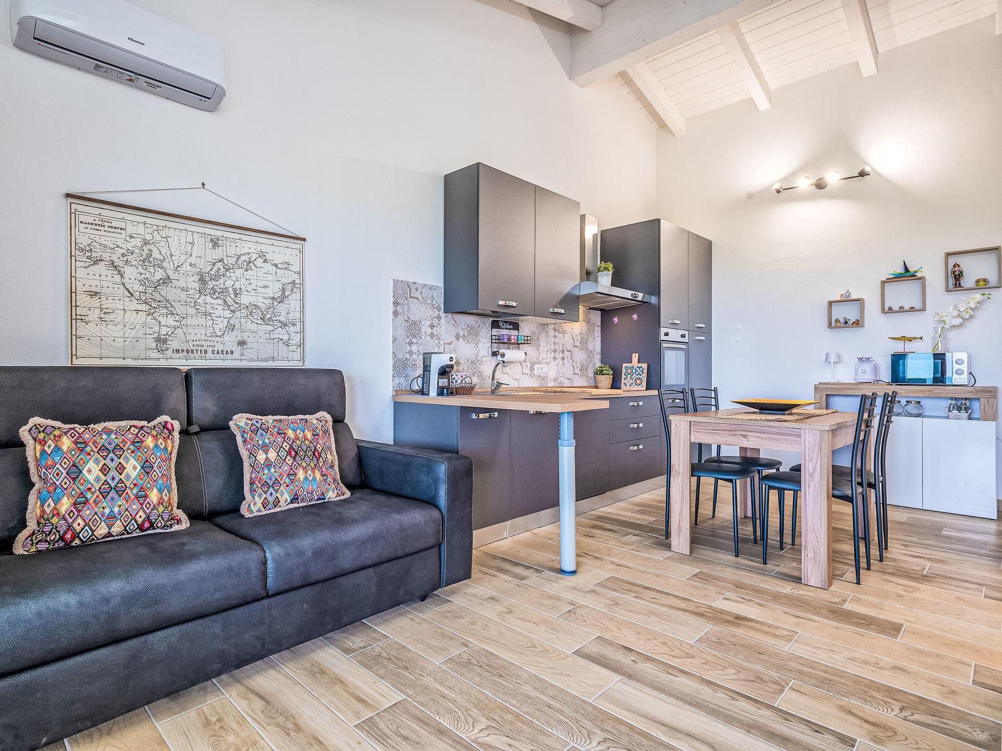 "Stogu di Lusso", 3-room penthouse 65 m2 on 2nd floor. Modern and stylish furnishings: living/dining room with satellite TV and flat screen. Exit to the terrace. Gallery with 1 double bed. Alcove with 1 bed. 1 double bedroom. Exit to the terrace. Kitchenette (oven, dishwasher, 4 induction hot plates, toaster, kettle, electric coffee machine). Shower/bidet/WC. Air-conditioning, forced-air heating. Large terrace 24 m2. Terrace furniture, electric barbecue, sitting area. Very beautiful panoramic view of the sea. Facilities: washing machine, iron, mosquito net, hair dryer. Internet (WiFi, free). Parking space n 8. IT090079C2000S3595