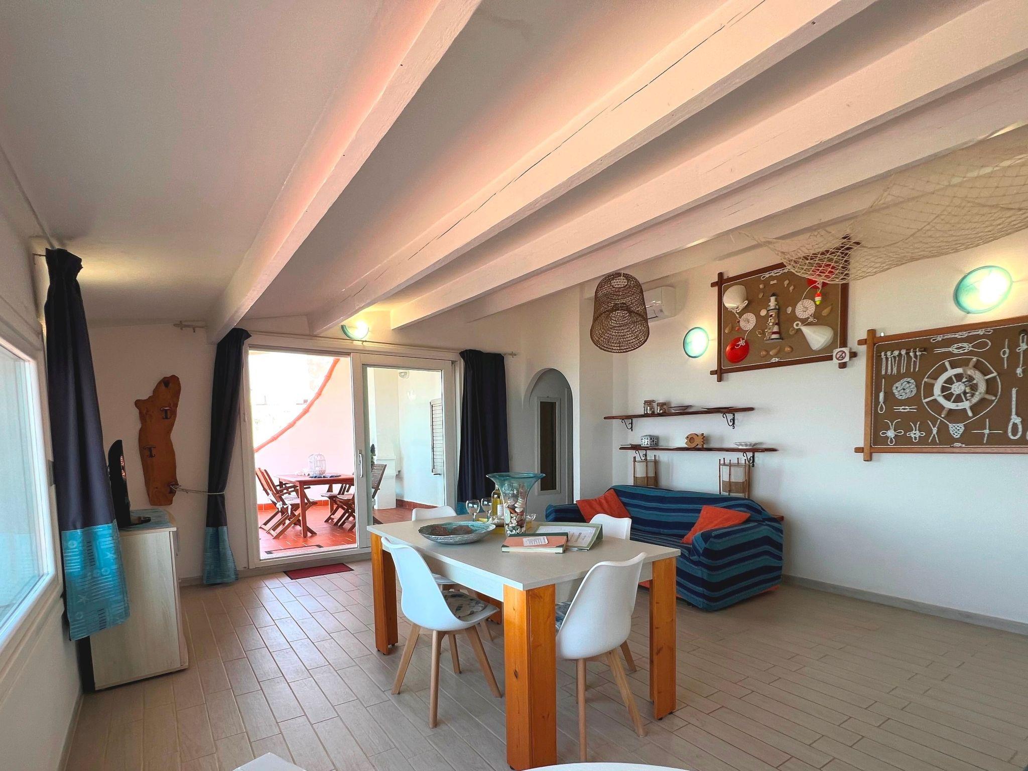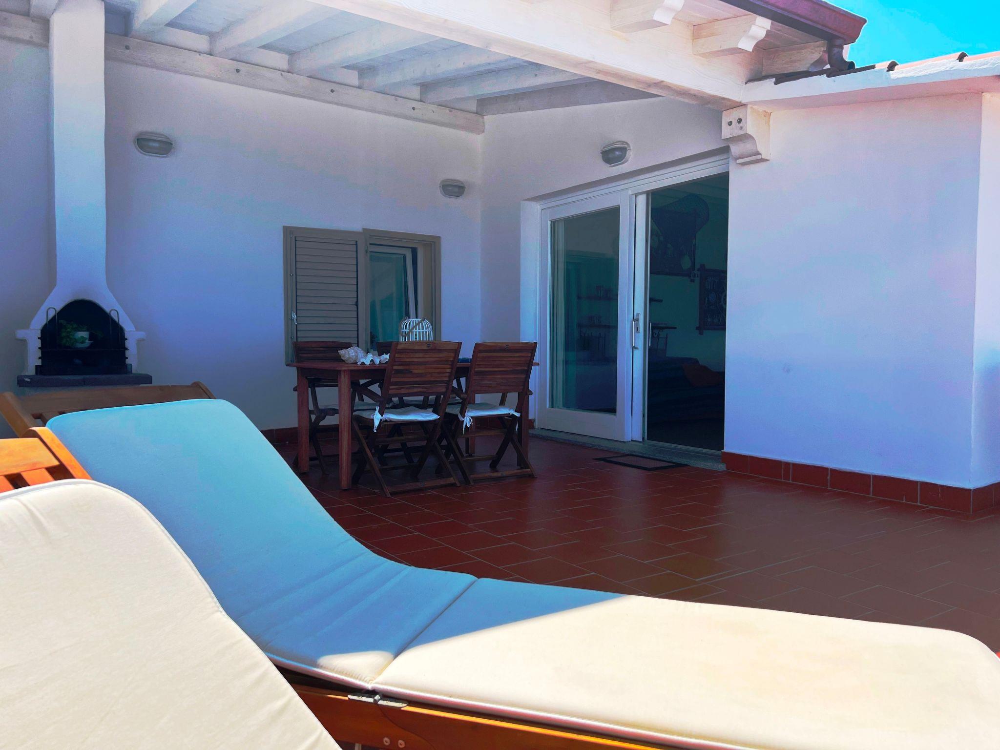 Holiday flat next to the sea, panoramic terrace, direct access to the beach, especially suitable for families with children This 75 sqm flat is located on the first floor of a semi-detached house at La Ciaccia in the Gulf of Asinara, bordering the coast. The villa is located on private property bordering the sea, with direct access to the beach.