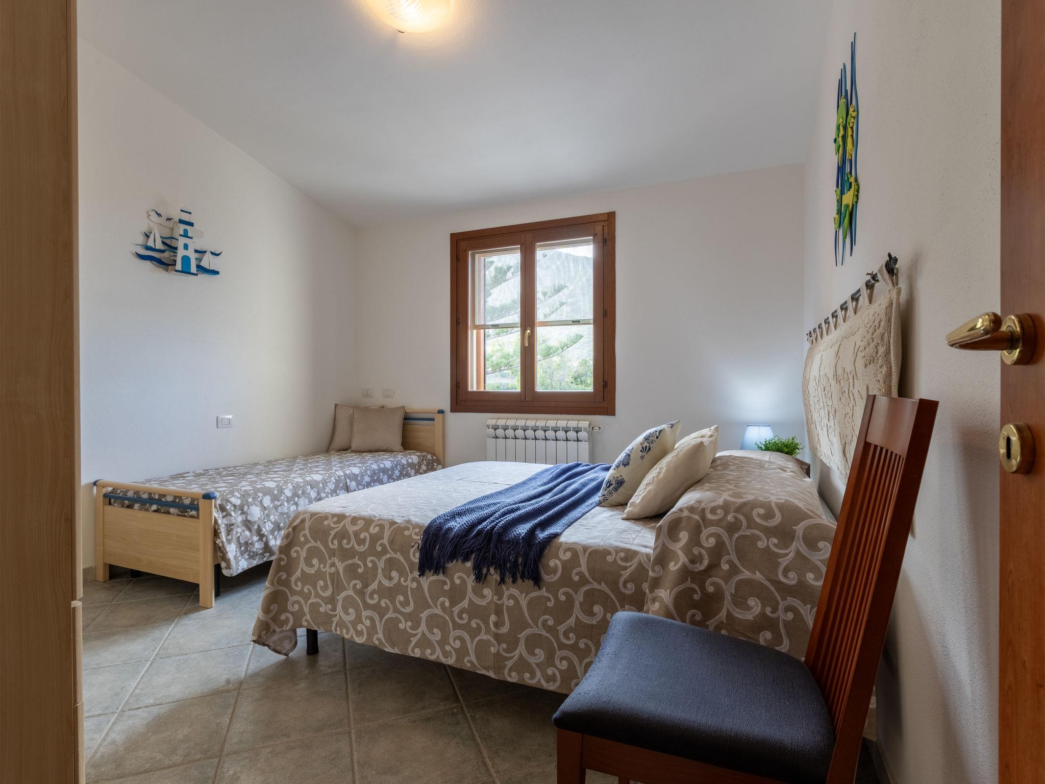 "Su Sguardu 'e su Mari", 3-room apartment 80 m2 on 2nd floor. Bright, comfortable furnishings: living/dining room with TV (flat screen). Exit to the terrace. 1 double bedroom with 1 bed and 1 double bed. 1 double bedroom with TV (flat screen). Open kitchen (5 hot plates, oven, dishwasher, toaster, kettle, microwave, electric coffee machine). Shower/bidet/WC. Air-conditioning, forced-air heating. Terrace roofed. Terrace furniture, sitting area. Beautiful view of the sea. Facilities: washing machine, safe, iron, mosquito net, hair dryer. Internet (WiFi, free). IT090079C2000R8512