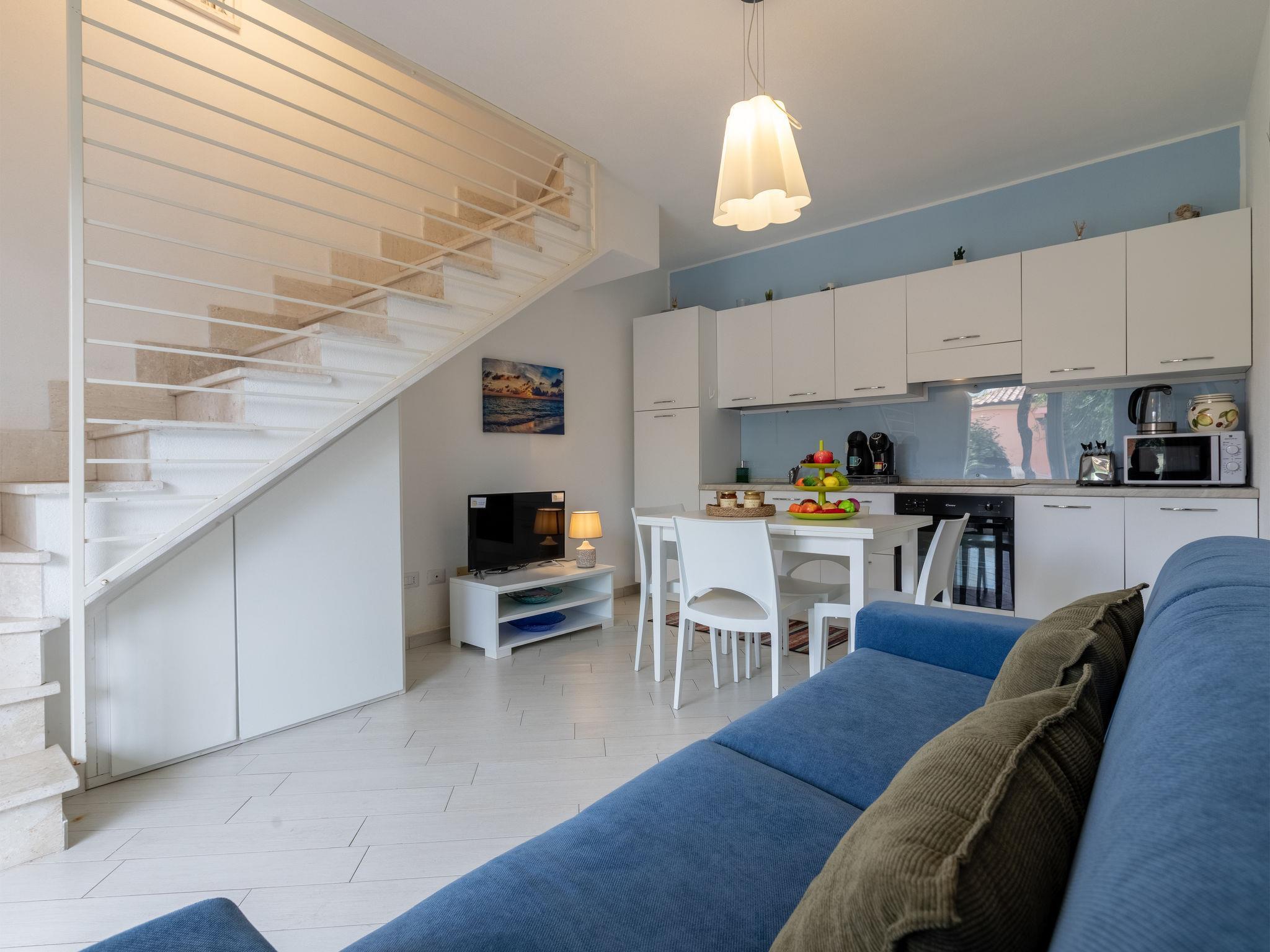 "Spritz Home", 2-room apartment 47 m2 on 2 levels, on the ground floor. Beautiful and tasteful furnishings: living/dining room with sliding door with 1 double sofabed and TV (flat screen). Exit to the garden. Kitchenette (oven, 4 induction hot plates, toaster, kettle, microwave, electric coffee machine). Upper floor: 1 double bedroom with panoramic window. Exit to the balcony. Shower/bidet/WC. Air-conditioning, boiler. Balcony furniture. Facilities: washing machine, iron, hair dryer. Internet (WiFi, free). Parking space n 33. Please note: suitable for families. Maximum 1 small pet/ dog allowed. Fire extinguisher. IT090082C2000Q8704