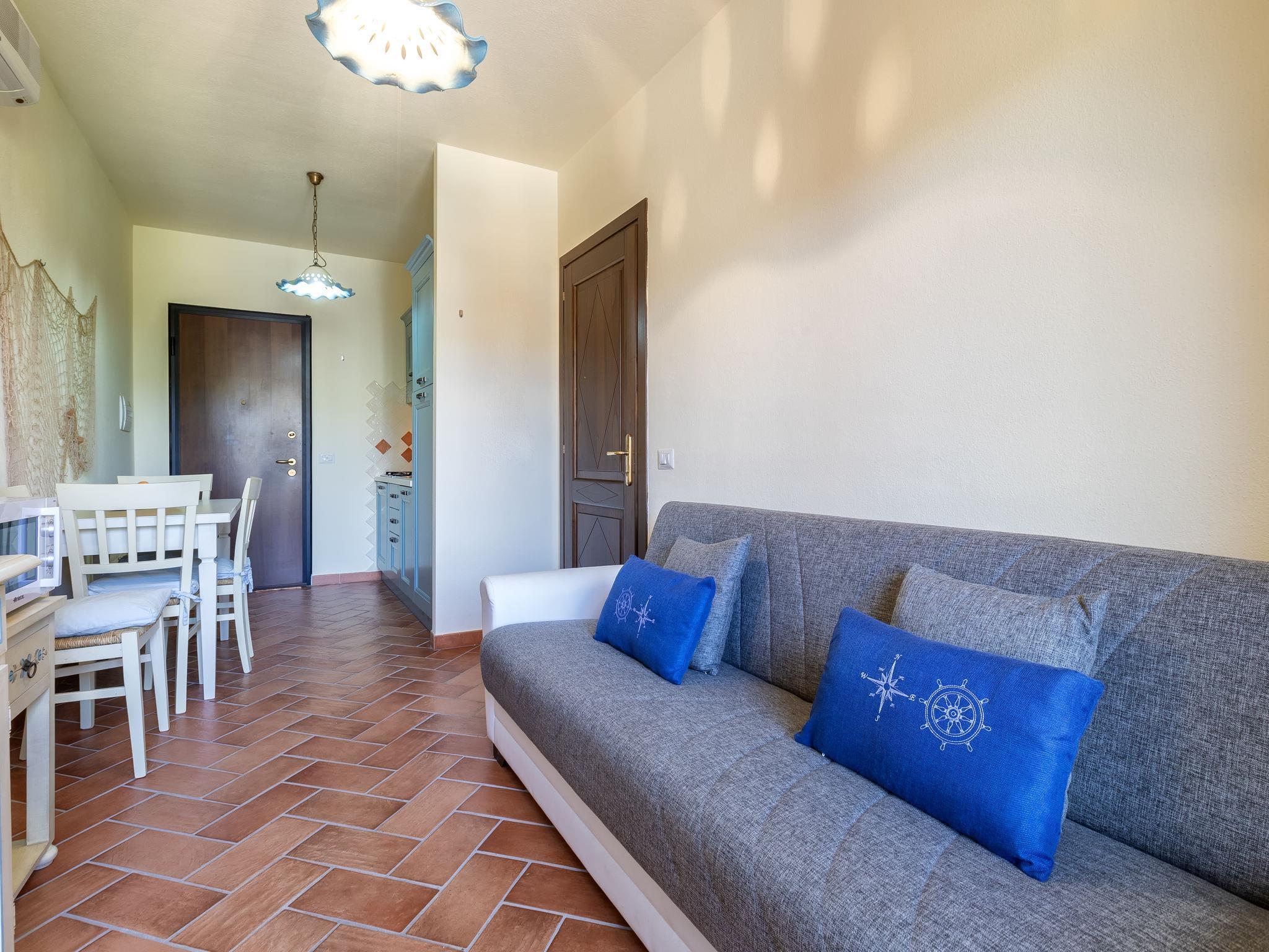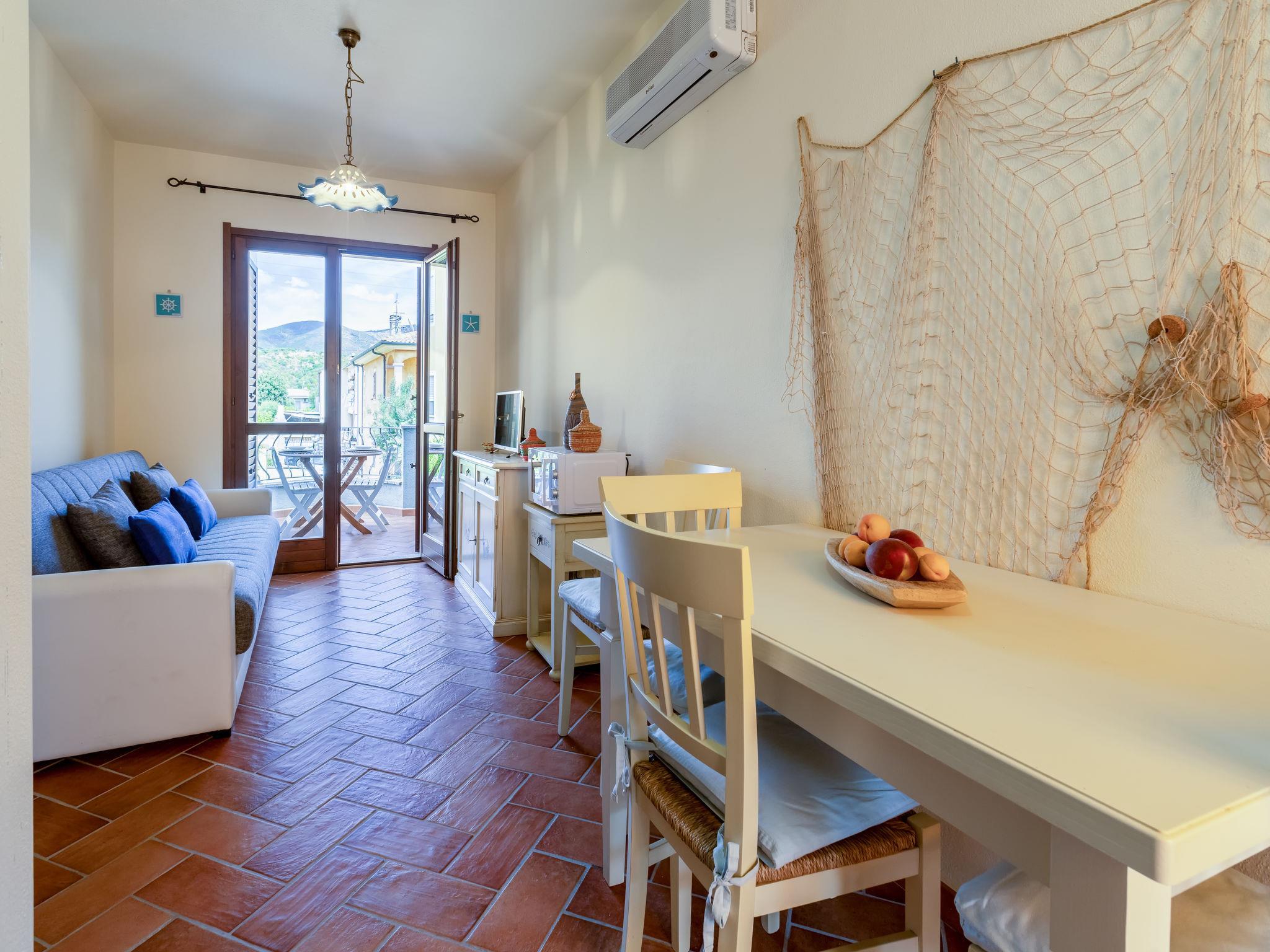 "Del Colle", 2-room apartment on 1st floor. Bright, tasteful and cosy furnishings: living/dining room with 1 sofabed, TV and flat screen. Exit to the terrace. 1 double bedroom, window onto the courtyard. Kitchenette (4 gas rings, toaster, kettle, microwave). Shower/bidet/WC. Air-conditioning. Small terrace. Terrace furniture. Beautiful view of the swimming pool and the countryside. Facilities: washing machine, iron, hair dryer. Parking space n 14 (1 car). Please note: suitable for families. Non-smokers only. Private entrance. IT090082C2000T8957