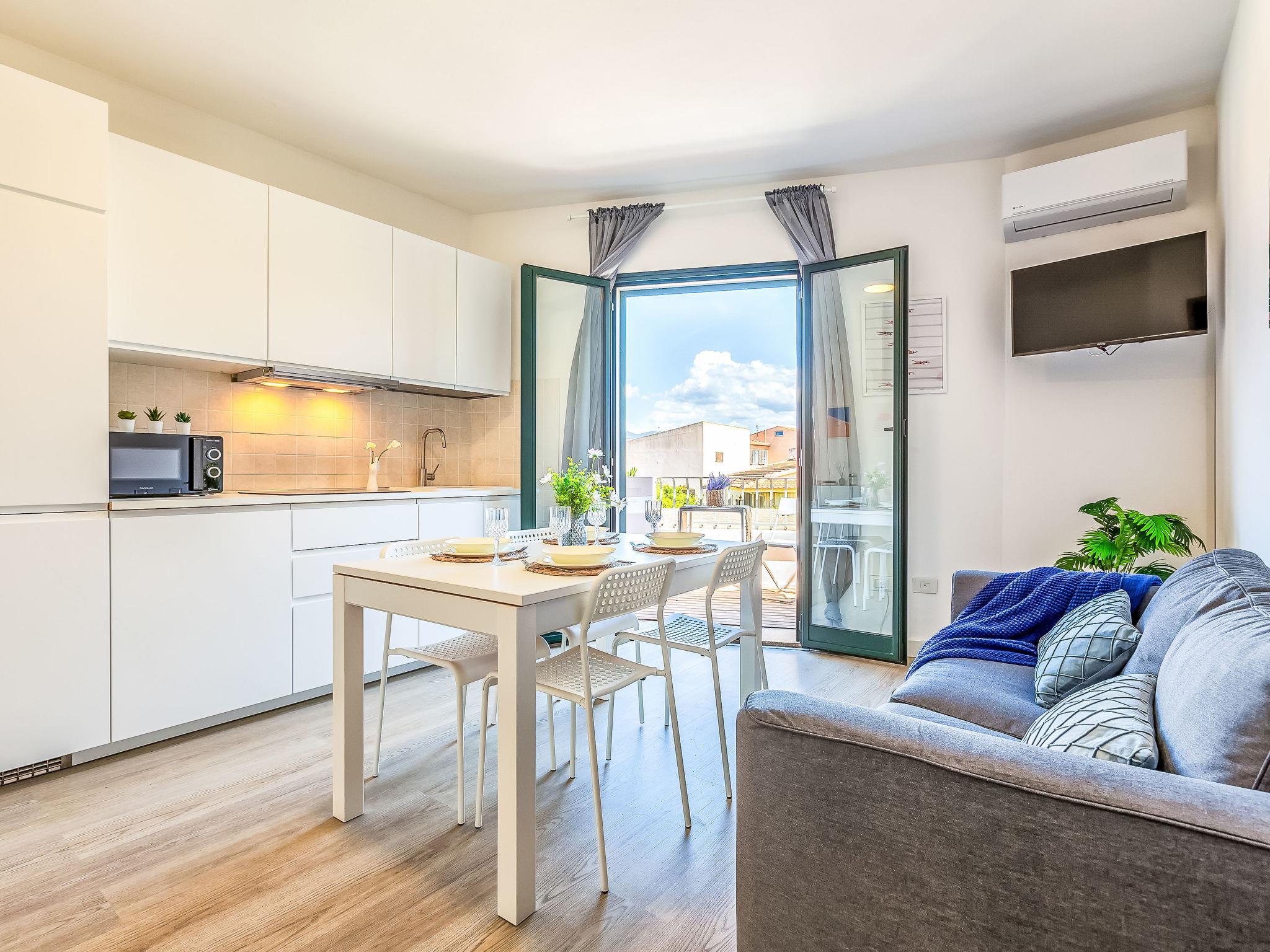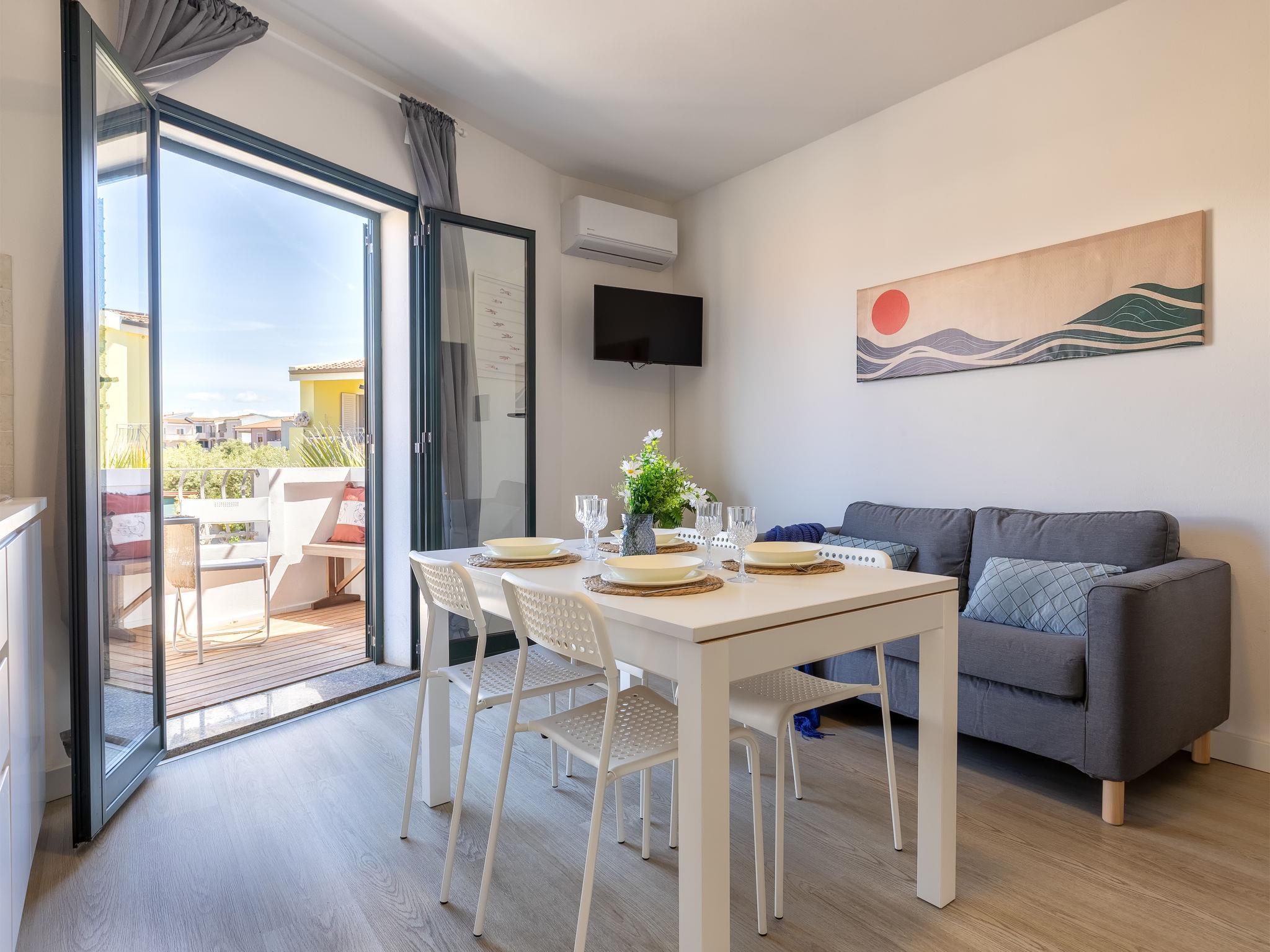 "Smeralda", 3-room apartment 58 m2 on 1st floor. Bright, renovated in 2025, comfortable and cosy furnishings: living/dining room. 1 double bedroom with air conditioning. 1 children's room with 2 beds and fan. Kitchenette (4 induction hot plates, kettle, microwave, electric coffee machine) with air conditioning. Exit to the balcony. Shower/bidet/WC. Boiler (40 litres). Balcony furniture. Panoramic view. Facilities: iron. Parking space n 14 (1 car). Please note: suitable for families. Non-smokers only. IT090079C2000T2283