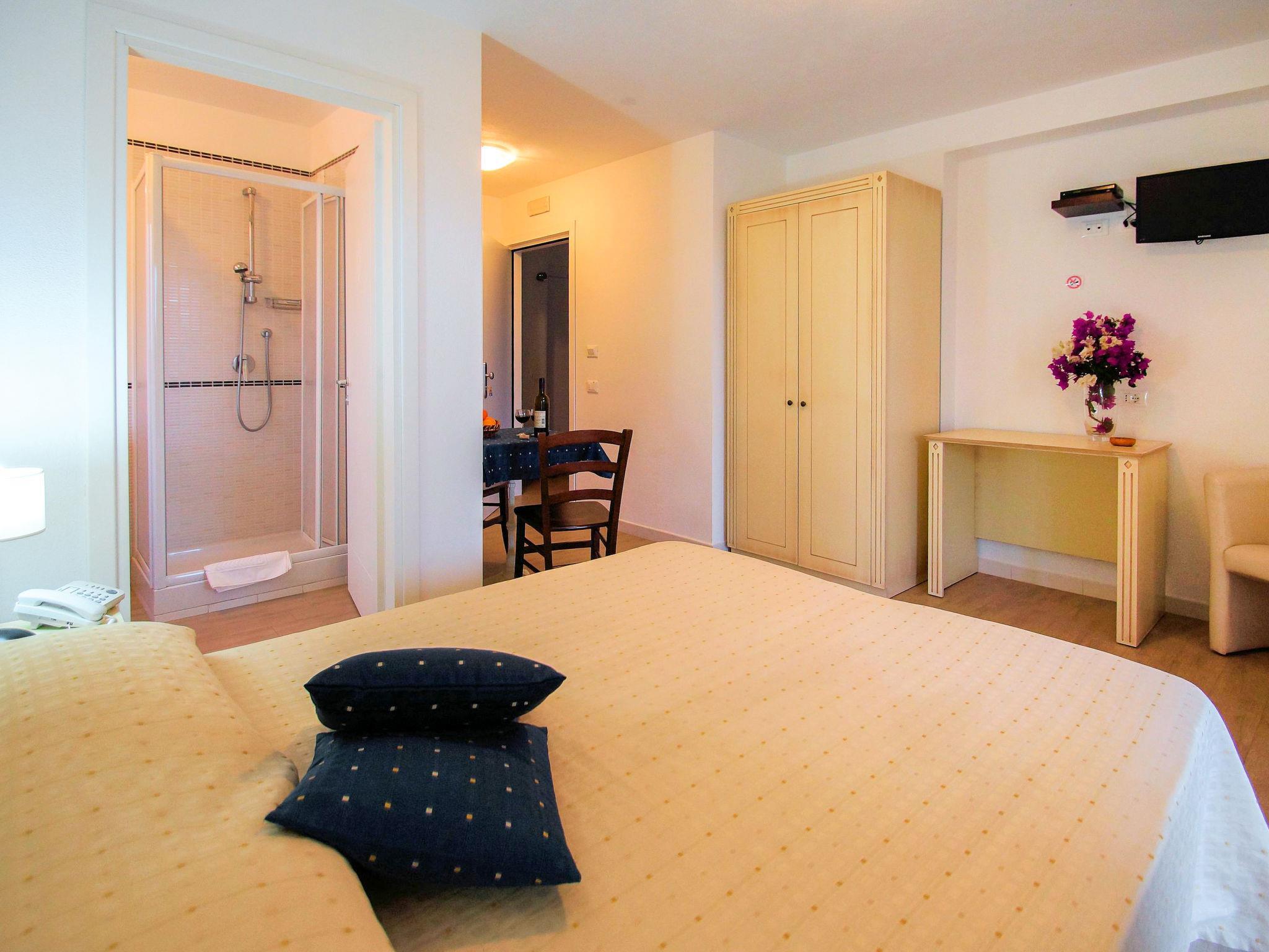 "K Plus", 3-room apartment 60 m2, on the ground floor. Practical and comfortable furnishings: living/dining room with satellite TV. Exit to the terrace. 2 double bedrooms. Kitchen-/living room (4 hot plates, oven, freezer) with dining table. Bath/bidet/WC, shower/bidet/WC. No heating option. Terrace 16 m2. Terrace furniture. Facilities: washing machine, iron. Maximum 1 pet/ dog allowed. IT090079B4000E2224