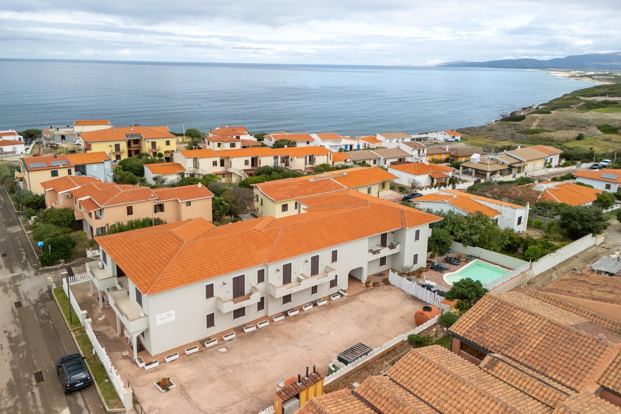 Kun en kort gåtur på 150 meter fra stranden indfanger denne charmerende sardiske lejlighed essensen af et afslappet kystliv. Omgivet af havets duft og solens varme er det den slags sted, hvor morgenen begynder med en svømmetur, eftermiddagen glider forbi ved poolen, og aftenen slutter med lyden af blide bølger og godt selskab. Lejligheden er designet til komfort og enkelhed og har et hyggeligt soveværelse med dobbeltseng, et værelse med to enkeltsenge og en dobbelt sovesofa i opholdsstuen, ideel til familier eller små grupper. Uanset om du bor i stueetagen eller på første sal, finder du alt, hvad du behøver for et ubekymret ophold: aircondition, et veludstyret køkken og masser af plads til at slappe af efter en dag udendørs. Boligen tilbyder to indbydende swimmingpools, frodige fælles haver med grillpladser, Wi-Fi i fællesområderne og privat parkering for din bekvemmelighed. Alt hvad du behøver er i nærheden, og der er en bar, restaurant, marked og pizzeria kun få skridt væk, og den smukke landsby La Ciaccia ligger 2,5 km fra Valledoria og kan nås til fods eller på cykel langs en naturskøn kyststi. Tilbring dine dage med at udforske Sardiniens gyldne strande, fra de livlige kyster i San Pietro a Mare, perfekt til kitesurfing eller paddleboarding, til de fredfyldte varme kilder i Casteldoria. Gå en tur gennem Castelsardos middelalderlige charme, eller nyd den betagende udsigt i Badesi. Uanset om du vandrer, sejler eller nyder lokale specialiteter som Culurgiones og Vermentino, er dette sted som skabt til øjeblikke, der varer længe efter solnedgang.