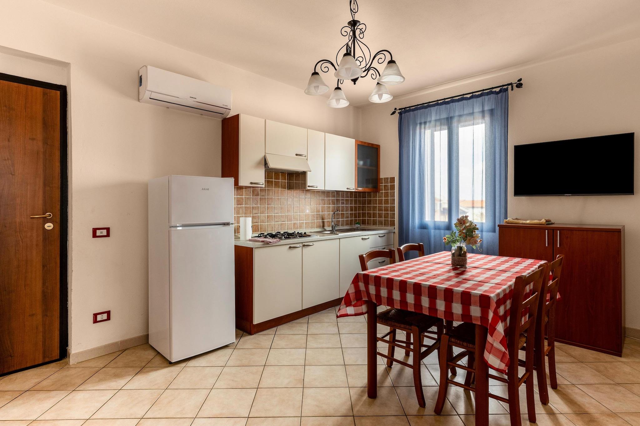 Vågn op til havets duft og den bløde susen af bølger – denne indbydende sardiske lejlighed er den slags sted, hvor ferieminder hænger ved længe efter, du er taget afsted. Den er perfekt placeret kun 150 meter fra stranden og tilbyder en behagelig blanding af komfort og kystcharme. I boligen finder du to forfriskende swimmingpools, fælles haver med grillfaciliteter, Wi-Fi i fællesområder og privat parkering, hvilket gør den ideel til et afslappet og ubekymret ophold. Indenfor udstråler lejligheden en varm og hjemlig atmosfære og er designet til op til fire gæster. Den har en lys stue med en komfortabel dobbeltsovesofa, et veludstyret køkken, et hyggeligt soveværelse med dobbeltseng og et andet med to enkeltsenge – perfekt til familier eller venner, der rejser sammen. Aircondition holder rummet behageligt, mens moderne bekvemmeligheder som køleskab med fryser og gaskomfur gør dagligdagen ubesværet. Beliggende på første sal tilbyder den et fredeligt tilflugtssted at slappe af efter solrige dage ved havet. Nabolaget indfanger essensen af Sardinien – roligt, venligt og fuldt af liv. Inden for 50 meter finder du en bar, restaurant og et marked til hverdagens fornødenheder, mens den nærliggende landsby La Ciaccia forbinder Valledoria via en naturskøn sti, ideel til gåture eller cykelture. Tilbring dine dage på gyldne strande, prøv vandsport ved San Pietro a Mare, eller udforsk charmerende kystlandsbyer som Castelsardo og Badesi. Med natur, kultur og havet lige uden for døren lover denne lejlighed den perfekte balance mellem ro og eventyr.