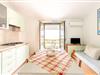 Badet i sardinsk solskin tilbyder denne moderne lejlighed på første sal i Valledoria et friskt og afslappende tilflugtssted kun få minutter fra havet. Med et moderne design og en indbydende atmosfære er det den perfekte blanding af komfort og kystcharme - en ideel tilflugtssted for par eller små familier, der søger både ro og bekvemmelighed. Træd indenfor og find en lys stue med en dobbelt sovesofa, tv og spiseplads - perfekt til at slappe af efter en dag på stranden. Det åbne køkken er elegant og fuldt udstyret med kogeplader, emhætte, køleskab med fryser og espressomaskine, der inviterer dig til at nyde rolige morgener med frisk kaffe eller hyggelige middage derhjemme. Et roligt soveværelse med en dobbeltseng og et veludstyret badeværelse fuldender rummet, mens aircondition holder hvert hjørne køligt og behageligt. Den private balkon tilføjer et strejf af afslapning - et ideelt sted at nippe til vin, mens aftenlyset falmer. Udenfor inviterer en fælles have med møbler og grillfaciliteter til afslappede eftermiddage under middelhavshimmelen. Køl dig ned i en af de to fælles swimmingpools, der er åbne fra maj til september, og nyd den pulserende, men fredelige atmosfære i Valledoria. Uanset om du udforsker de nærliggende strande, smager på lokalt sardisk køkken eller blot slapper af ved poolen, lover denne lejlighed et moderne og ubekymret ophold i en af øens mest charmerende kystbyer.