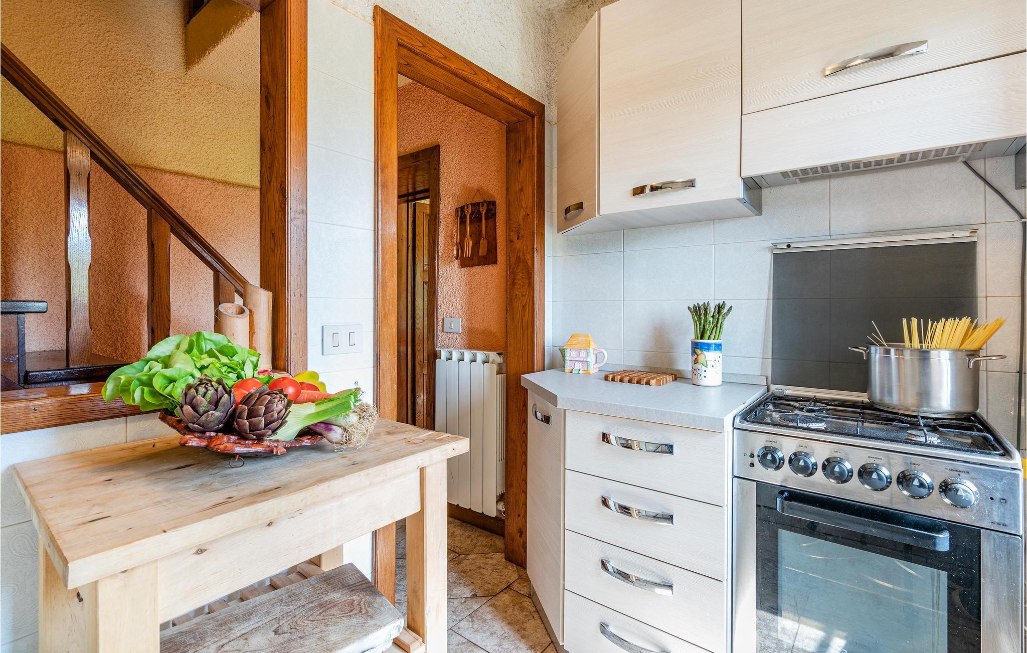 Oplev et afslappende ophold i dette enkle, men funktionelle feriehus i udkanten af Garfagnana-området, nær den charmerende landsby Vallico Sopra. Den rummelige bolig er ideel til en stor familie, der ønsker at udforske det landlige Italien. Huset byder på en enkel, men hyggelig indretning med rustikke træmøbler, lyse vægge og traditionelle dekorationer, der skaber en behagelig atmosfære. I opholdsstuen kan I nyde fælles måltider ved det store spisebord eller slappe af i de komfortable siddepladser. Køkkenet har de nødvendige faciliteter til selvforplejning.
