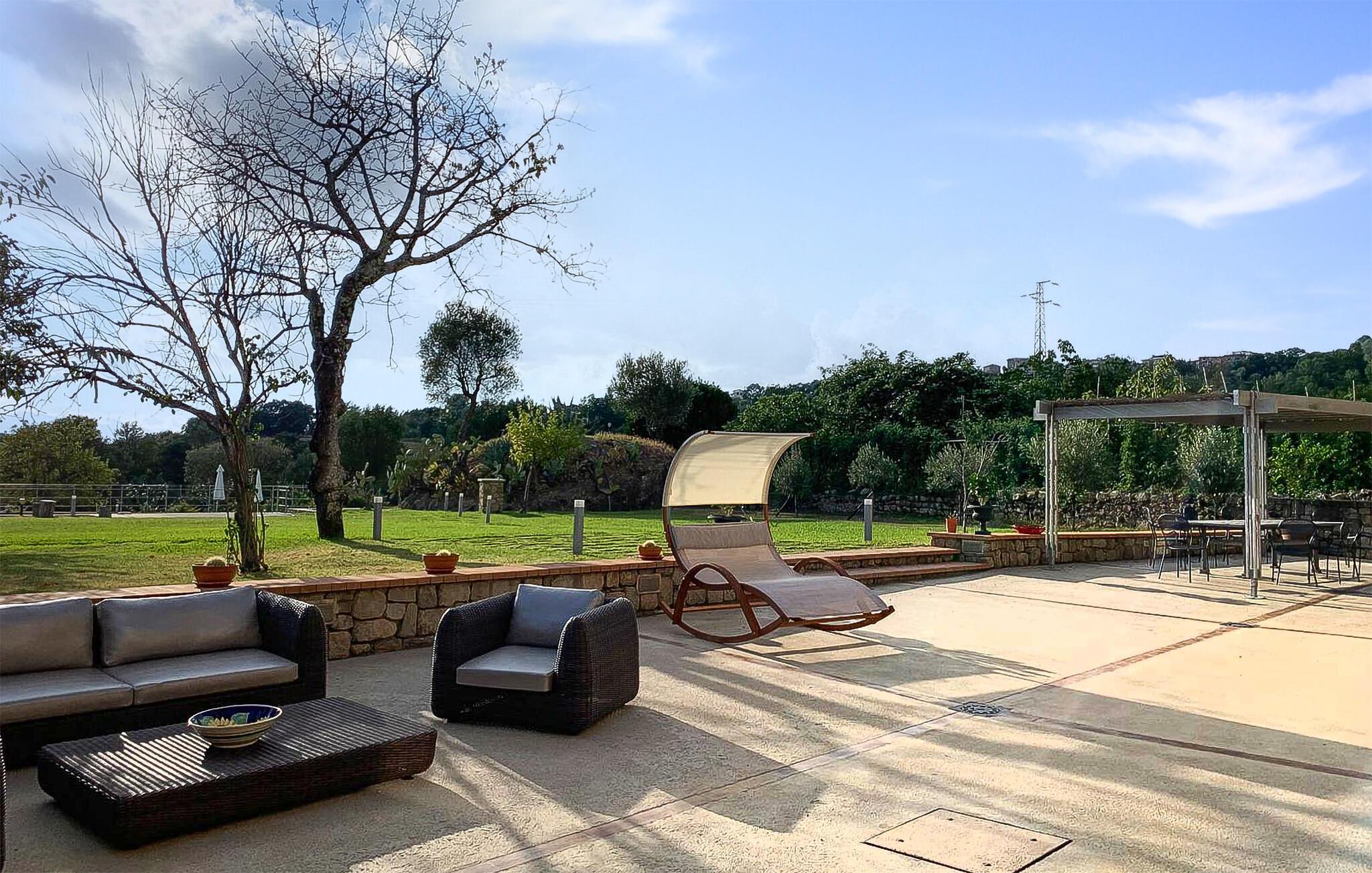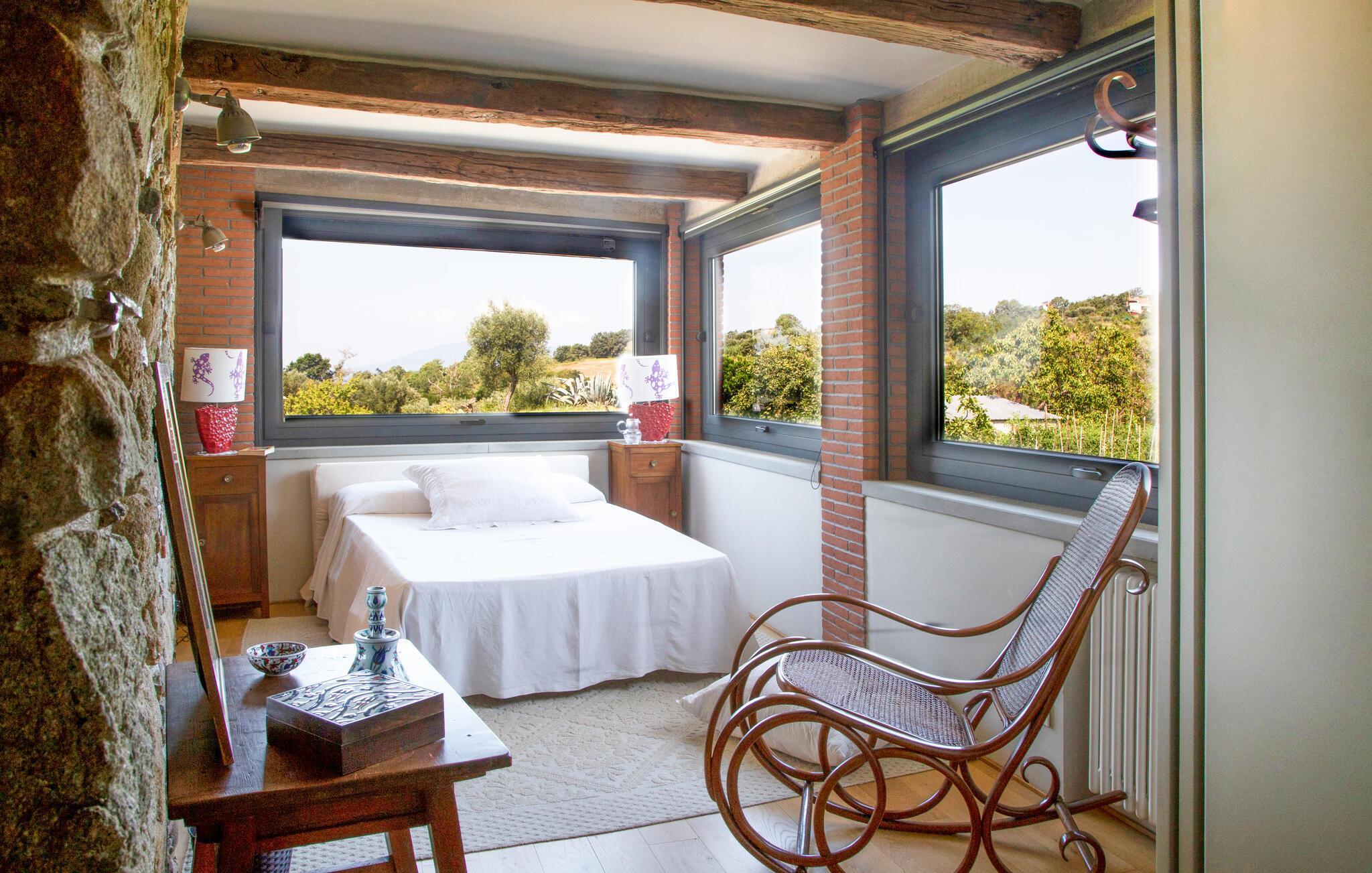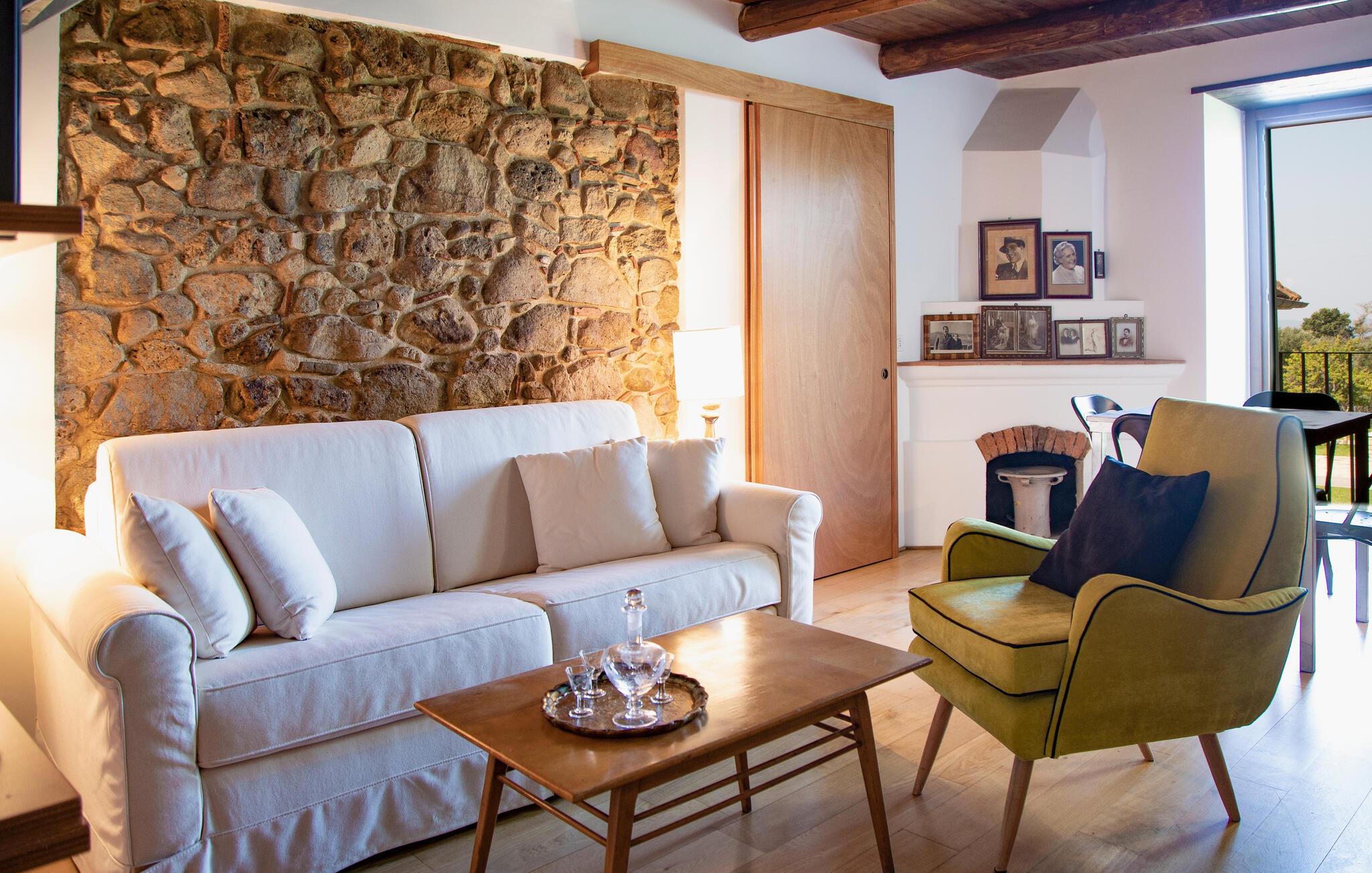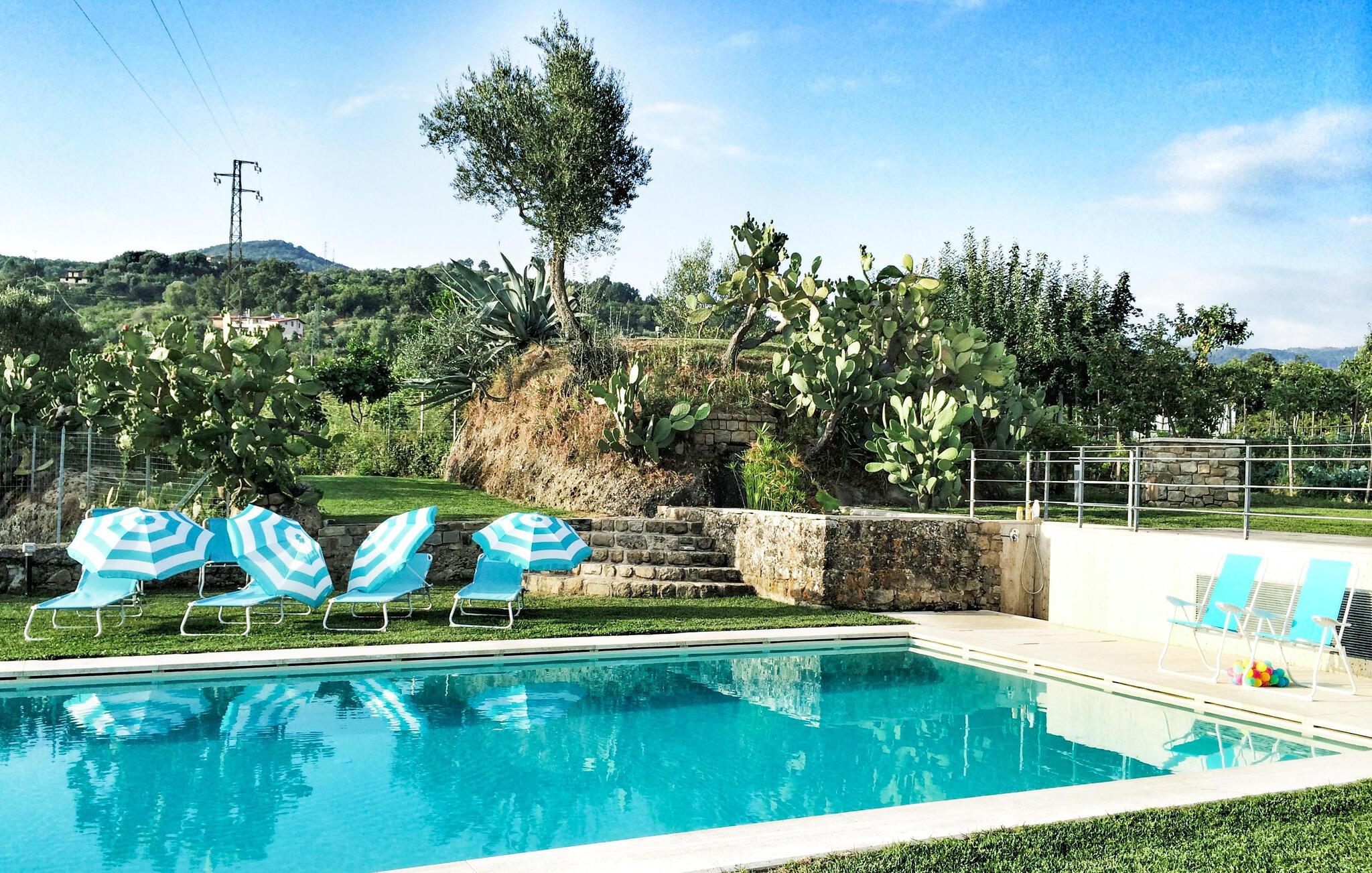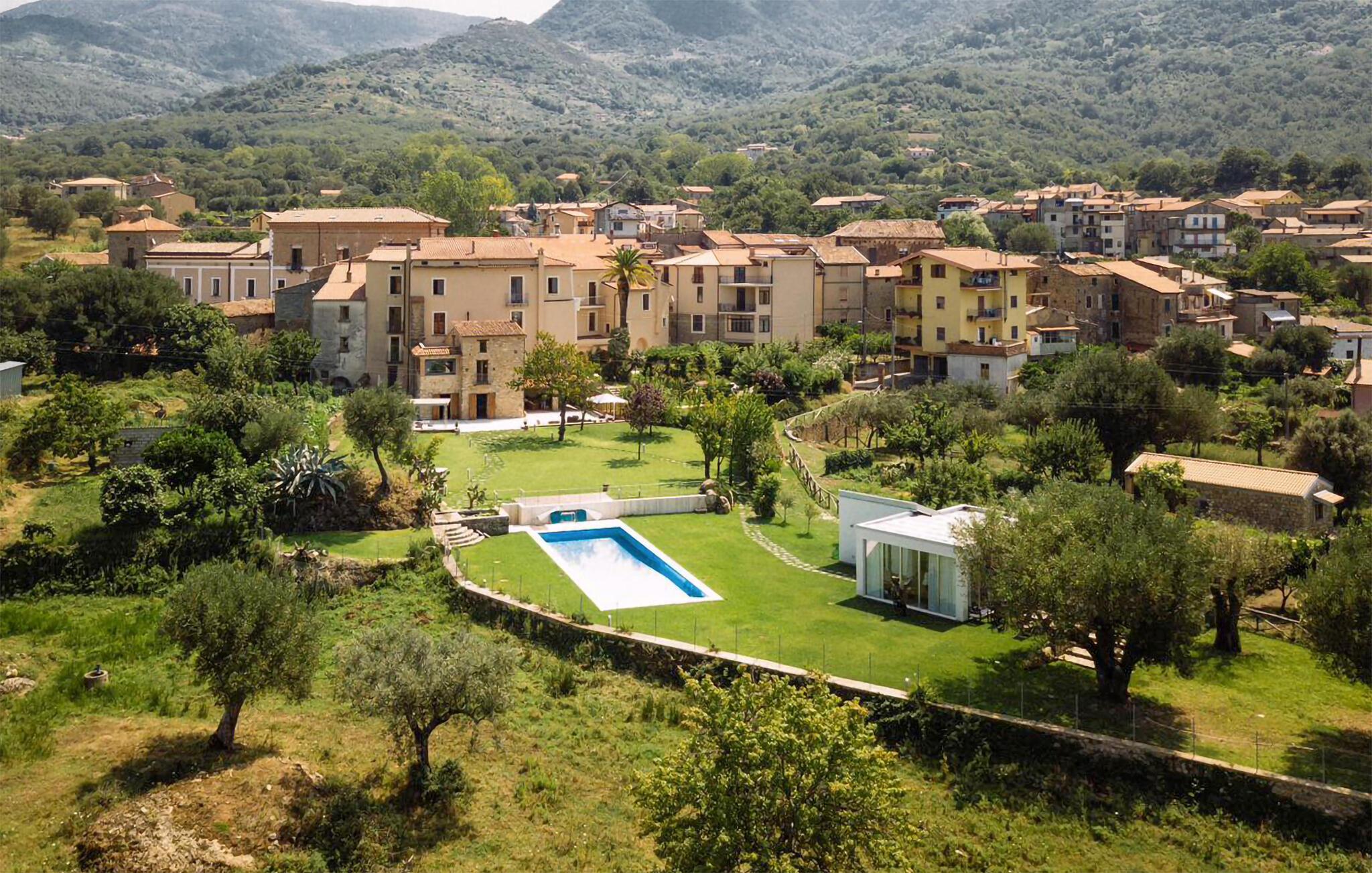 Dette unikke feriehus i Vallo della Lucania består af et traditionelt stenhus og et moderne anneks. I hovedhuset giver solide træbjælker og komfortable møbler autentisk charme, mens det lyse sidehus med store vinduesfronter byder på en nutidig atmosfære. Den store have med pool er en grøn oase, der lægger op til at slappe af og blive hængende. Uanset om det er en svømmetur i poolen, en gåtur gennem haven eller en middag under åben himmel – jeres ferie bliver en særlig oplevelse her.