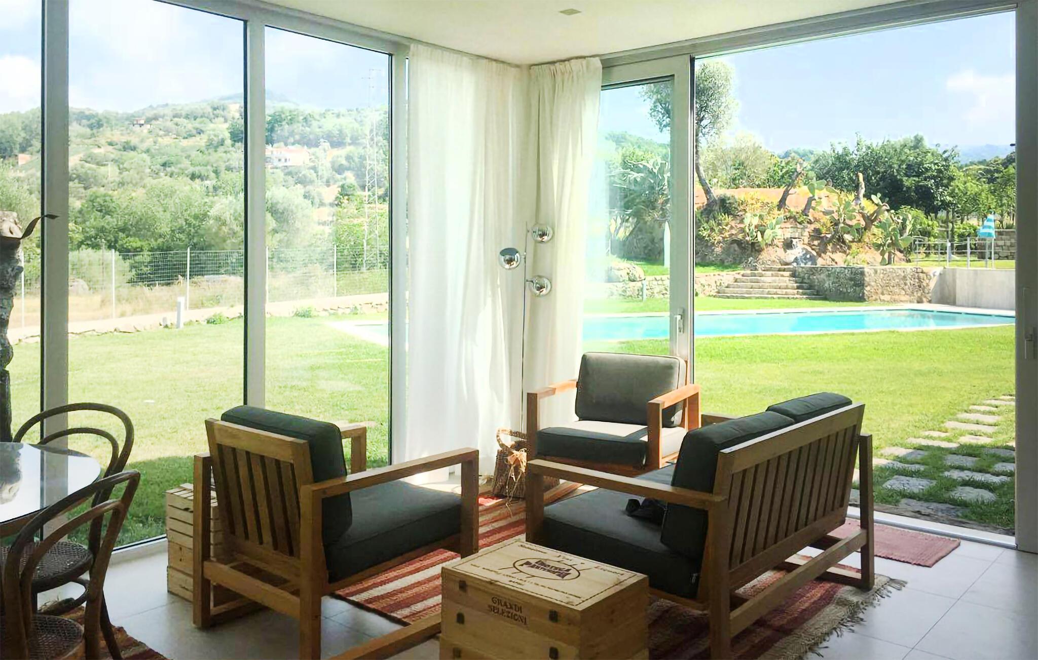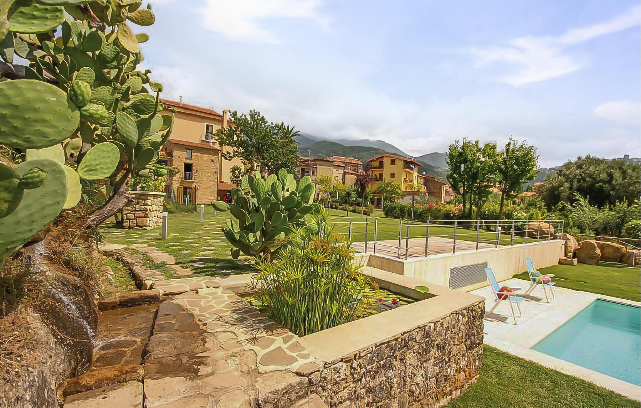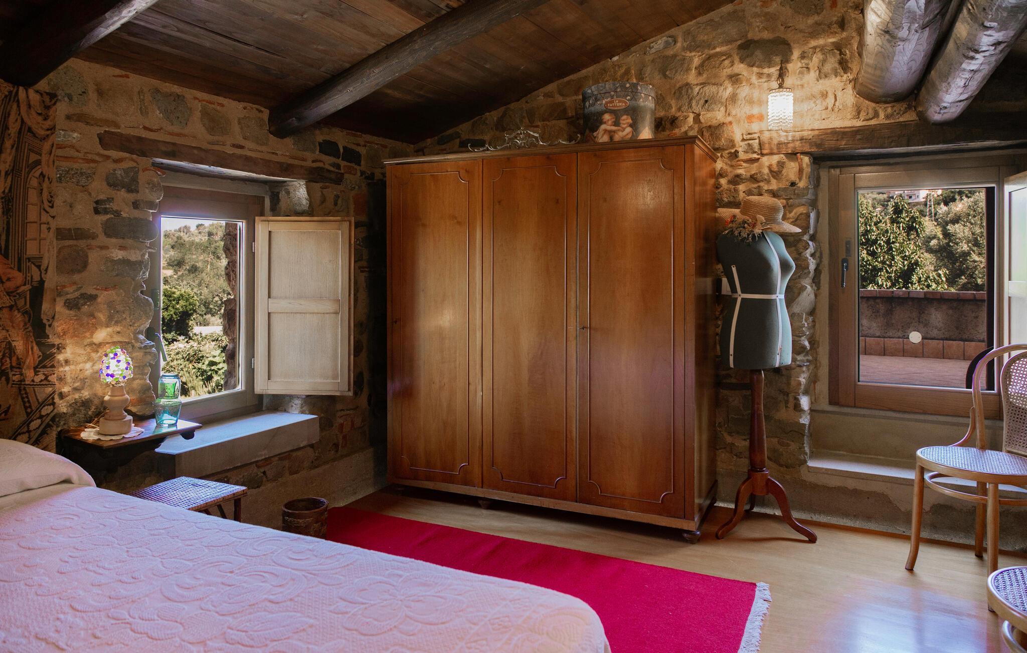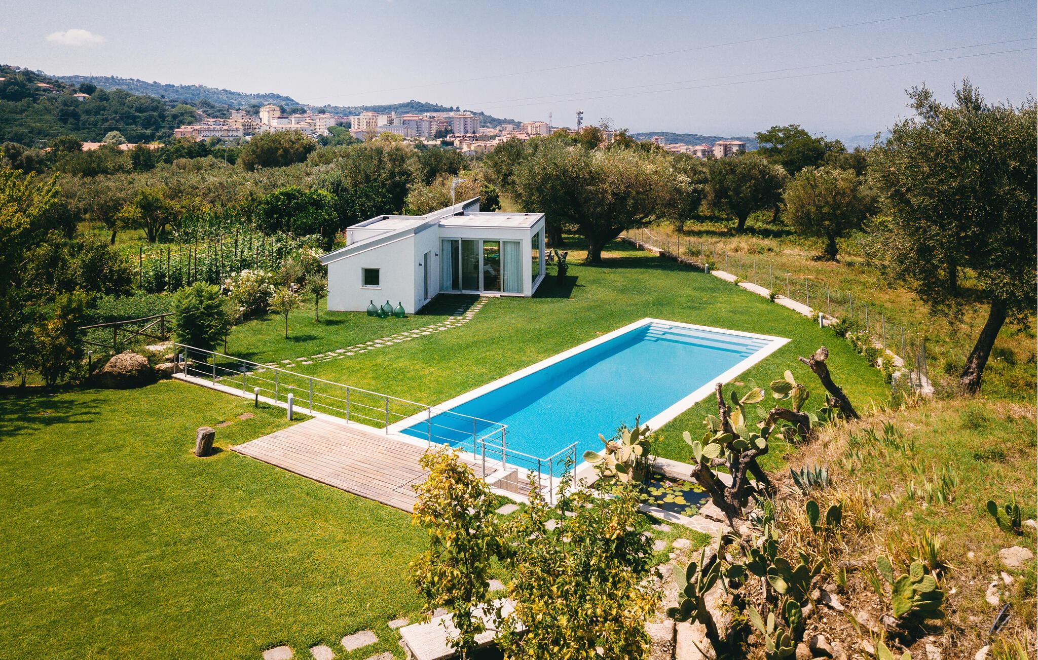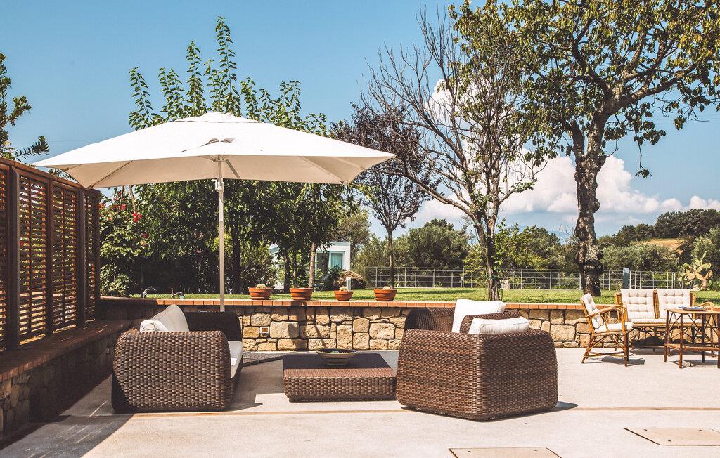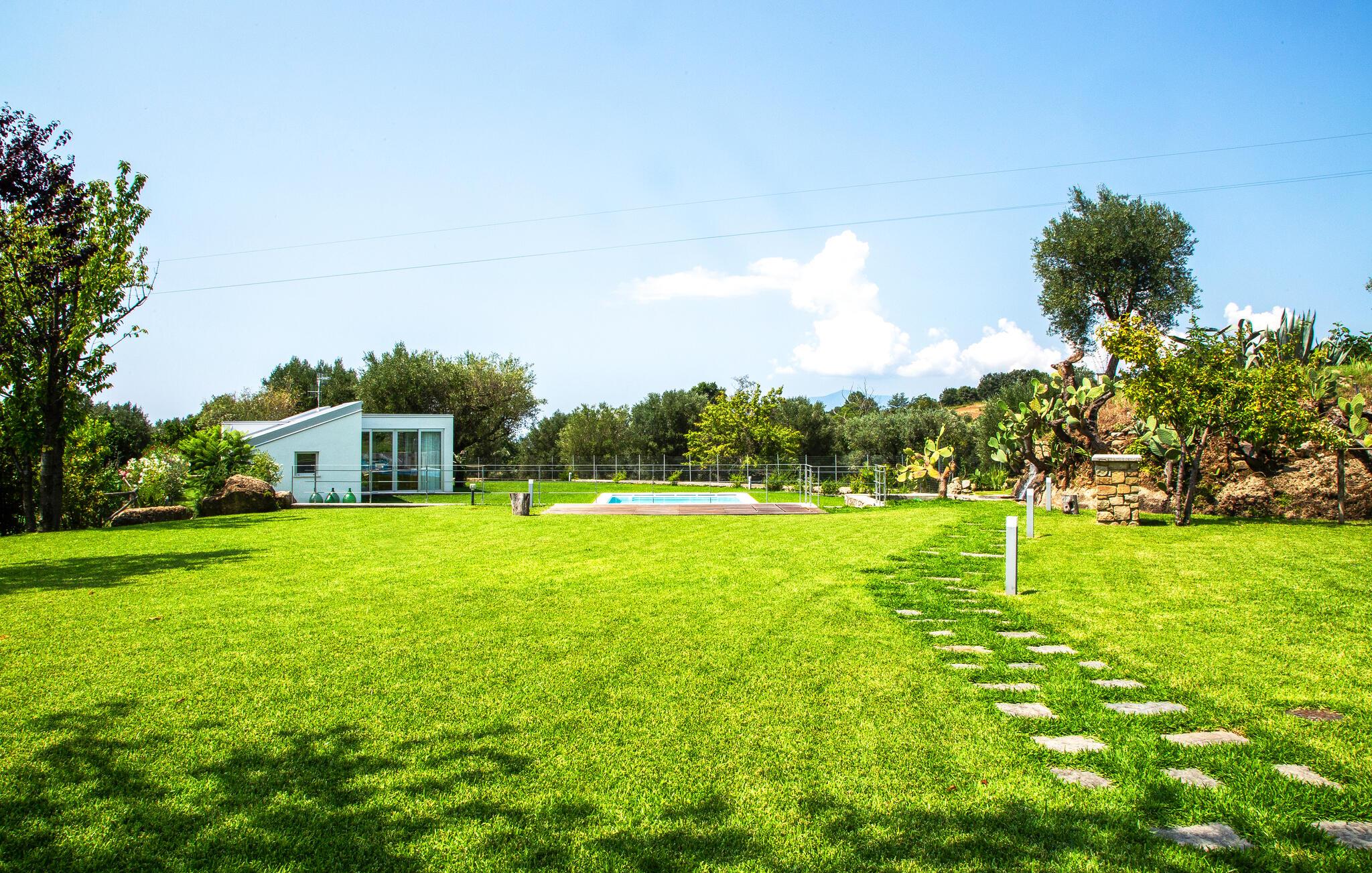 Dette unikke feriehus i Vallo della Lucania består af et traditionelt stenhus og et moderne anneks. I hovedhuset giver solide træbjælker og komfortable møbler autentisk charme, mens det lyse sidehus med store vinduesfronter byder på en nutidig atmosfære. Den store have med pool er en grøn oase, der lægger op til at slappe af og blive hængende. Uanset om det er en svømmetur i poolen, en gåtur gennem haven eller en middag under åben himmel – jeres ferie bliver en særlig oplevelse her.
