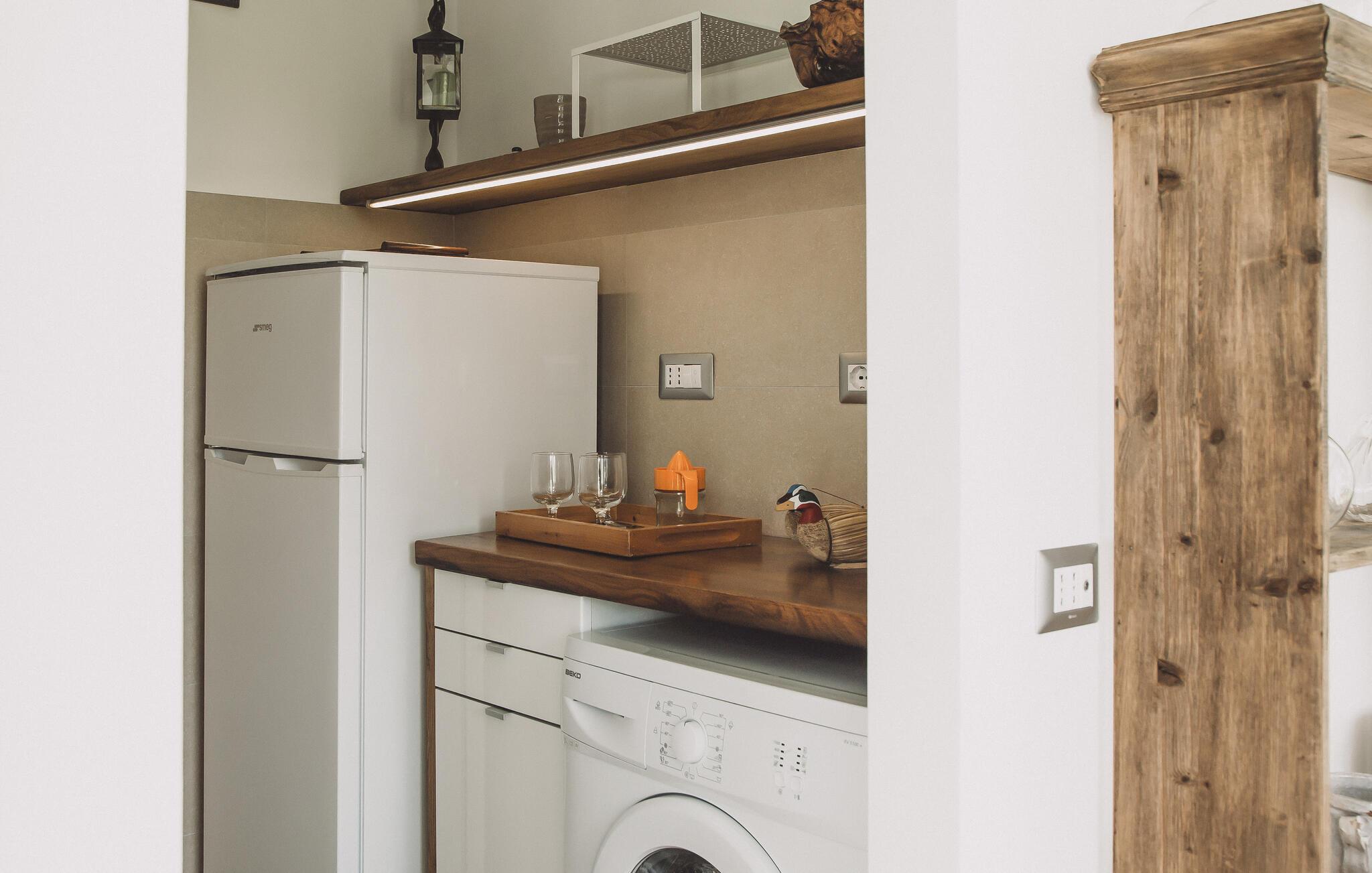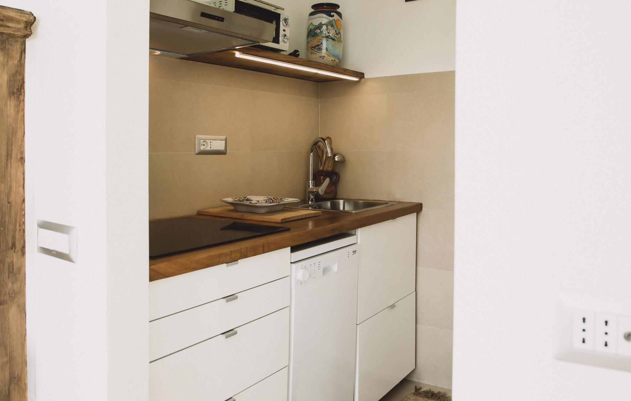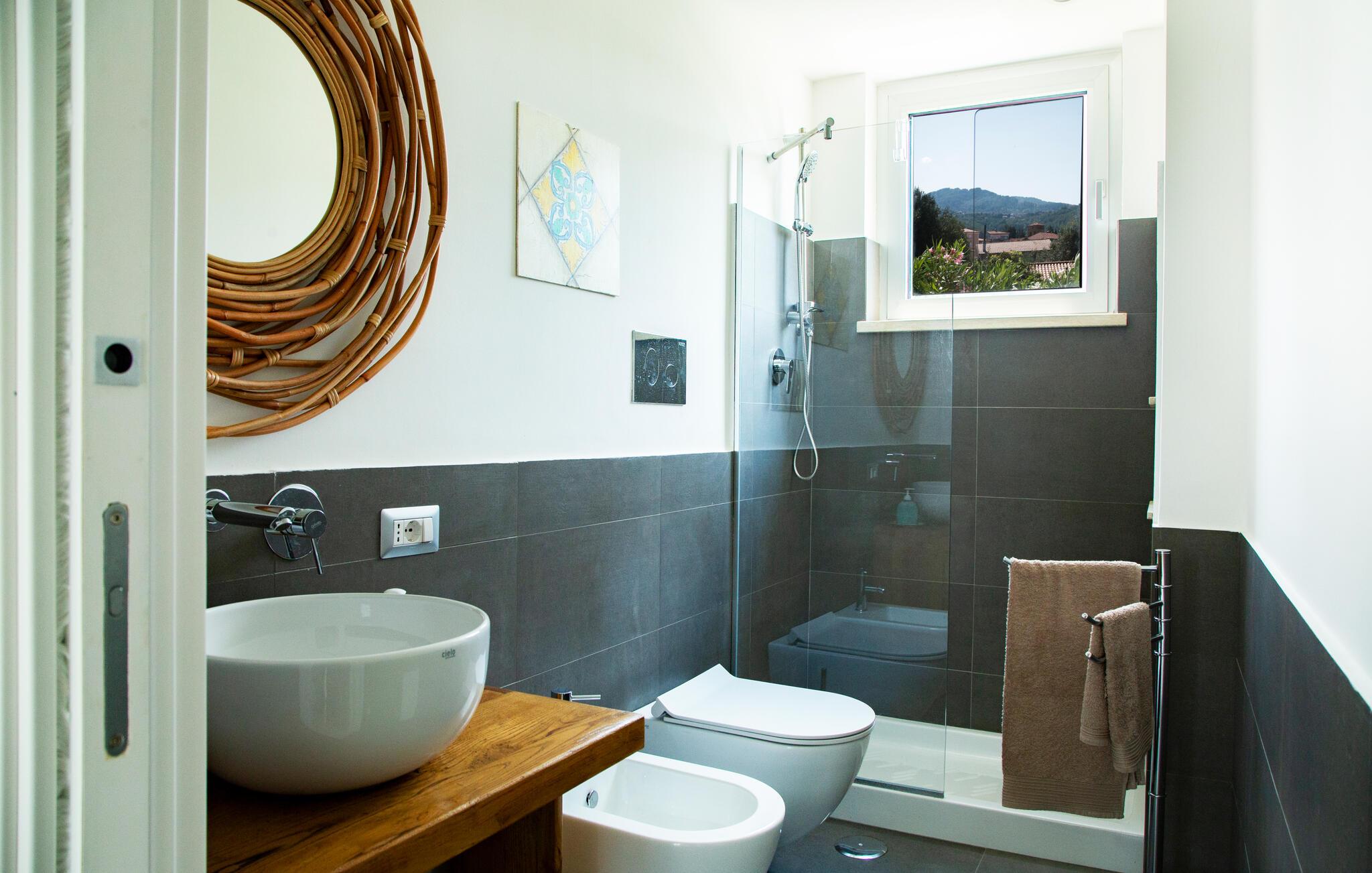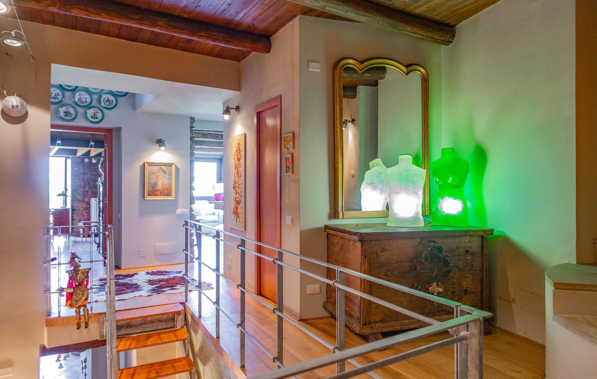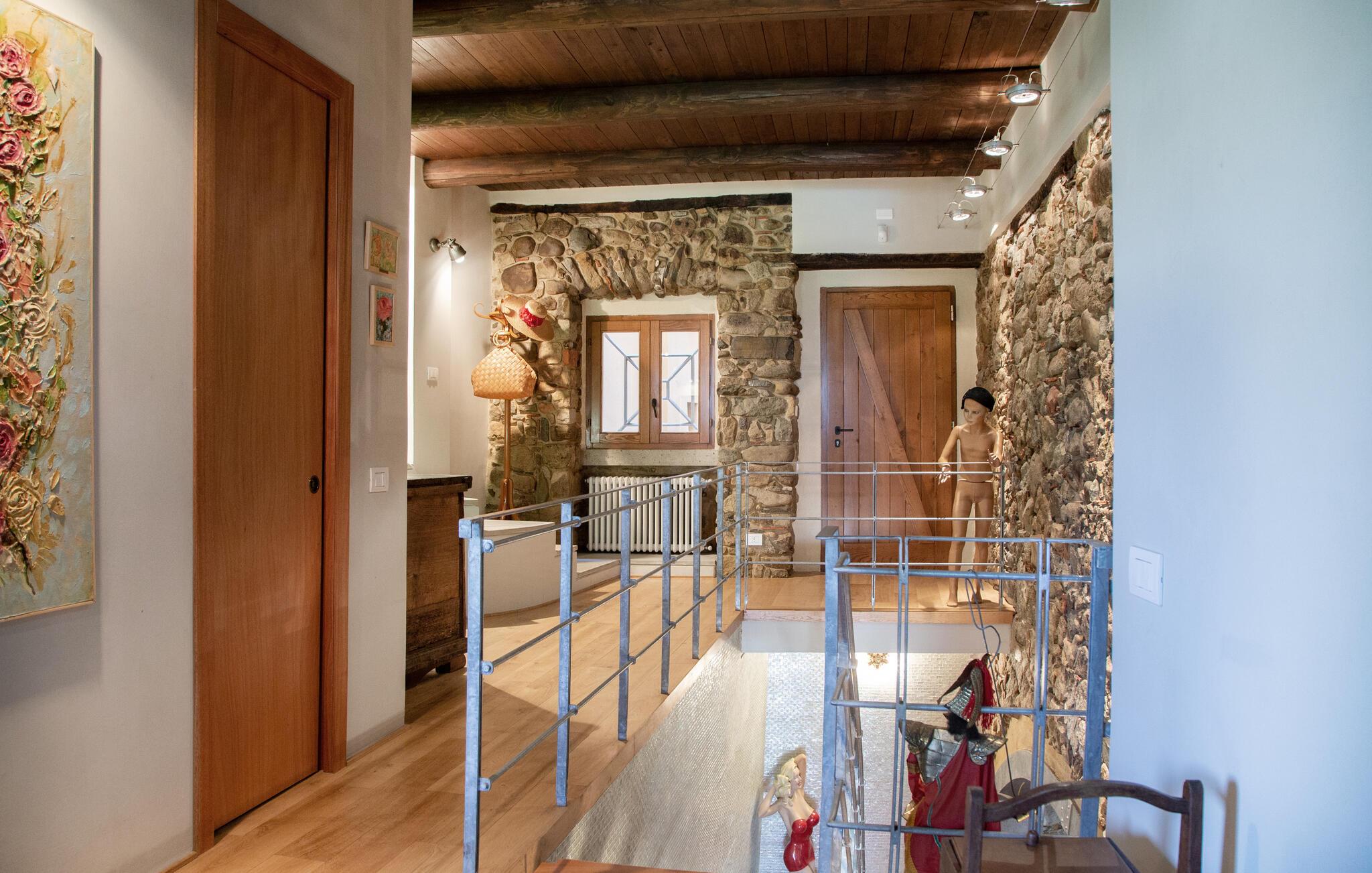 Dette unikke feriehus i Vallo della Lucania består af et traditionelt stenhus og et moderne anneks. I hovedhuset giver solide træbjælker og komfortable møbler autentisk charme, mens det lyse sidehus med store vinduesfronter byder på en nutidig atmosfære. Den store have med pool er en grøn oase, der lægger op til at slappe af og blive hængende. Uanset om det er en svømmetur i poolen, en gåtur gennem haven eller en middag under åben himmel – jeres ferie bliver en særlig oplevelse her.