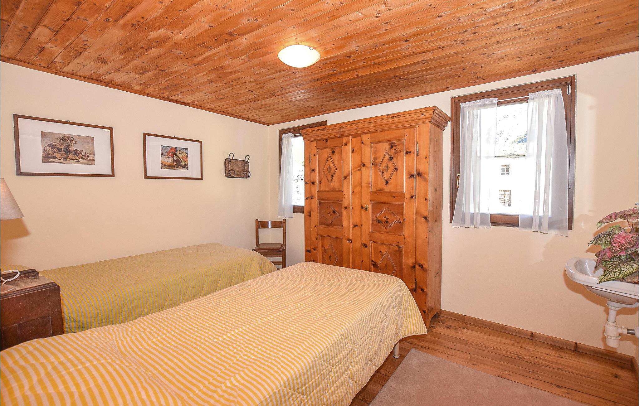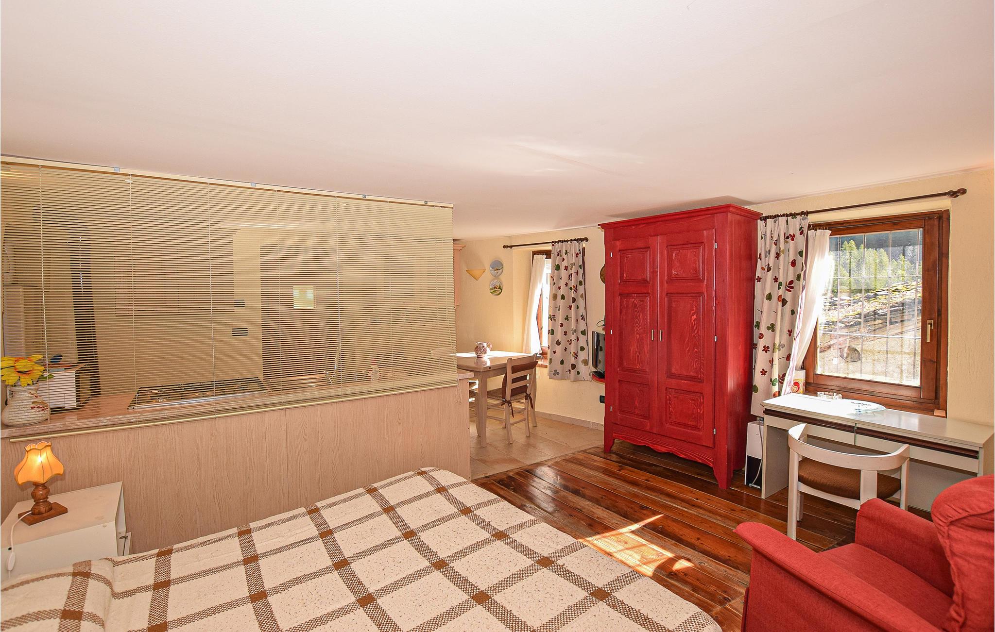 Denne lejlighed i Valsavarenche består af et stort åbent område i stueetagen med opholdsstue med tekøkken, soveplads med dobbeltseng og badeværelse med bruser i kælderen (badeværelset har ingen dør). Med adgang af udendørs trappe, ligger soveværelset med to senge. Valsavaranche er en smal dal (24 km lang) mellem skovklædte skråninger domineret af naturens majestætiske amfiteater i Gran Paradiso. Et tæt netværk af stier, mange anlagt under Savoyerne, er dejlige til lange vandreture. Landsbyerne Nex og Tignet har bevaret områdets karakteristiske alpine arkitektur fra slutningen af middelalderen. Skiområdet Valsavaranche er ideelt til begyndere og børnefamilier, det ligger 2 km væk, de berømte Courmayeur-skisportssteder ligger kun 42 km væk, og La Thuille ligger 49 km væk. Aosta-dalen er en region rig på kunst og kultur.