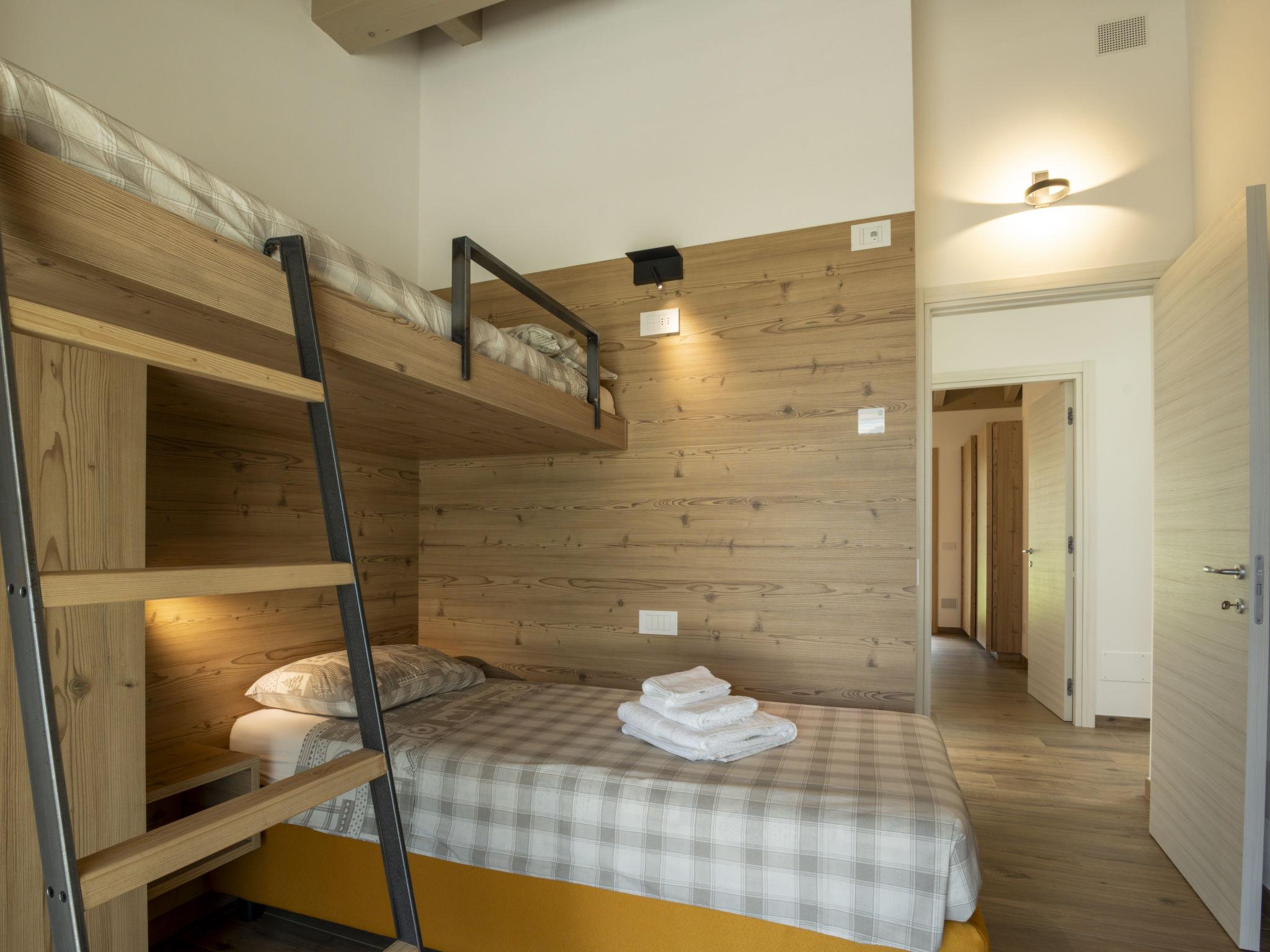 "Guarnelle House 2", 4-room semi-detached house 100 m2 on 2 levels. Spacious and bright, comfortable and beautiful furnishings: large living/dining room with sliding door, panoramic window with 1 double sofabed, dining table and TV. Exit to the garden. Kitchenette (dishwasher, 4 induction hot plates, toaster, kettle, microwave, freezer). Bathroom. Upper floor: 1 room with sloping ceilings with 1 x 2 bunk beds. Exit to the terrace. 1 room with sloping ceilings with 1 x 2 bunk beds. Exit to the terrace. 1 double bedroom. Exit to the balcony. Shower/bidet/WC. Heating, air-conditioning. Balcony, large terrace, garden, lawn. Terrace furniture, balcony furniture, barbecue. View of the mountains and the valley. Facilities: washing machine, children's high chair, baby cot, hair dryer. Internet (WiFi, free). Please note: suitable for families. Non-smoking house. Maximum 1 pet/ dog allowed. Private entrance. IT014008C2JOMQXHOG