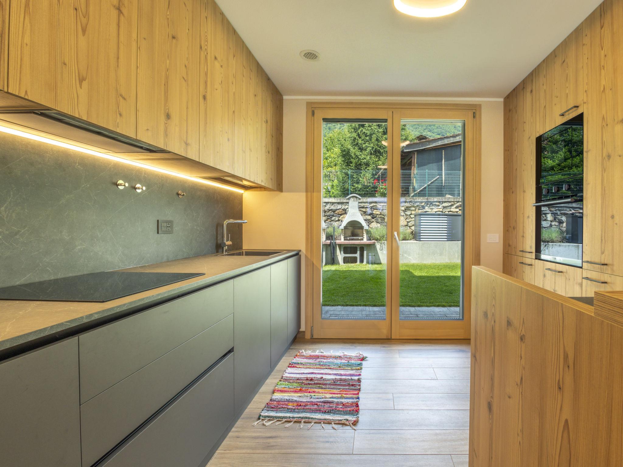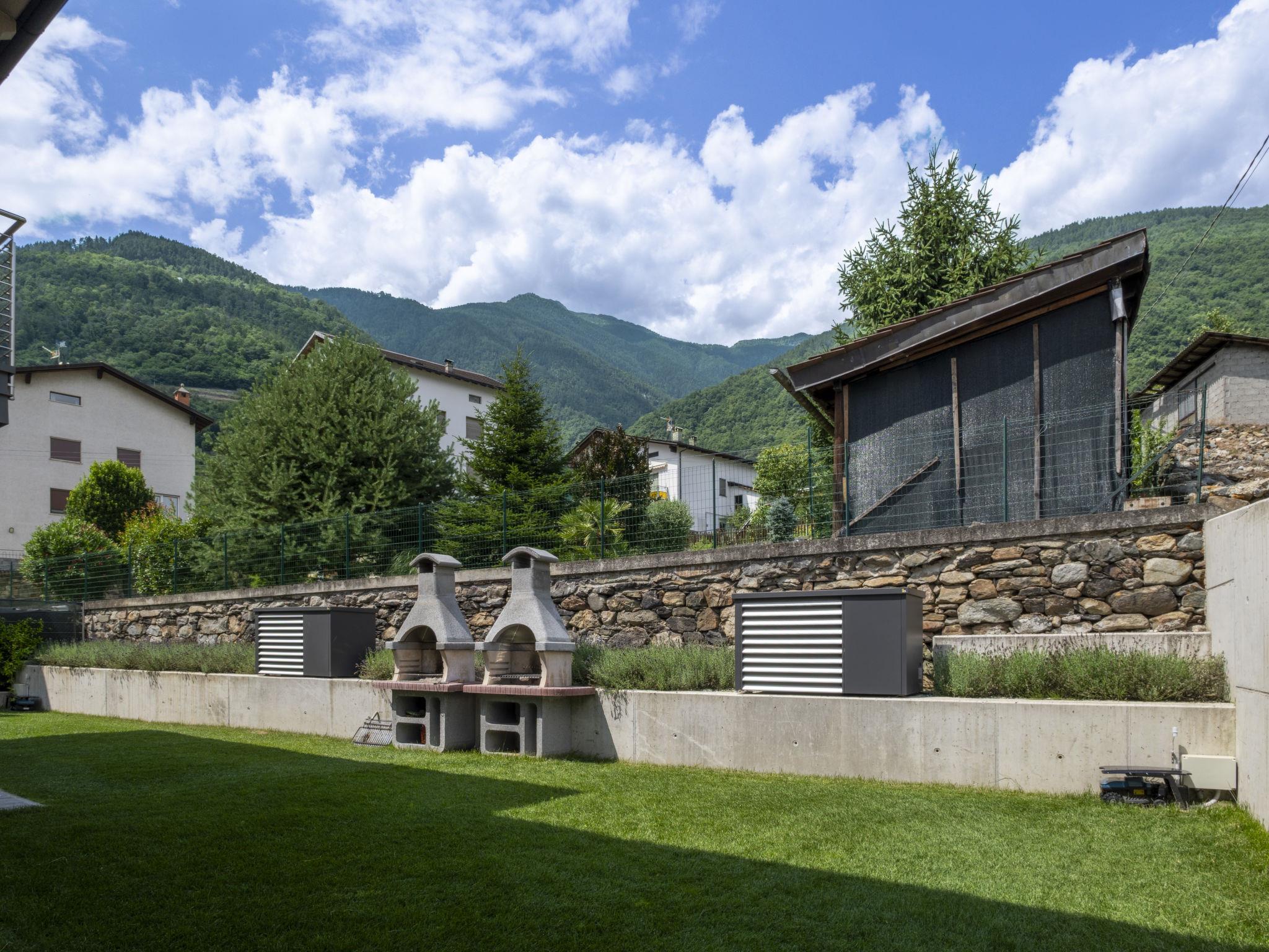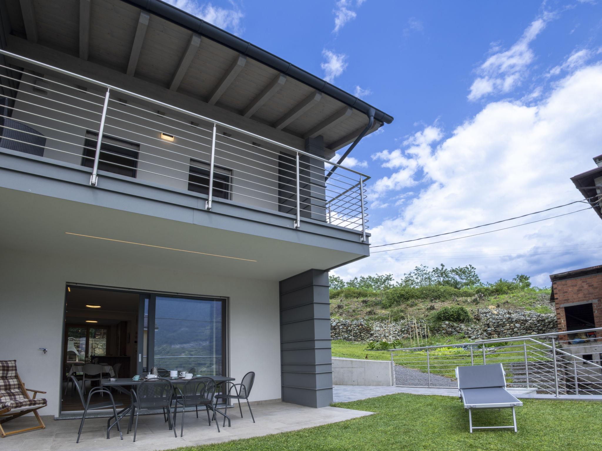 Modern, beautiful 2-family house 444 m a.s.l., 2 storeys, built in 2024, surrounded by meadows and vineyards. In the centre of Bianzone 6 km from the centre of Tirano, 14 km from the centre of Aprica, 44 km from the centre of Bormio, in a quiet position residential area (villas), 14 km from the skiing area, 2 km from the river, south-east facing position. Private: garden (fenced) with lawn. Garden furniture, barbecue house. In the house: storage room for bicycles, storage room for skis. Roofed, parking at the house. E-charging station. Supermarket 450 m, restaurant, bar, café 300 m, bus stop 100 m, railway station "Bianzone" 1.2 km, thermal baths "Terme di Bormio" 44 km. Nearby attractions: Train Bernina Express:Tirano-St Moritz 6 km, Lago di Poschiavo (CH) 14 km, Monte Combolo (mt. 2901), Monte Masuccio (mt. 2816). Well-known ski regions can easily be reached: Aprica 14 km, Bormio 44 km, Livigno 79 km. Well-known lakes can easily be reached: Lago di Como 60 km. Hiking paths: Sentiero dei Contrabbandieri, Monte Padrio, Alpe e Lago Schiazzera, Sentiero Valtellina, Sentiero del Sole. Please note: car recommended.