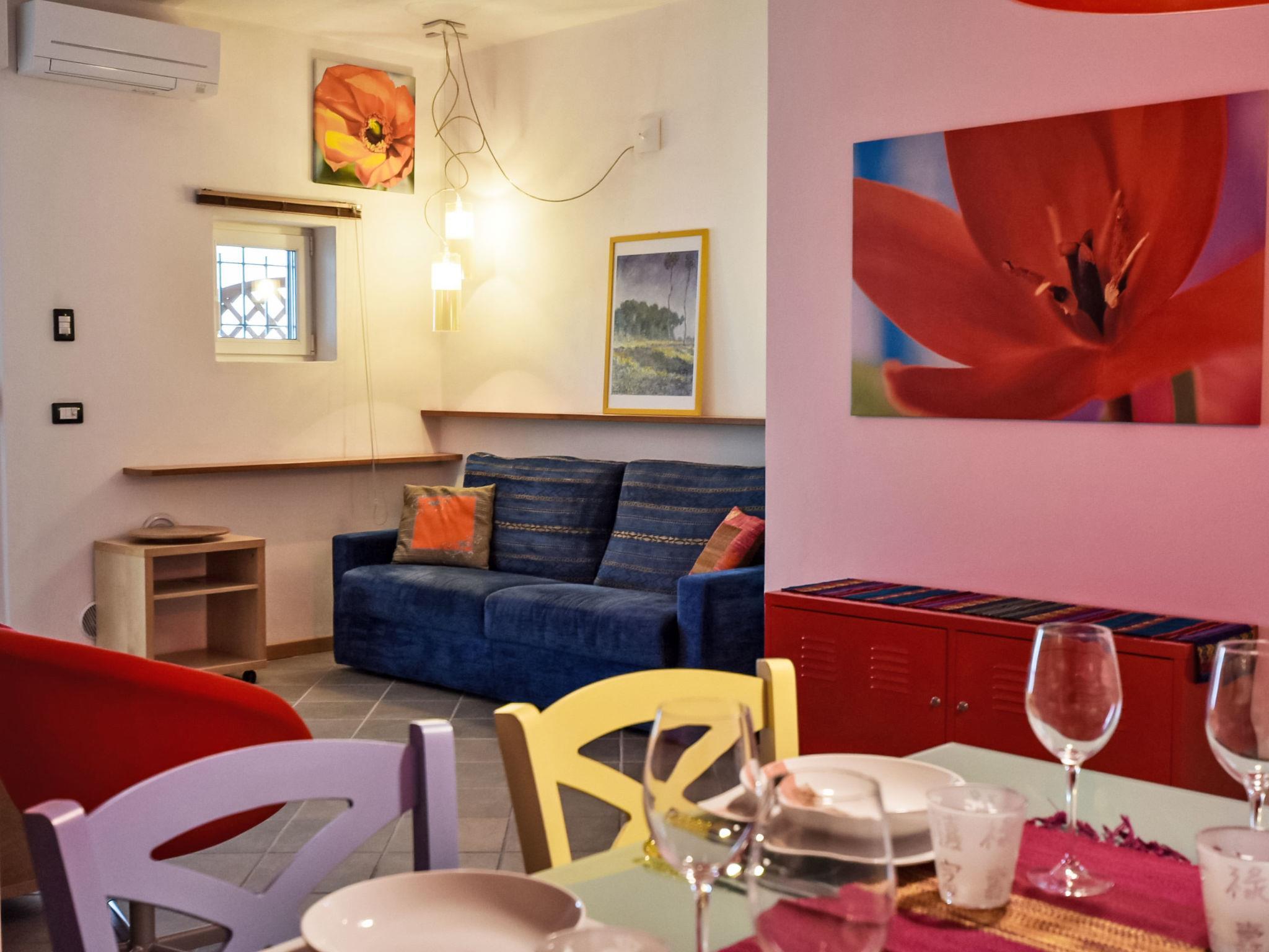 2-room apartment 45 m2, on the ground floor. Practical and comfortable furnishings: living/dining room with 1 double sofabed, TV and air conditioning. Exit to the terrace. 1 double bedroom. Exit to the terrace. Kitchenette (oven, dishwasher, 4 gas rings, toaster, kettle, electric coffee machine, Capsules for coffee machine (Nespresso) free) with dining table. Bath/bidet/WC. Heating. Terrace 10 m2, roofed. Terrace furniture. Facilities: washing machine, children's high chair, baby cot, hair dryer. Internet (WiFi, free). Please note: suitable for families. Non-smoking house. Private entrance. IT014045C22O66SSKL