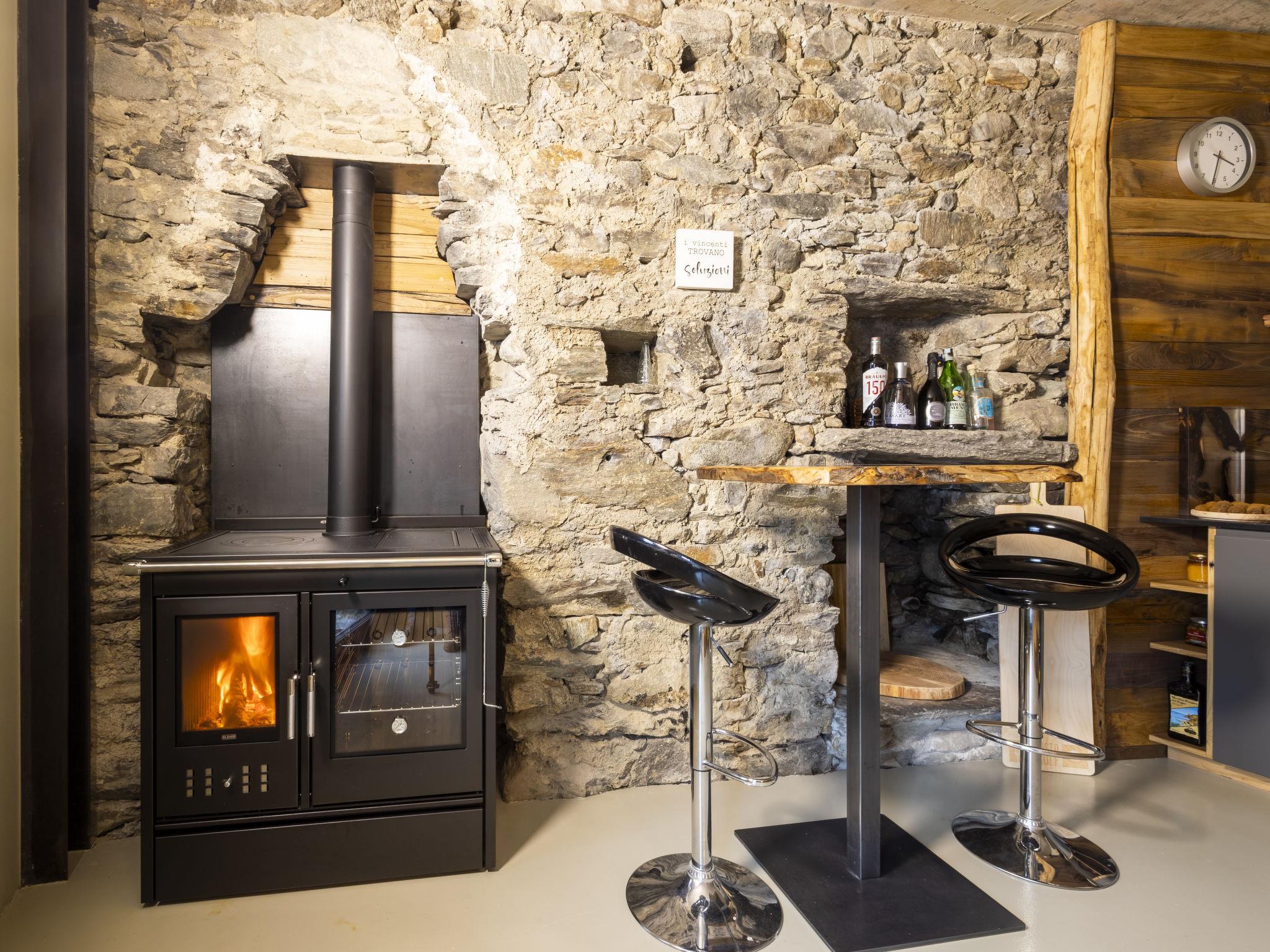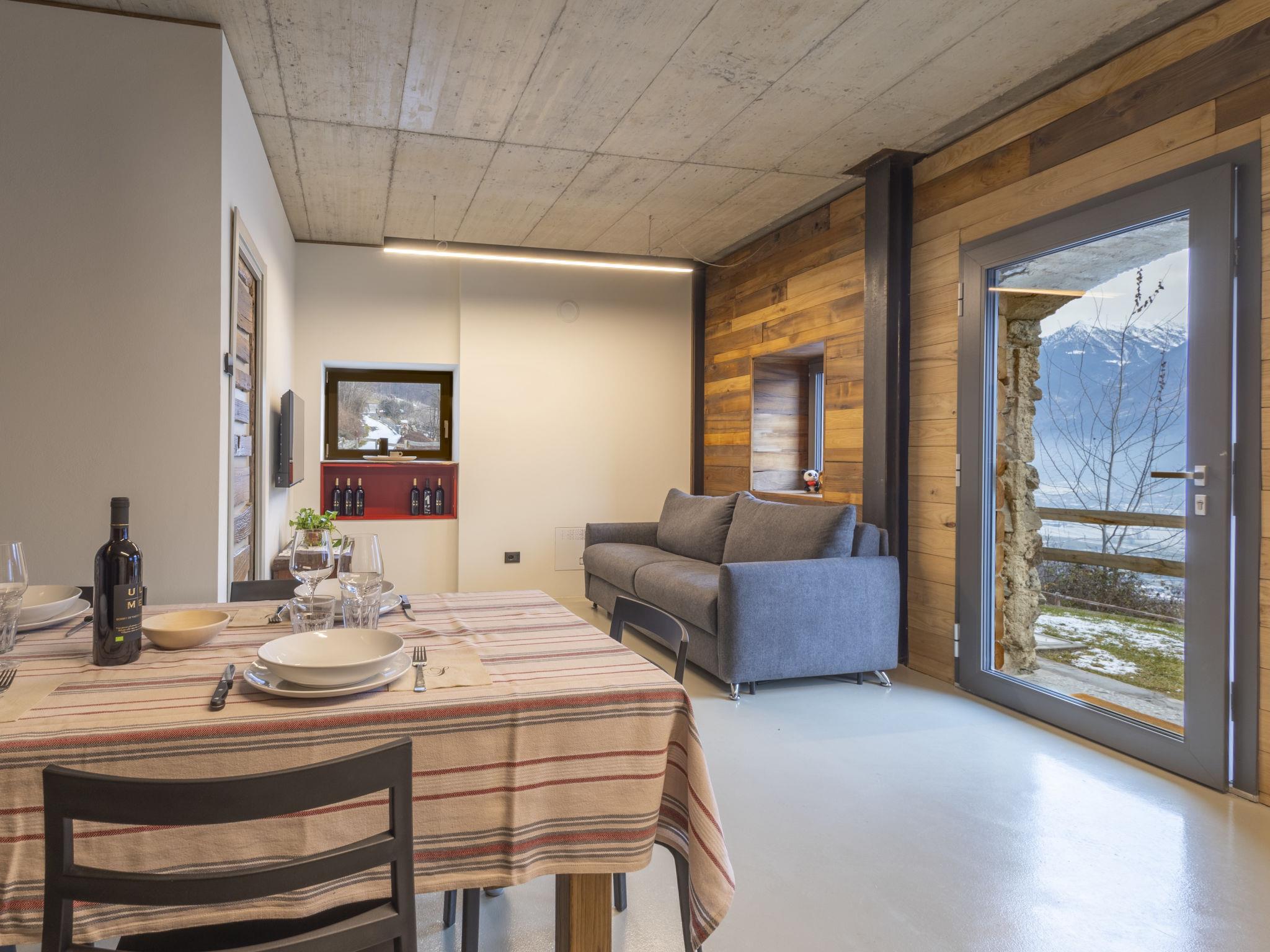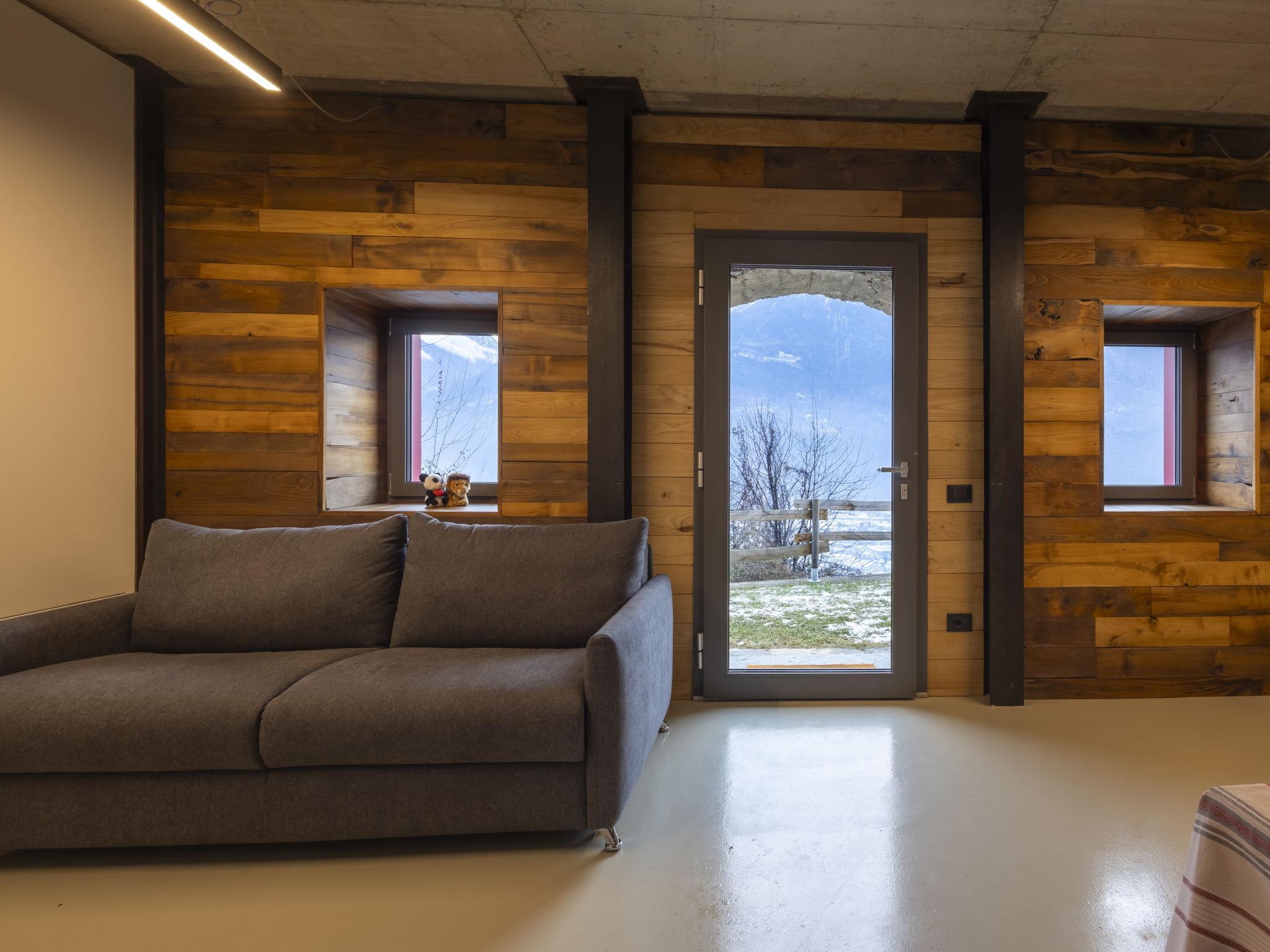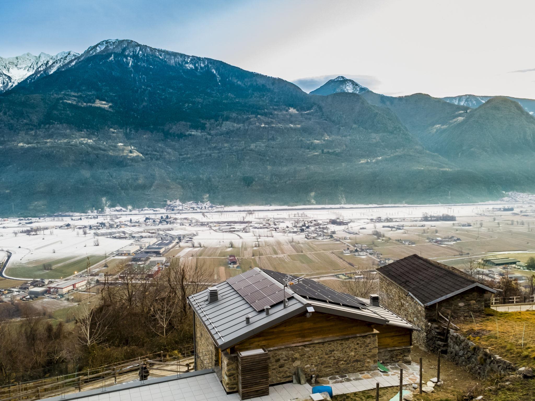 3-room chalet 80 m2 on 2 levels, south facing position. Spacious, partly with sloping ceilings, fully renovated in 2025, modern and rustic furnishings: open large living/dining room with dining table and TV. Exit to the garden. Open kitchen (4 induction hot plates, toaster, kettle, electric coffee machine, Capsules for coffee machine (Nespresso) free) with small dining table, Scandinavian wood stove. Exit to the garden. Shower/bidet/WC. Upper floor: 1 open large room with 1 double bed. 1 open small room with sloping ceilings with 1 bed. Shower/bidet/WC. Forced-air heating. Solar power. Large terrace 60 m2, garden 50 m2. Terrace furniture, barbecue, deck chairs (3). Very beautiful panoramic view of the mountains and the valley. Facilities: washing machine, children's high chair, baby cot, hair dryer, logs (free). Internet (WiFi, free). Please note: suitable for families. Fridge without freezer, non-smoking house. Maximum 1 pet/ dog allowed. Private entrance, smoke alarm, fire extinguisher. IT014010C2YELWX7QG